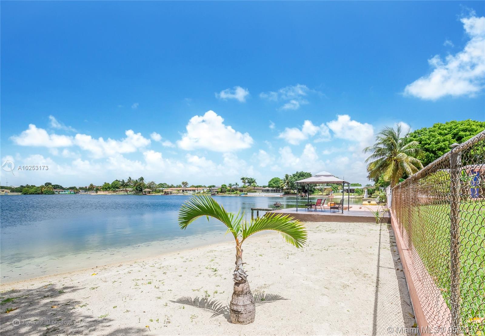 Single Family 4/2 - 2,965 SF Lake Front Home. Private Beach. Concrete Dock. Gazebo. Den / Library / Office. Bar. Large Family overlooking beach/lake. French Doors. Remodeled Kitchen & Bath. Stainless Steel Appl. Covered Terrace. Jacuzzi. Covered Car Port. Circular Drive Way. Spanish Tile Roof. Accordion Shutters. Over sized lot 10,800 SF. Close to Palmetto Expy, Hospitals, Mall, Schools. Special Features; Spacious Interior, Large Yard, Private Beach with Dock = Entertainment / Water Sports.