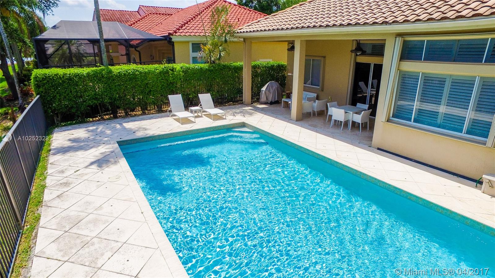GORGEOUS HOME IN THE HIGHLY DESIRED WESTON HILLS COUNTRY CLUB, THIS IS A ONE STORY 3 BEDROOMS 2.5 BATHROOMS WITH A LOT OF UPGRADES, PLANTATION SHUTTERS, OPEN KITCHEN WITH WOOD CABINETS, SS APPLIANCES, GRANITE COUNTER TOPS, 24 x 24 MARBLE FLOORING, LARGE & SPECTACULAR POOL WITH RELAXING WATER VIEW, ACCORDION HURRICANE SHUTTERS, TUMBLED MARBLE PAVER WALKWAYS, SECURITY CAMERA MONITORING SYSTEM, YOU WILL LOVE IT!!