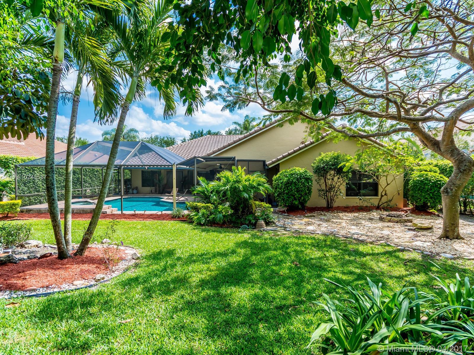 Beautifully maintained, completely renovated 5/3/2CG situated in charming boutique Weston comm! Large granite/wood kitchen, stainless appli, long snack bar, stone tile in living areas. 3-split floor plan, newer roof, LED lights, no popcorn/flat walls, freshly painted inside & out, newer air conditioner, custom closets, stunning updated bathrooms, w/heated pool, raised spa,lush landscaping in a totally private setting! Magnificent Peace Mound Park close by, 24HR guard gate, A+ Schools. WELCOME HOME!