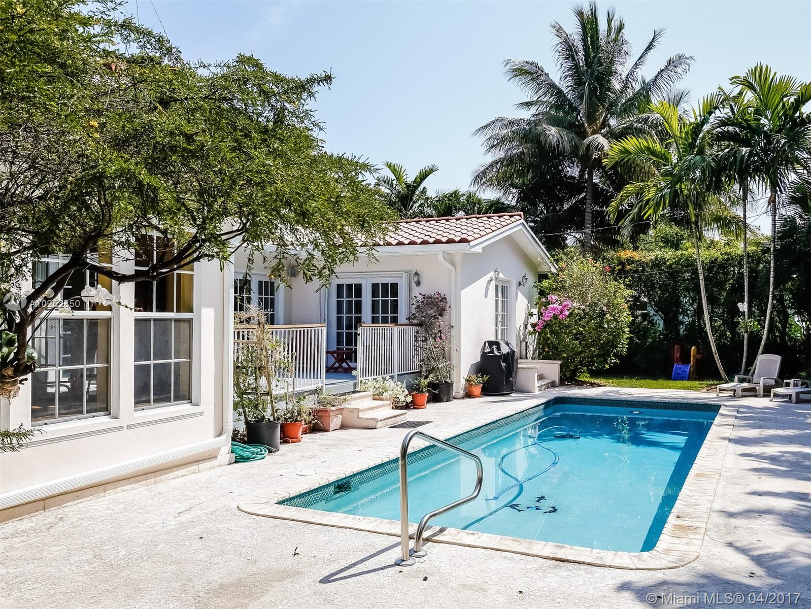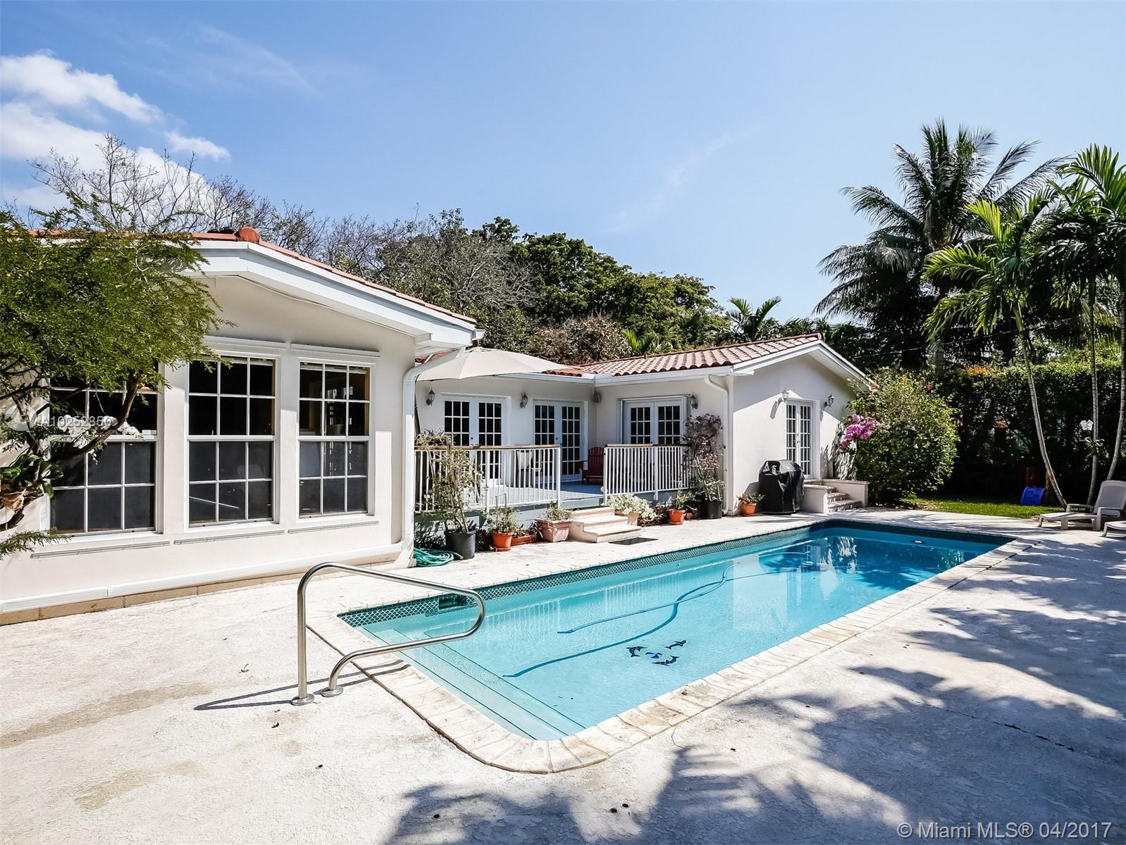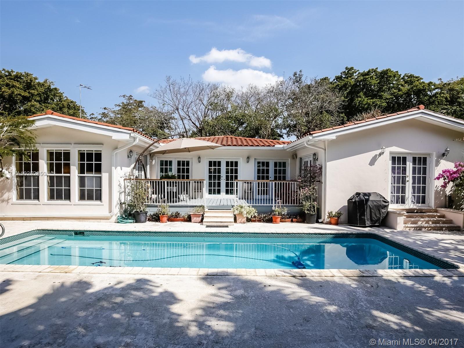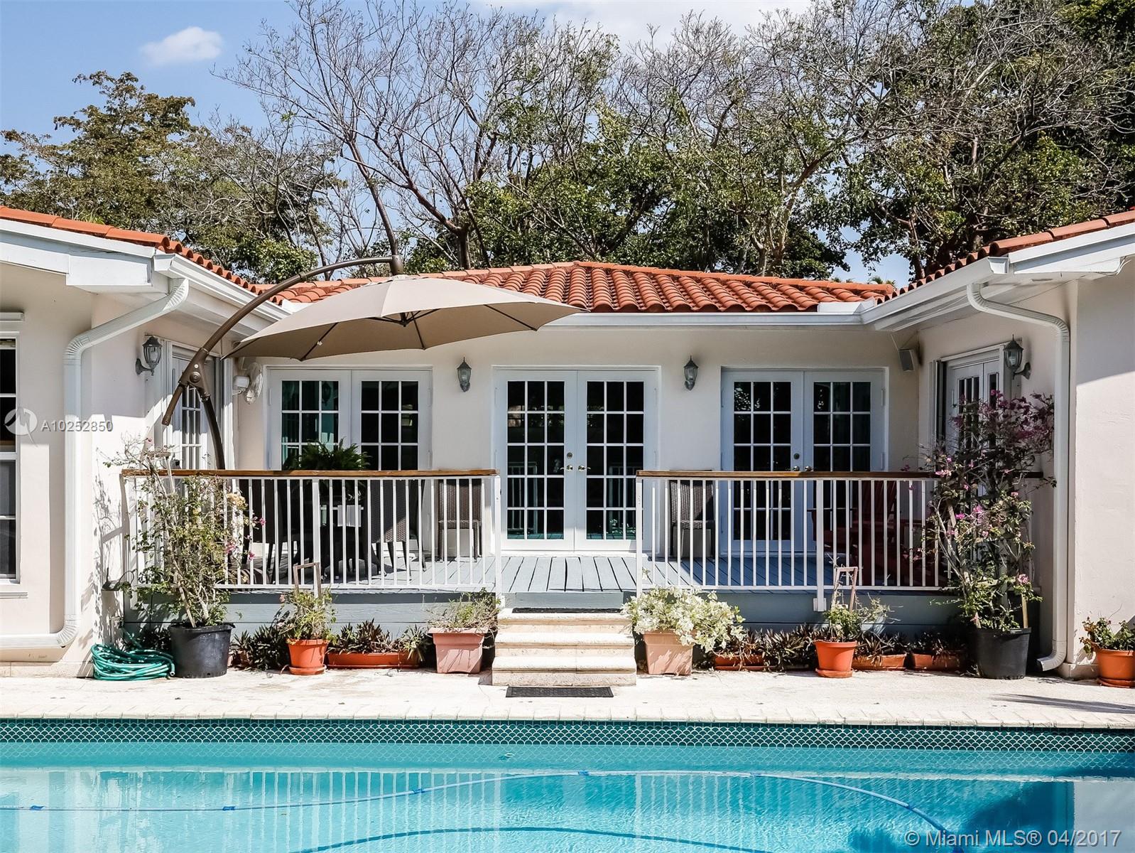 Beautifully open, light and bright renovated 1-story 3/3 pool home on an enchanting tree-lined street in the South Gables. Open floor plan, hardwood flooring throughout, vaulted wood beam ceilings in master and family rooms, kitchen with stainless steel appliances, granite countertops, en-suite bath in second bedroom, impact French doors, wood deck, private, lushly landscaped back yard, oversized lot and an attached 1-car garage... all the features you were looking for!