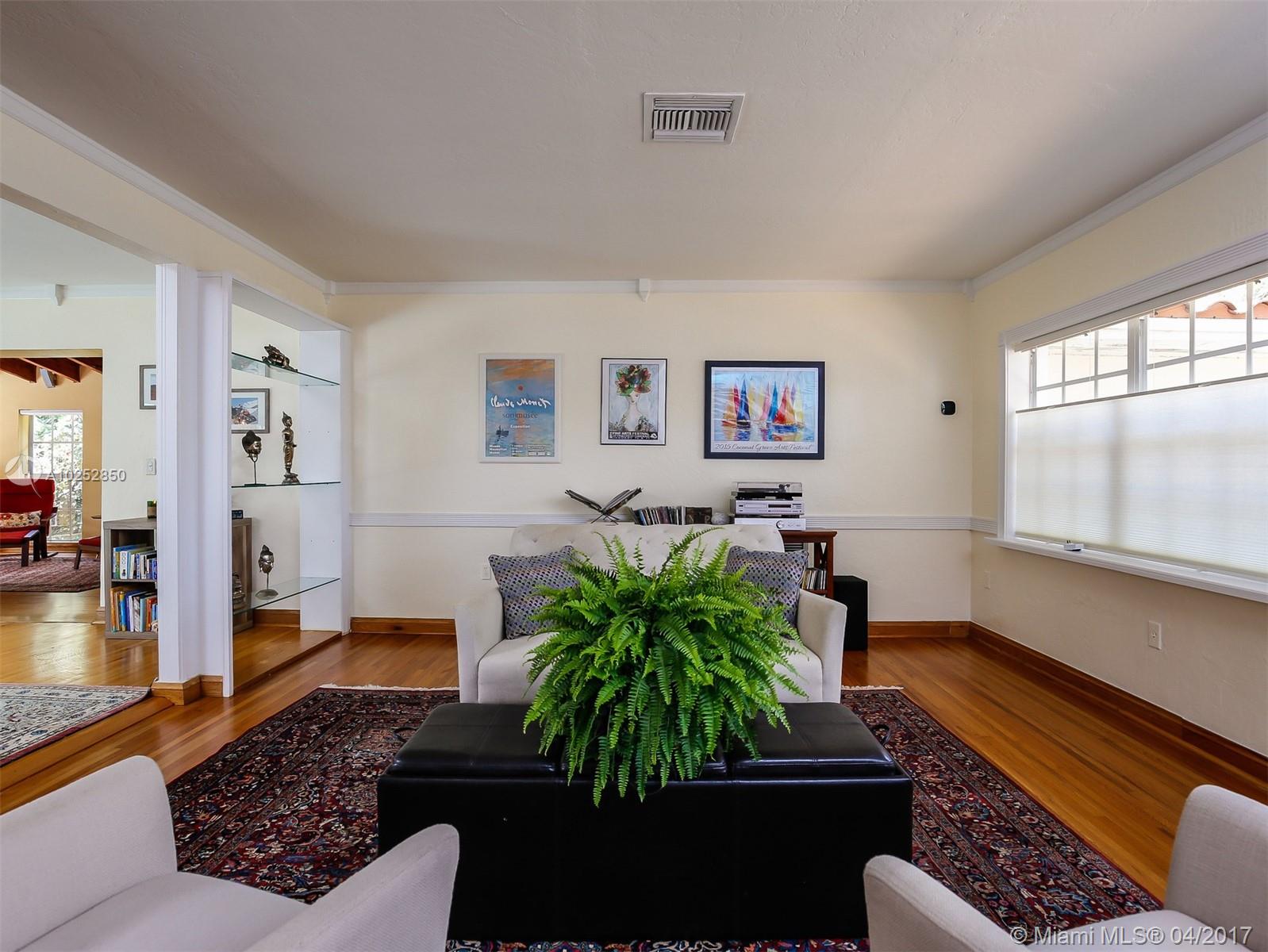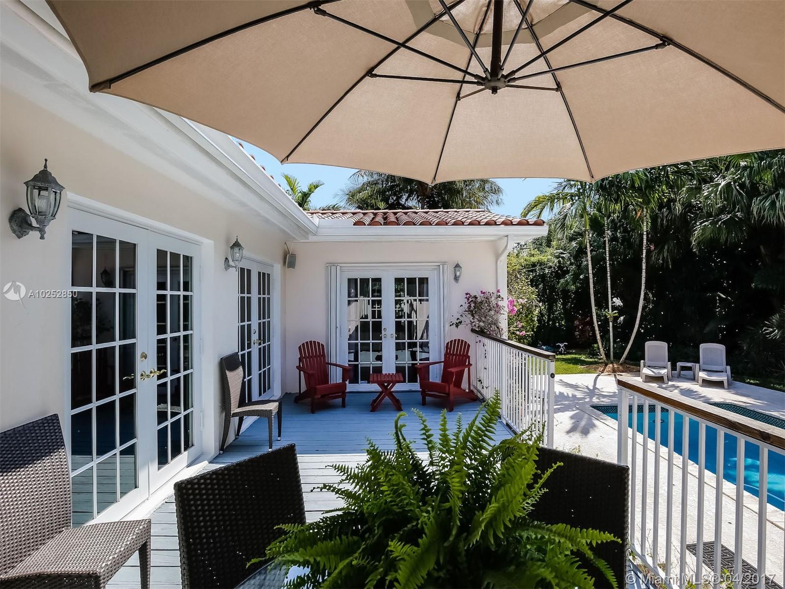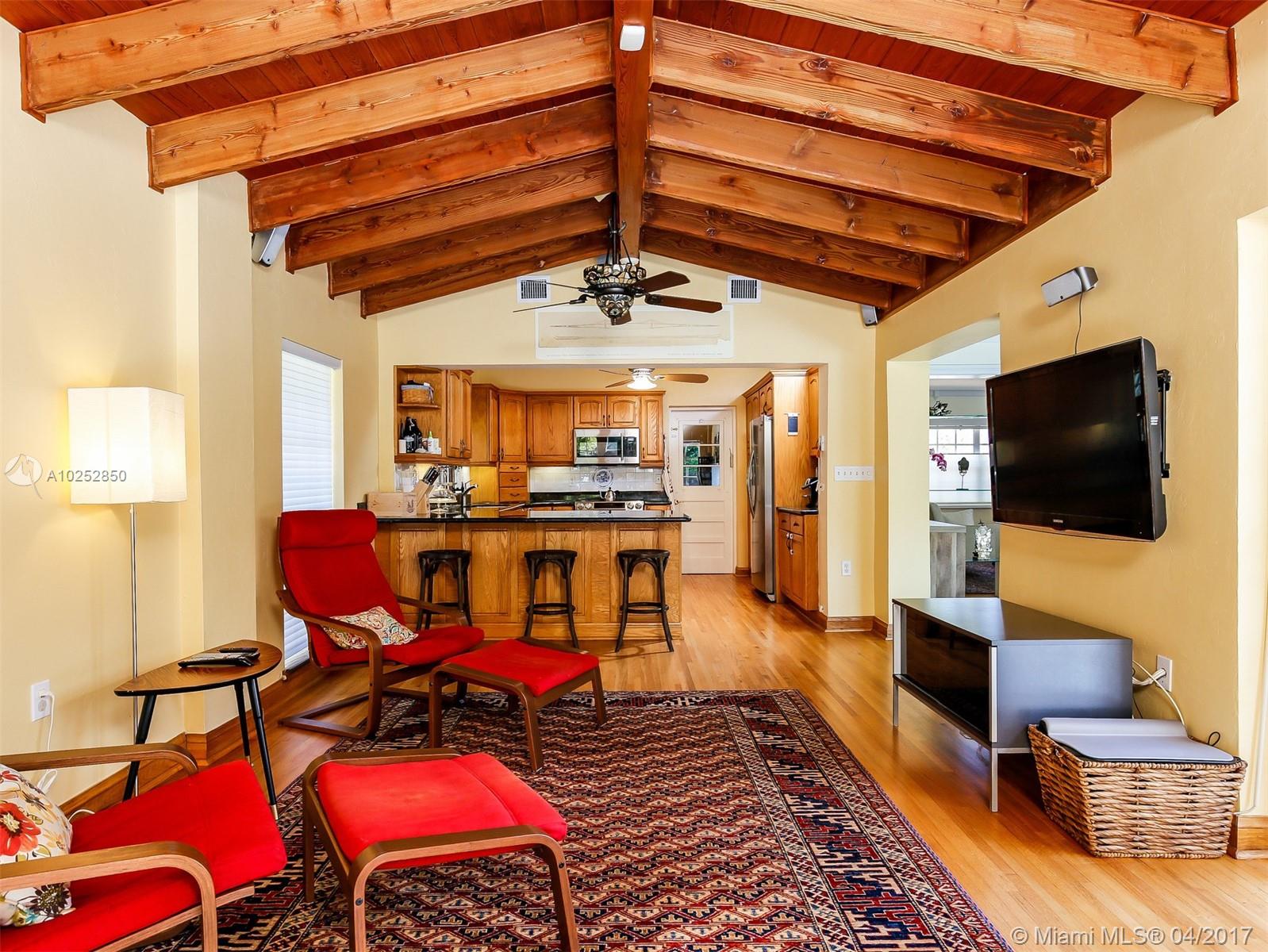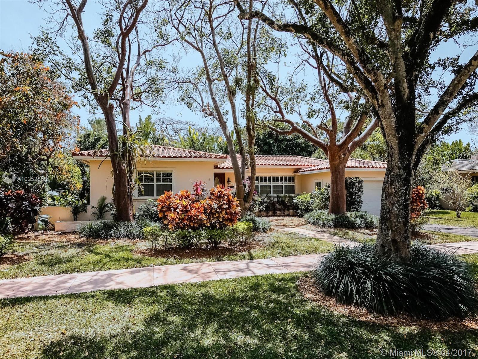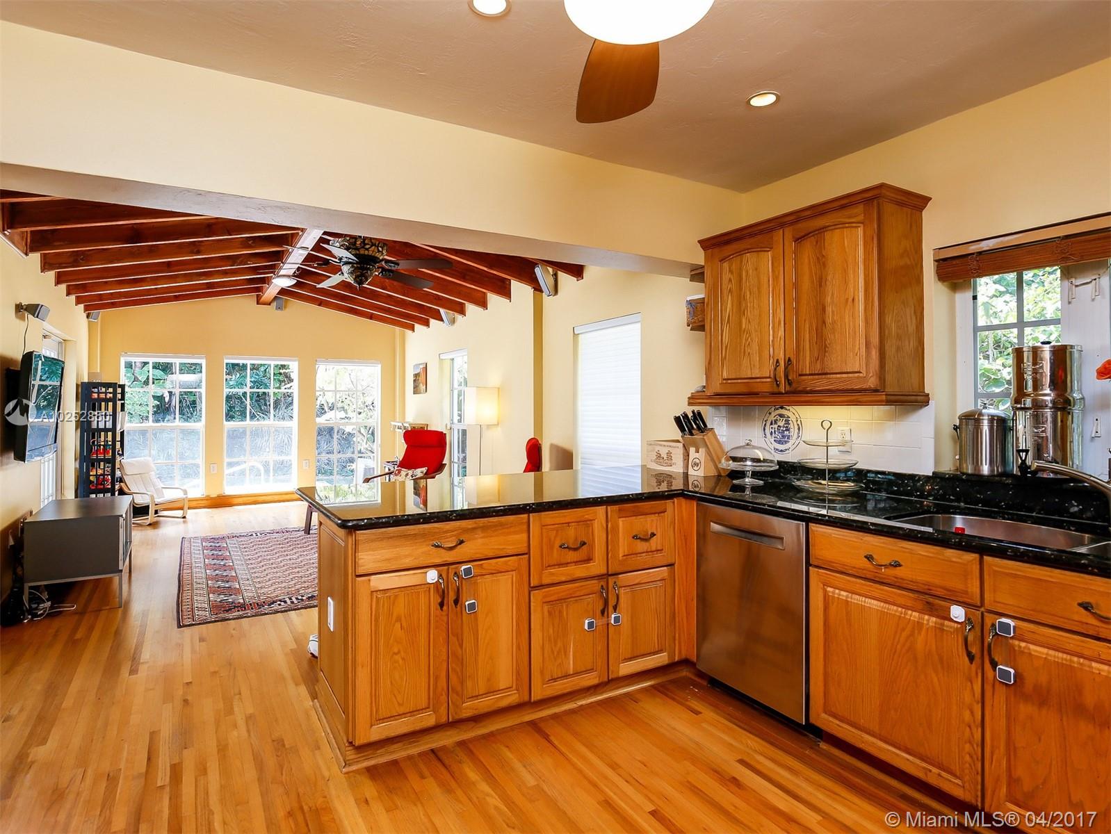 Beautifully open, light and bright renovated 1-story 3/3 pool home on an enchanting tree-lined street in the South Gables. Open floor plan, hardwood flooring throughout, vaulted wood beam ceilings in master and family rooms, kitchen with stainless steel appliances, granite countertops, en-suite bath in second bedroom, impact French doors, wood deck, private, lushly landscaped back yard, oversized lot and an attached 1-car garage... all the features you were looking for!