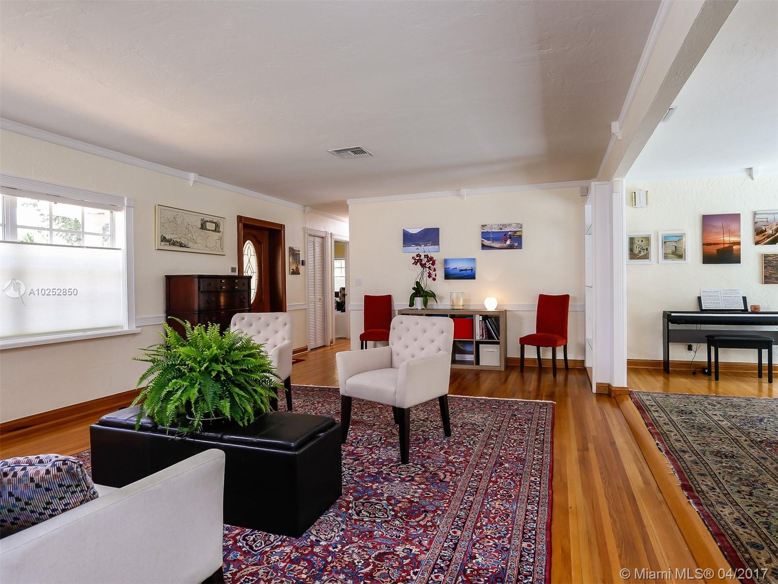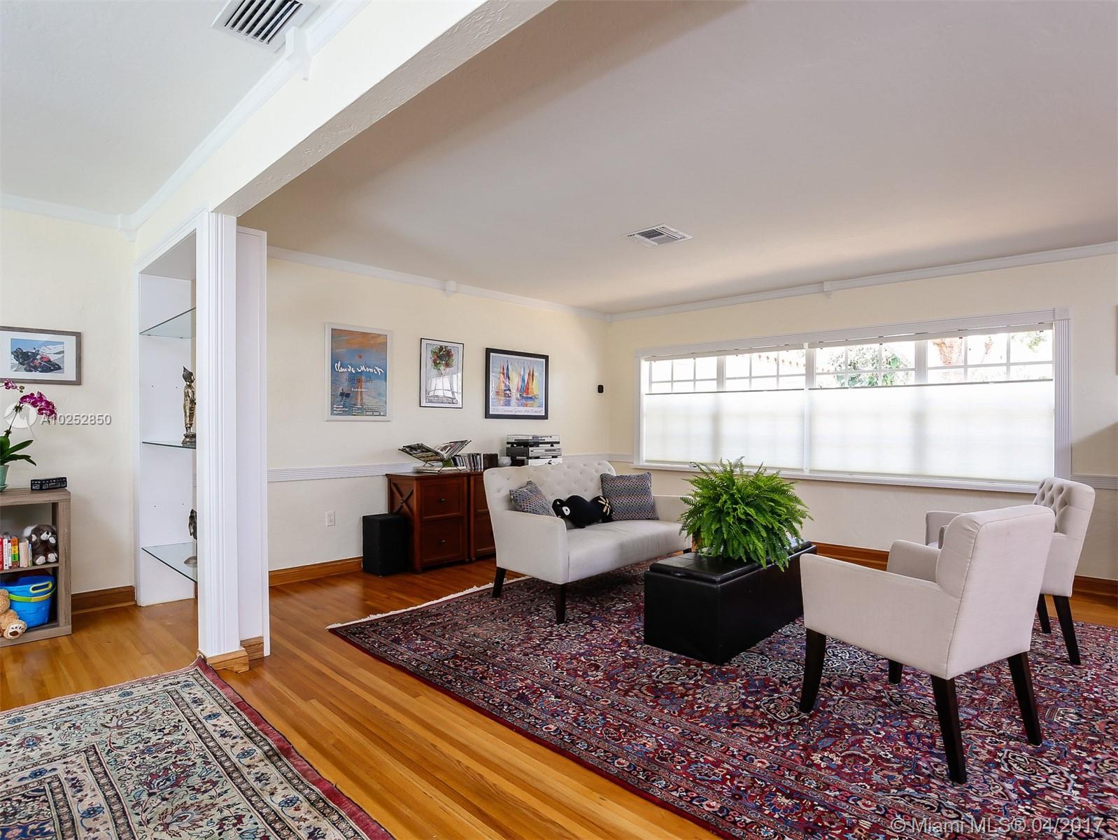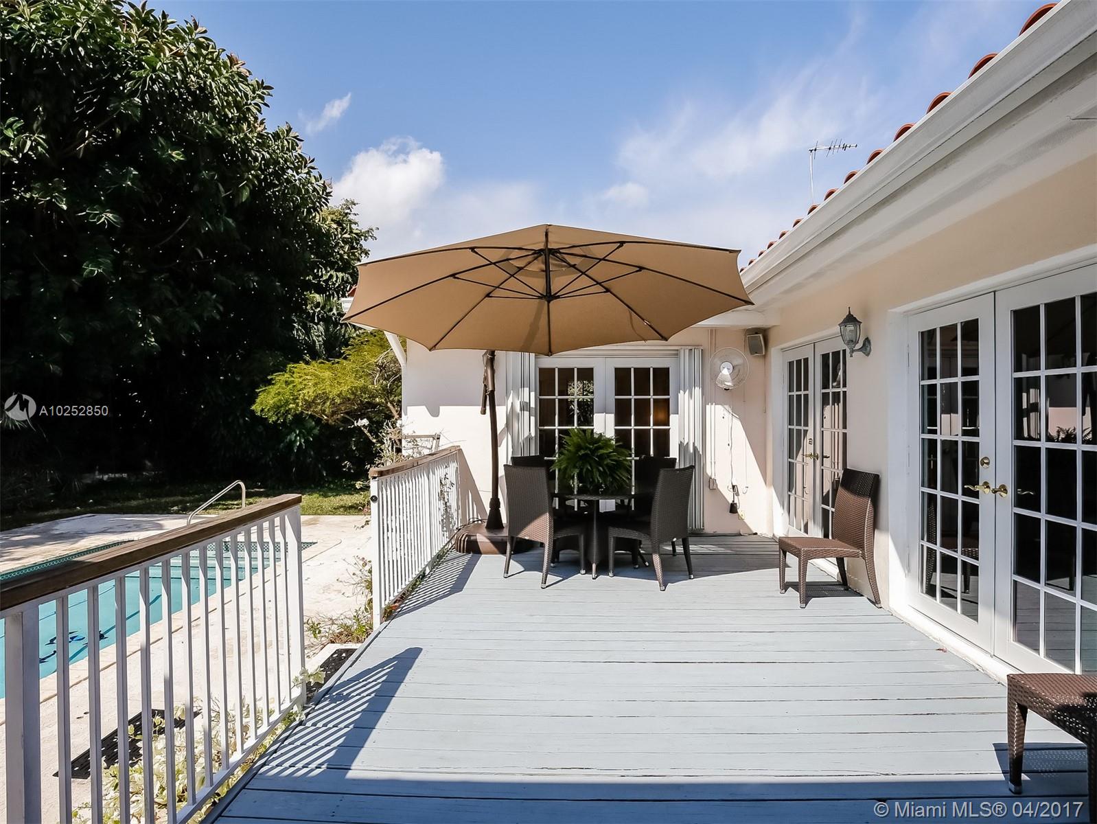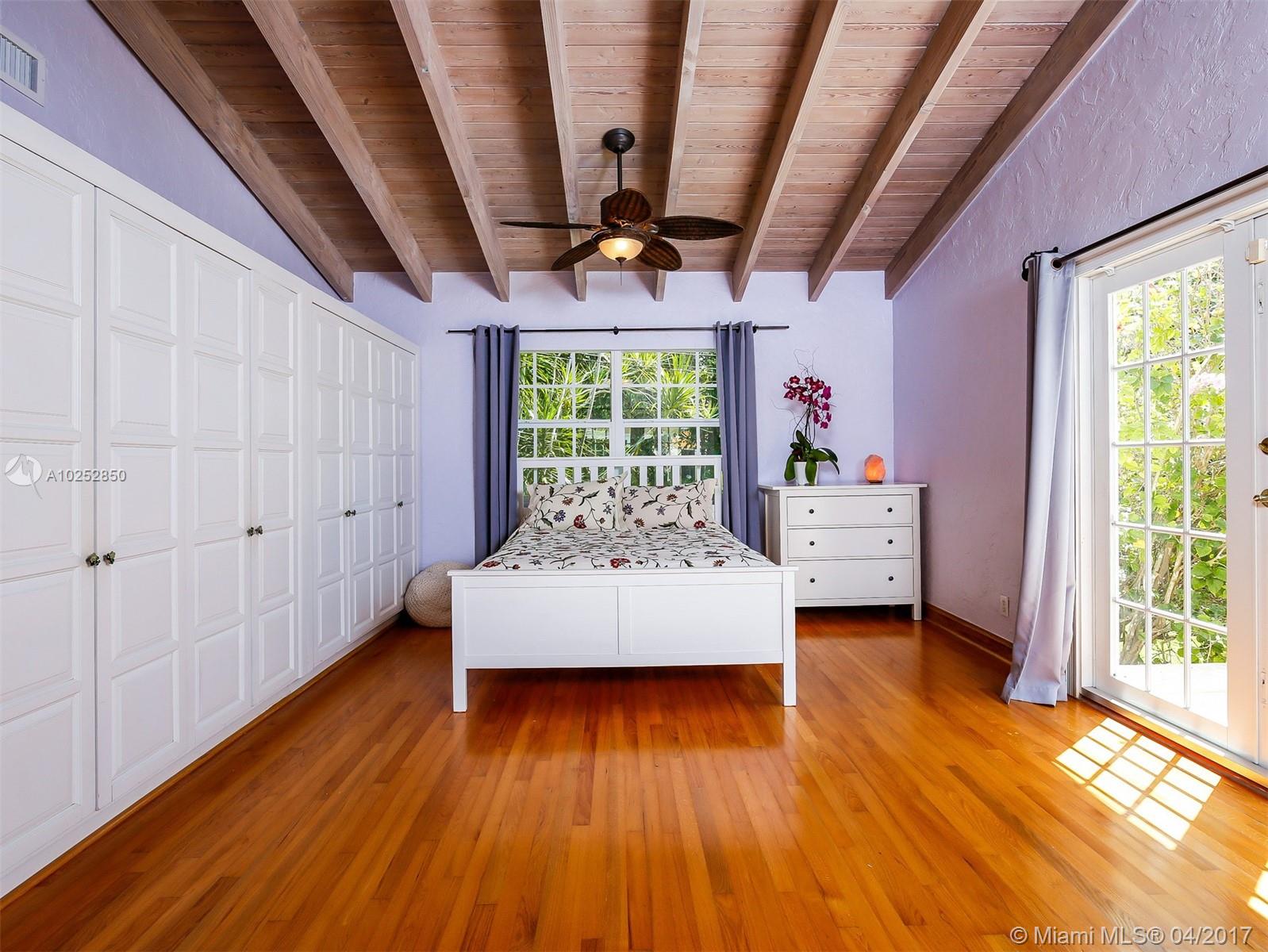 Beautifully open, light and bright renovated 1-story 3/3 pool home on an enchanting tree-lined street in the South Gables. Open floor plan, hardwood flooring throughout, vaulted wood beam ceilings in master and family rooms, kitchen with stainless steel appliances, granite countertops, en-suite bath in second bedroom, impact French doors, wood deck, private, lushly landscaped back yard, oversized lot and an attached 1-car garage... all the features you were looking for!