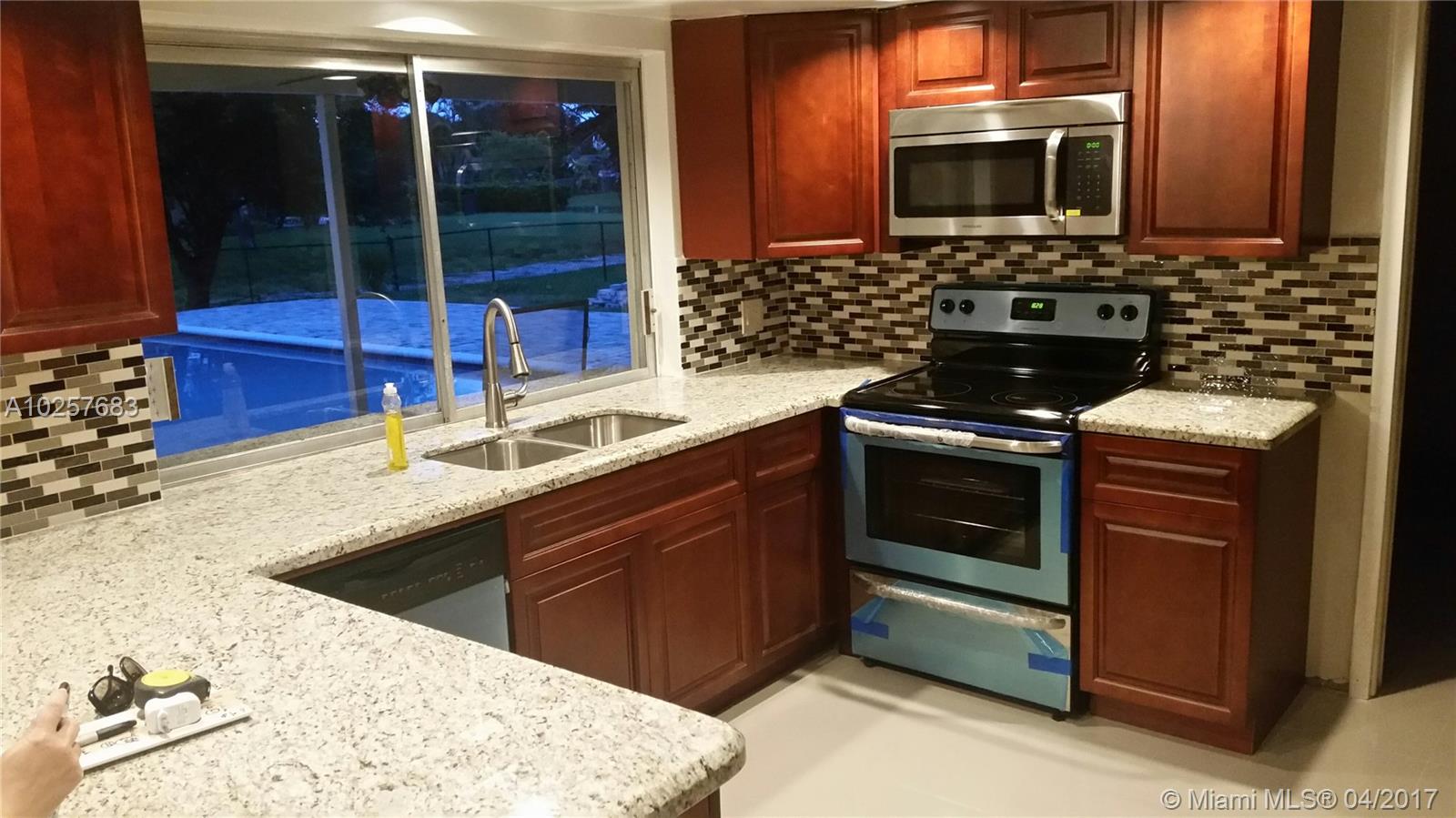 Gorgeous renovated 4 bedroom 2 baths home with title floors. Stunning pool area, remodeled kitchen, new range, granite countertops, beautiful gardens.