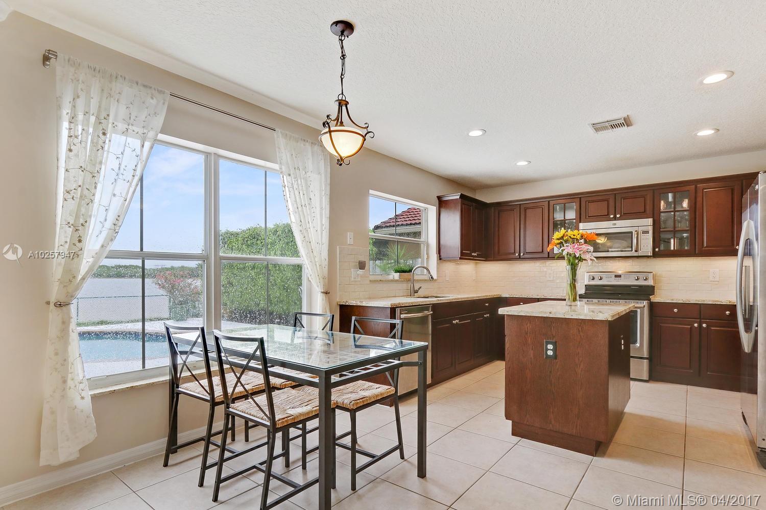Superb tropical paradise: remodeled 4 Bedroom, 2.5 bath waterfront, pool home in gated Hidden Lake community. Beautiful free form pool w/waterfall feature, fenced yard overlooking big lake, beautiful sunsets. New bathrooms and gourmet kitchen w/ wood cabinetry, granite counters,stainless steel appliances, kitchen island. Upgrades throughout, newer A/C. Top schools: West Broward HS, Silver Trails Middle, Chapel Trail Elementary plus Somerset Academy right outside community gate. Close to Highway 27 for easy commutes in every direction.