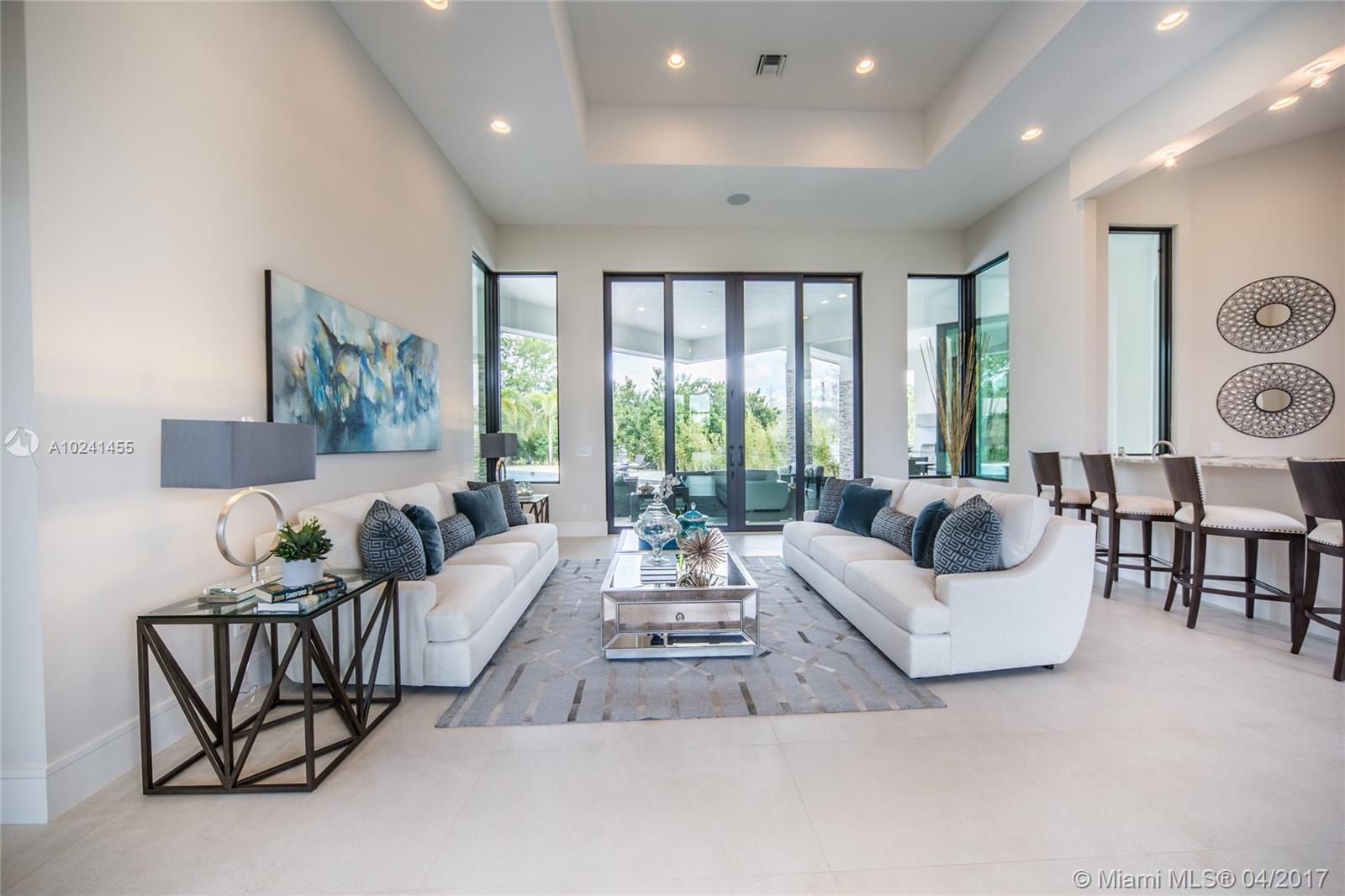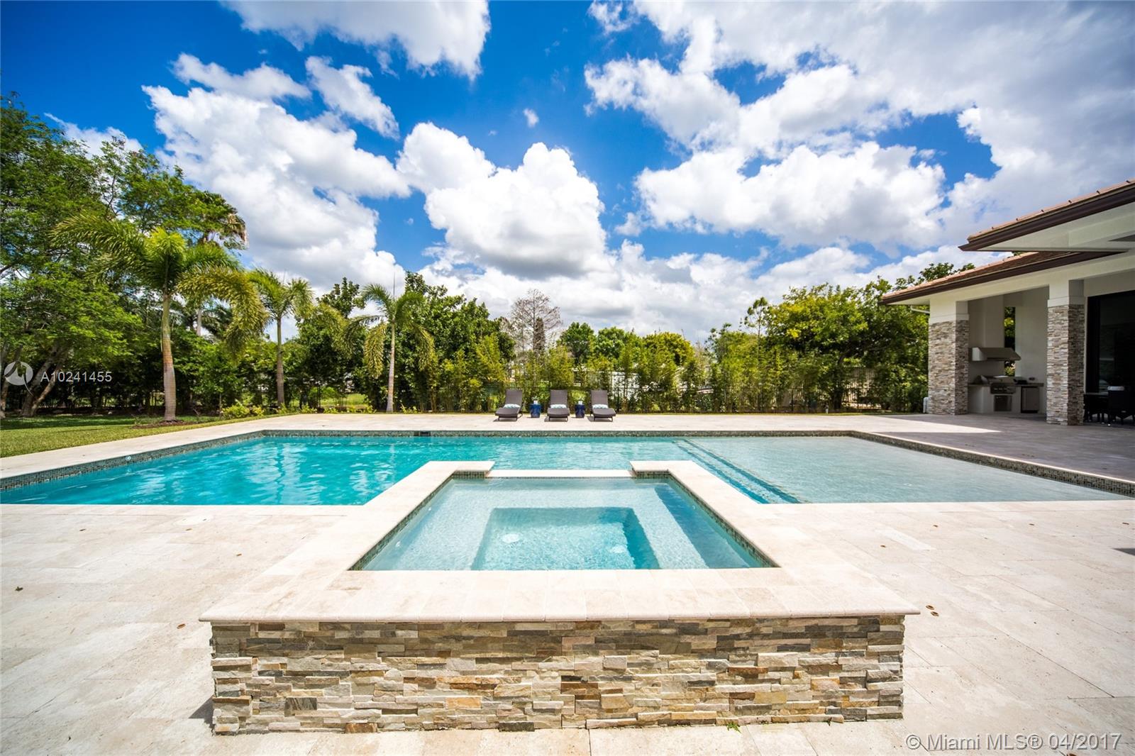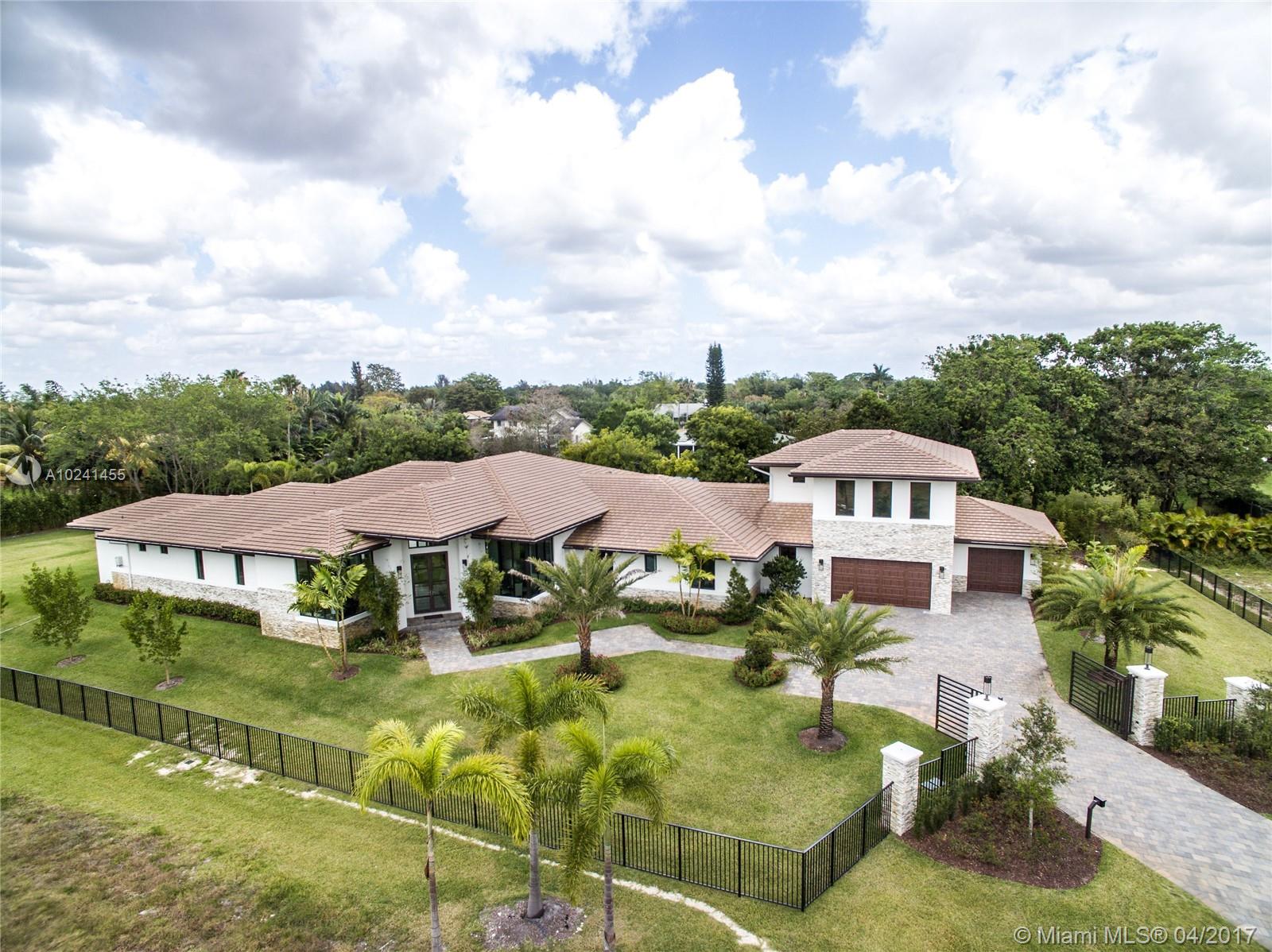 This brand new construction, contemporary ranch design (by architect Maurice Menasche) offers a very distinguished style with sweeping 14ft ceilings, 5 bedrooms (5 suites) 6 baths, 2 half baths, large office, plus separate entertainment area upstairs which can be converted to media room, guest suite or 6th and 7th bedrooms. This majestic home boasts highly desirable designs and finishes with Sub-Zero & Wolf appliances chef's kitchen, uniquely designed baths, full bar, wine room, tankless gas water heaters, impact glass, structured wiring, central vacuum & an elegant outdoor pool area w spa and summer kitchen. Welcome to a peaceful and private enclave of 8 individually gated & custom designed estates. Come live in a country setting in the picturesque equestrian area of Southwest Ranches.