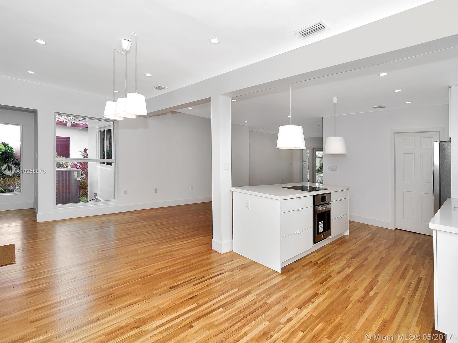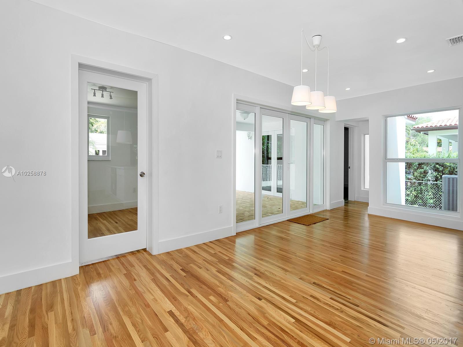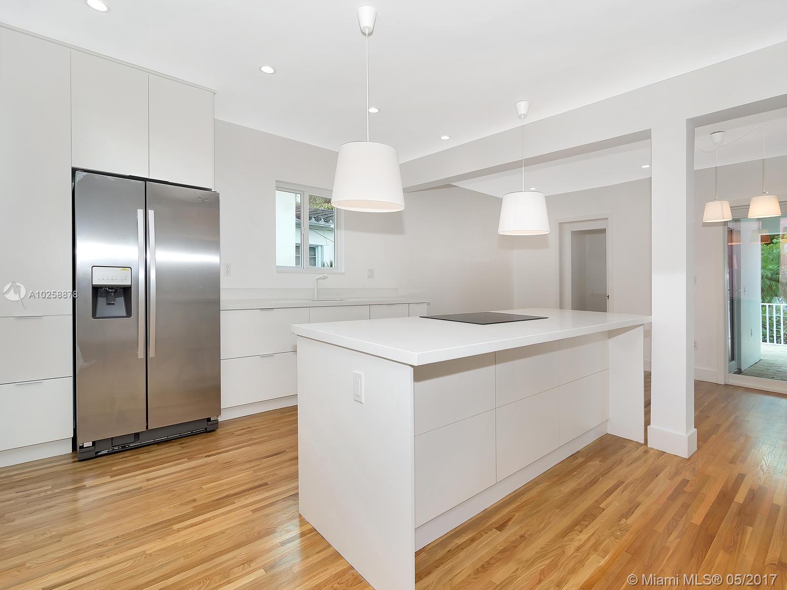 Priced for Immediate Sale! Clean Modern Lines Define this well located Tastefully Updated, North Gables Home. A Wide Covered Porch leads to a Double Door Entry and the warm Light Filled Open Spacious Floor Plan. The Master Suite is split and positioned at the rear to provide the utmost in privacy. An Air Conditioned Laundry Room w/ Storage or Pantry is adjacent to the Kt. The bonus Rm has access to the rear covered patio and is ideal for an office/den or playroom. This home provides New Impact Windows and Doors, New Modern Kitchen, New High Efficiency Central A/C. New Impact Garage Door. Easy to show, please see Broker Remarks.