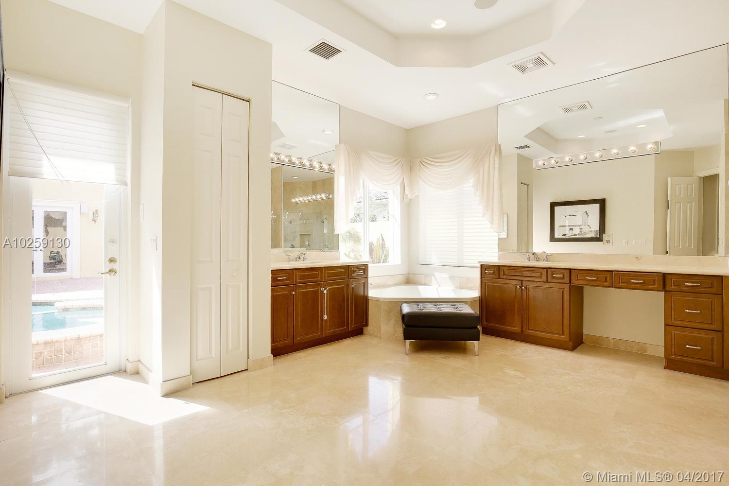 Superb 6 Bedroom, 5.5 Bath, courtyard pool home in the exclusive double-gated Enclave of Grand Palms, Pembroke Pines' premier golf resort community. Upgraded luxury touches throughout. Gourmet eat-in kitchen, wood cabinetry, granite counter tops, and stainless steel appliances including double wall oven. Impact windows, cathedral ceilings, marble floors, summer kitchen, pool safety fence, gorgeous custom iron staircase. Spacious loft with built-ins/office. Private guest quarters with full bath overlooking the pool. On the Grand Palms Golf Course, walk to clubhouse w/restaurant, bar, hotel, fitness, tennis. Grade A Pembroke Pines schools. Close to I-75 for easy commute in every direction, extensive shopping, dinning, and entertainment options nearby.