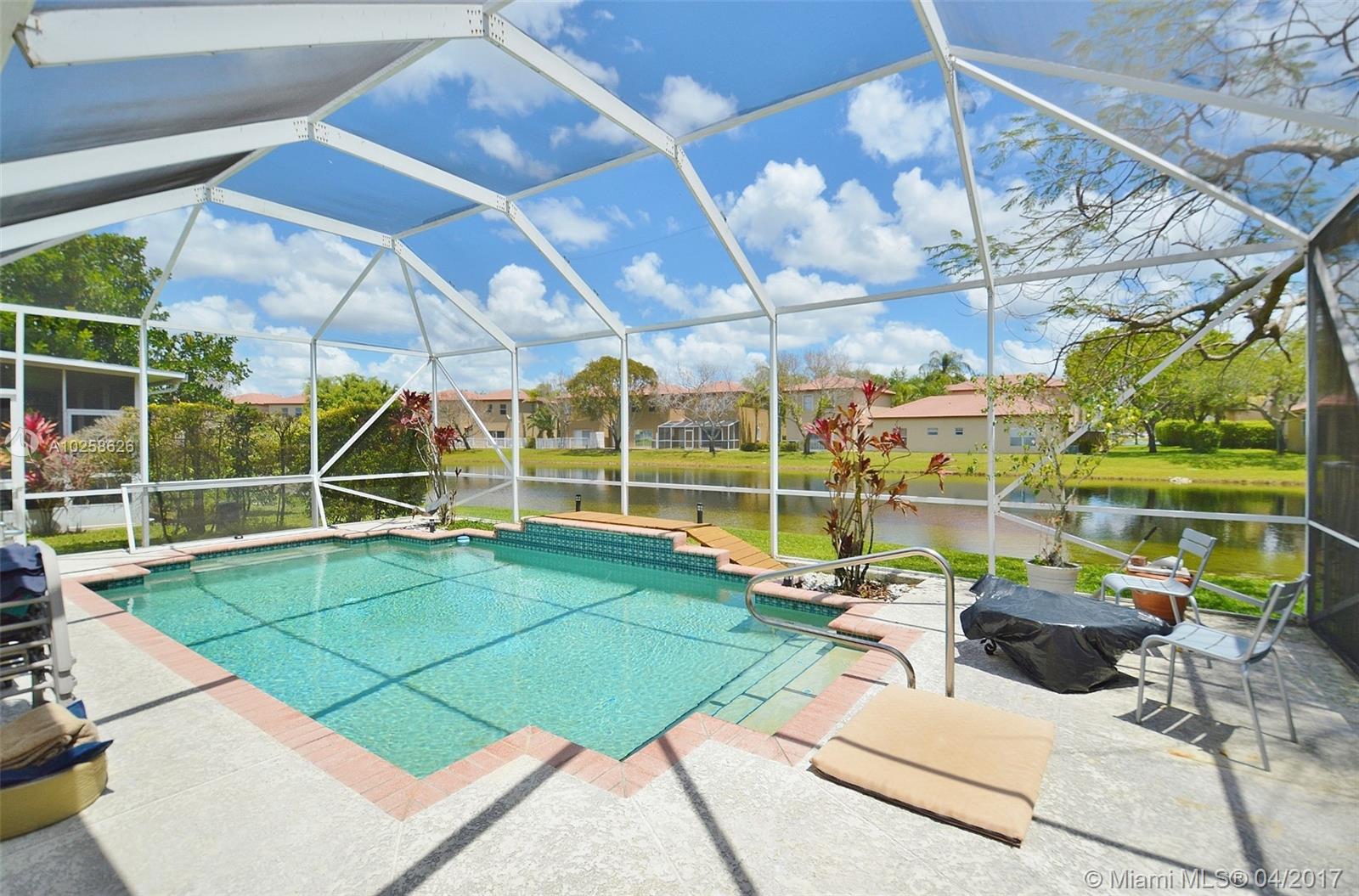 Beautiful 3 bedroom, 2 bathroom home in the sought after gated community of Emerald Estates! Enjoy pool parties in your backyard or relax on the screened in patio with gorgeous views of the lake. Master Suite includes walk-in closet and a separate sitting room/office which can be a 4th bedroom. Accordion shutters on all windows and doors. Emerald Estates offers tons of amenities including yard maintenance, alarm monitoring, basic cable, sprinkler maintenance, guard gate, exercise room, community pool, tot lot, etc! Close to excellent schools and shopping!