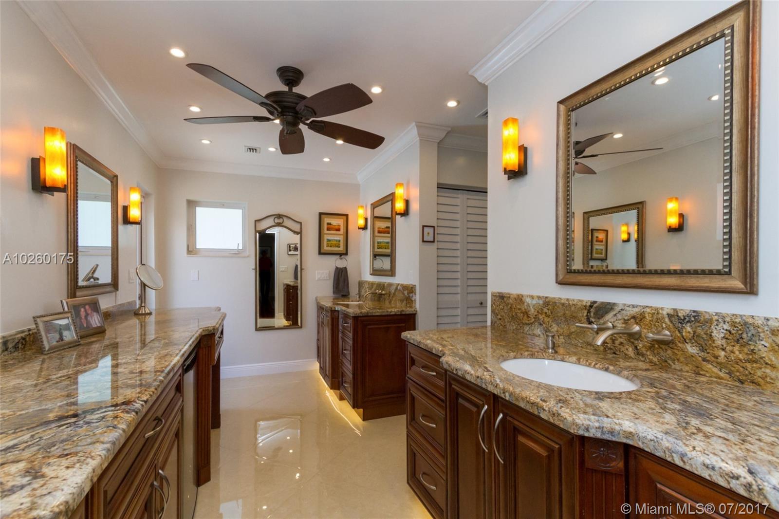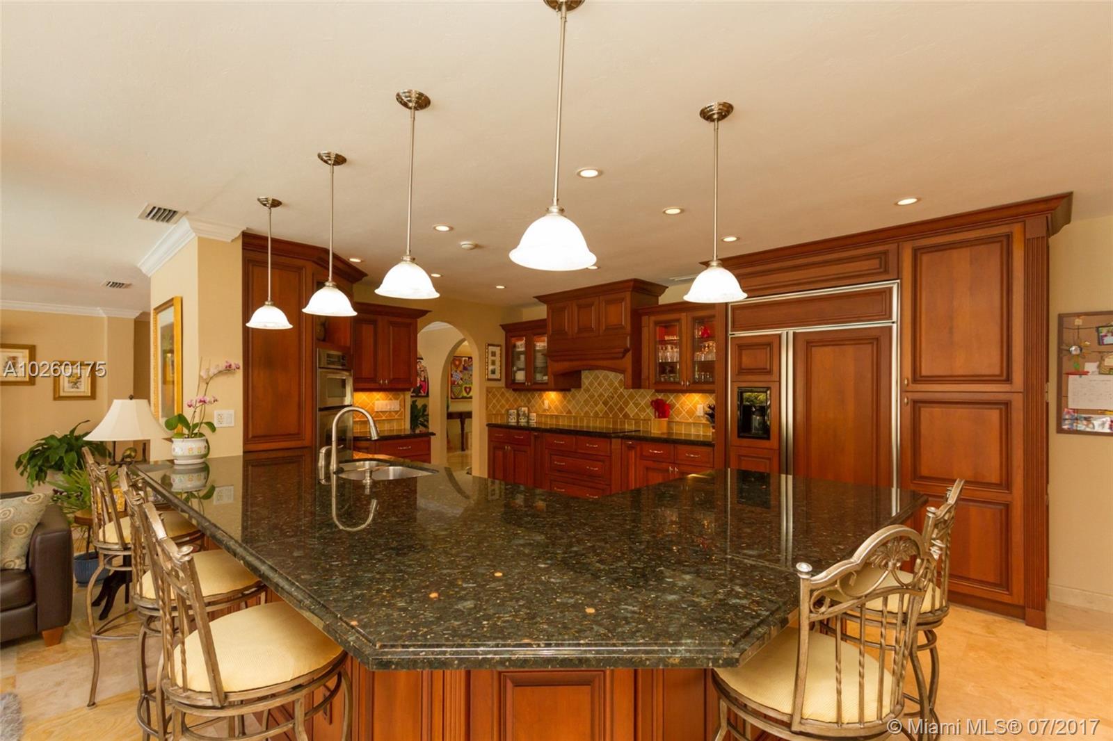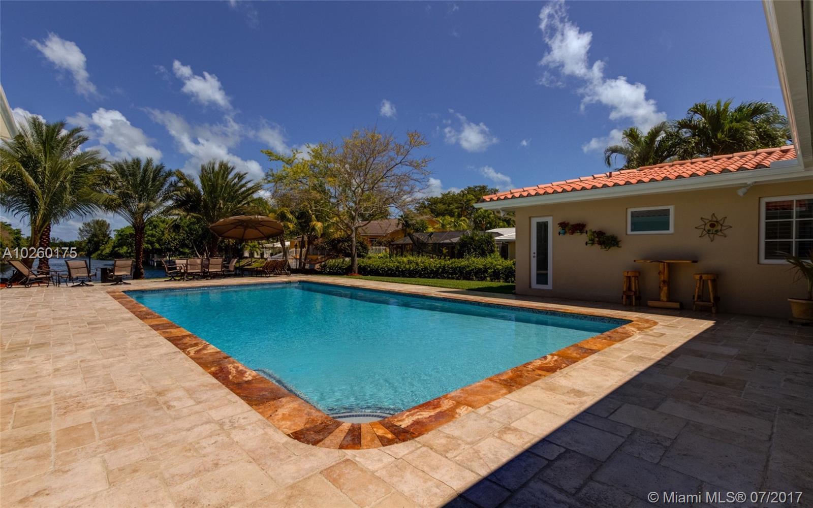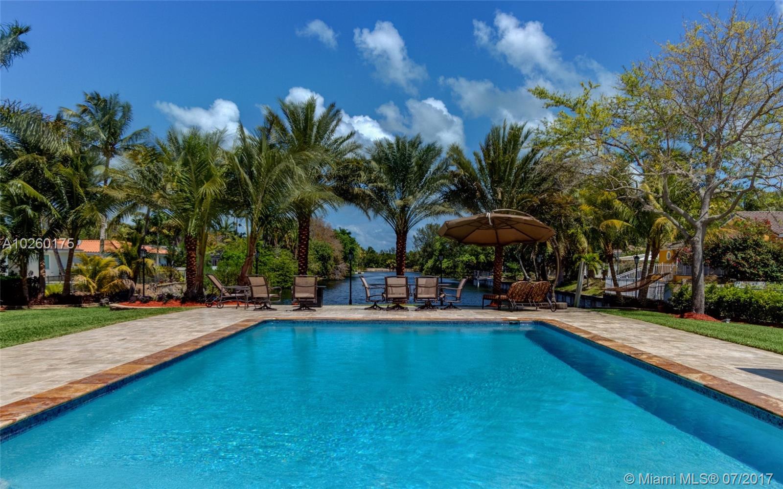 Stunning water views in gated Gables By The Sea! 4/3/2 home on more .5 acre. Completely renovated. Open floor plan. Chef's kitchen featuring cherry cabinets, granite counters, SS appliances; travertine & Brazilian cherry floors; impact windows/doors; plantation shutters; bathrooms with designer finishes; built-ins in closets/garage; salt water pool; large patio; lush landscaping/mature trees; outdoor LED lighting; alarm system; well water sprinkler system; invisible dog fence. Desirable school district.