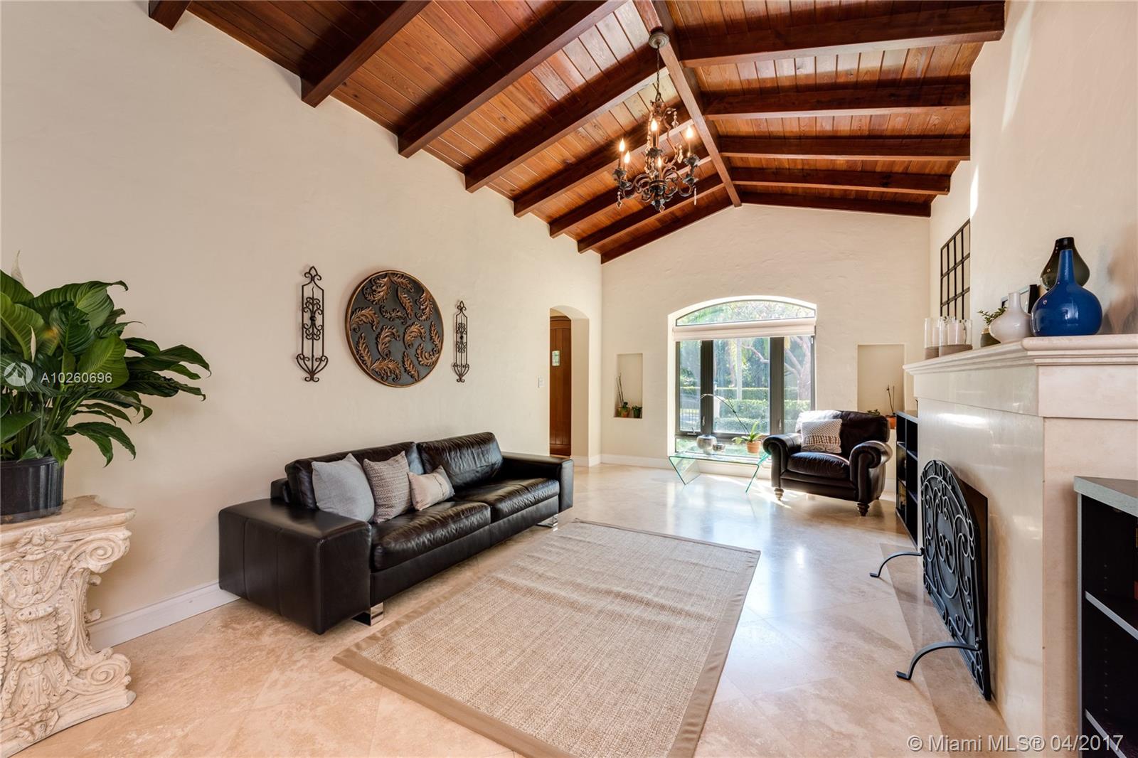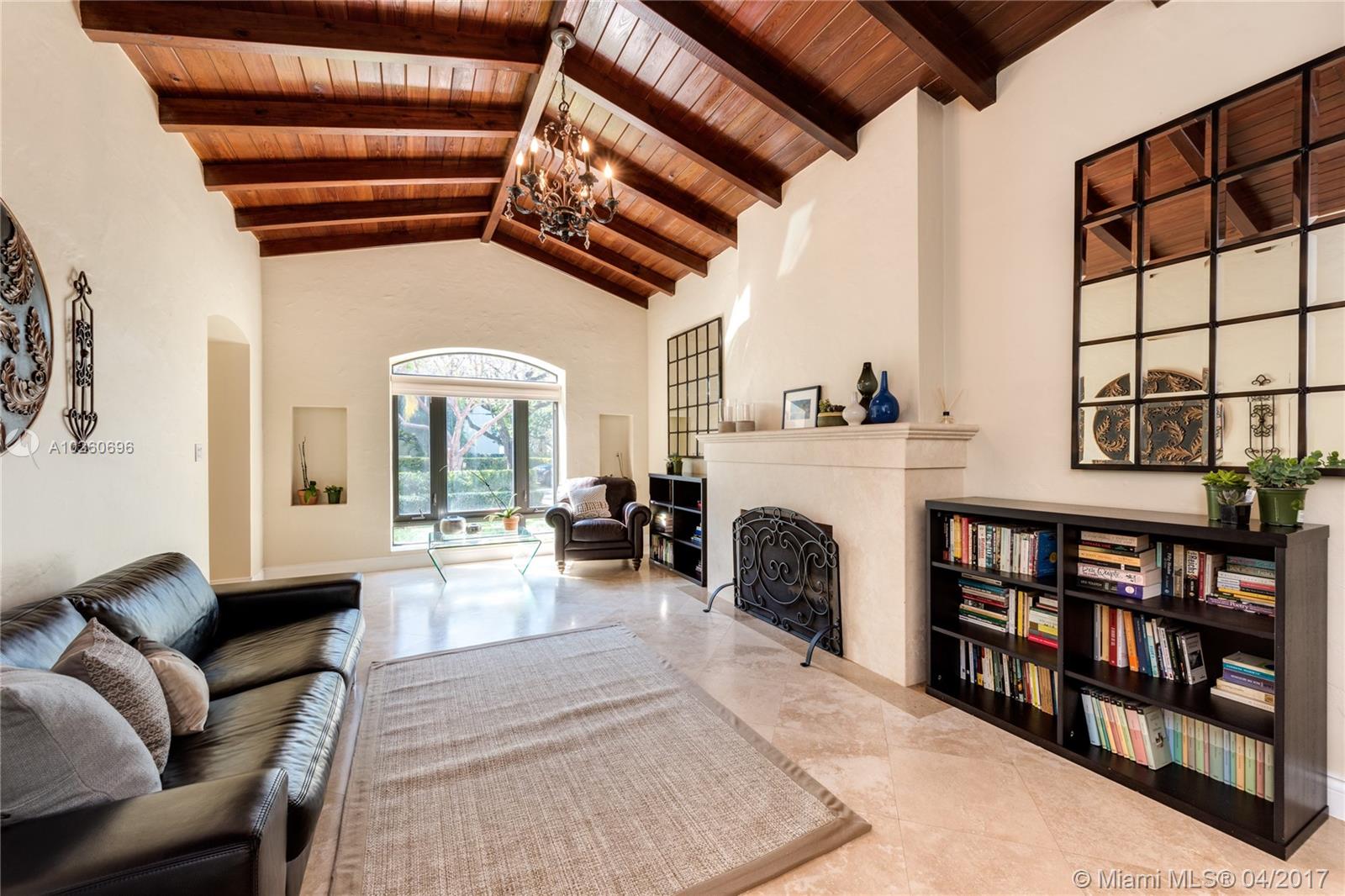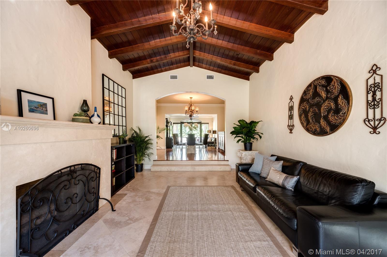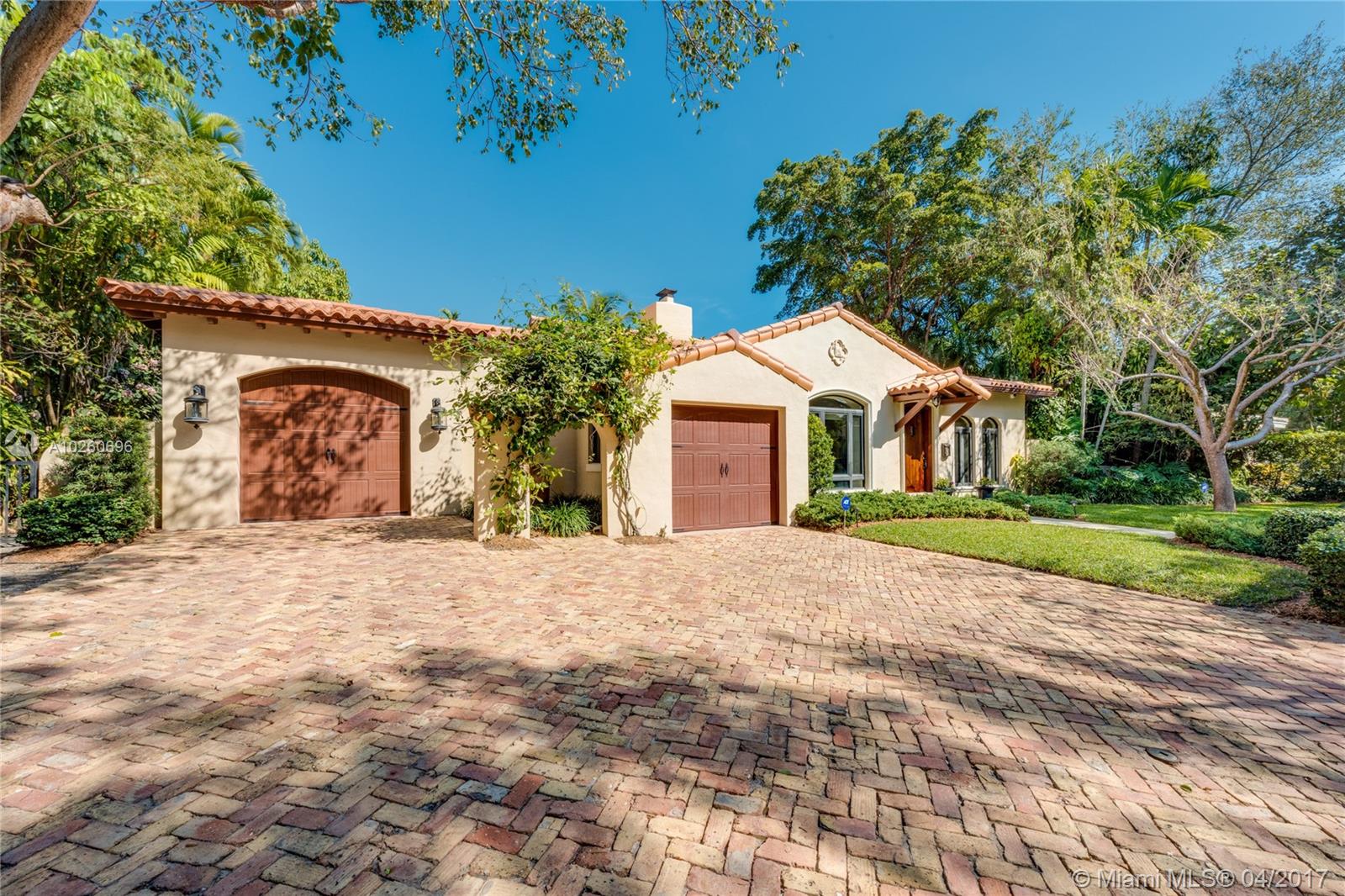 Stunning, 1930's home near the Gables Country Club. Expansive 11, 250' gated lot. Foyer with seating area & access to side garden. LR with cathedral ceiling & carved stone fireplace. Formal DR with Fam Rm beyond that opens to covered patio & lushly landscaped back yard 2 bdrms and hall bath on right. On left is a large new kitchen with breakfast area. Huge master bdrm suite with walk-in closet, plus a luxurious bath. Major updates have been completed including impact windows. FIRM PRICE EXPECTED.