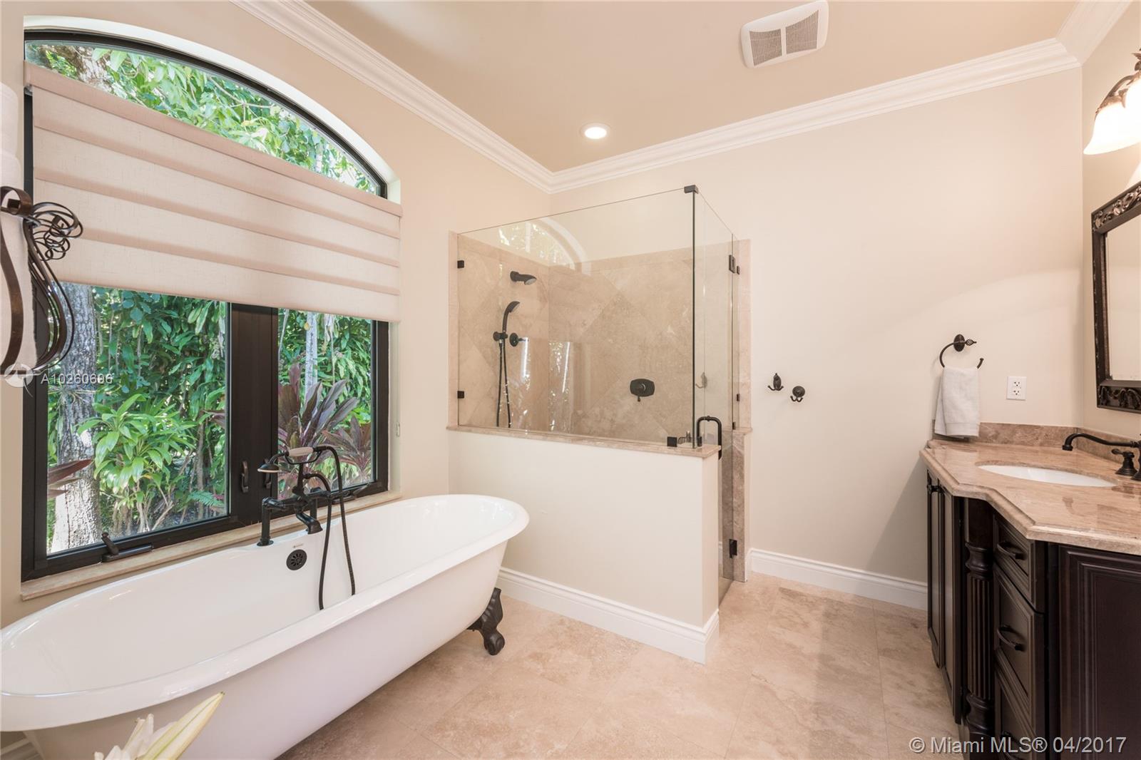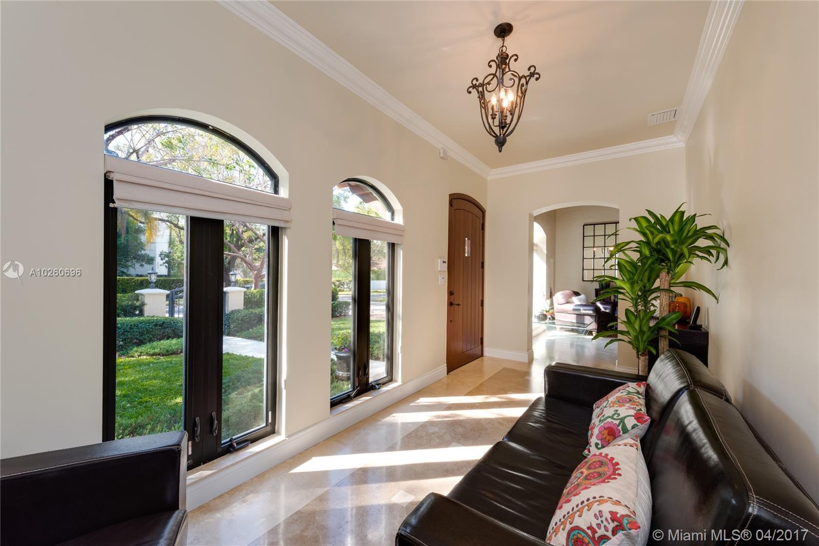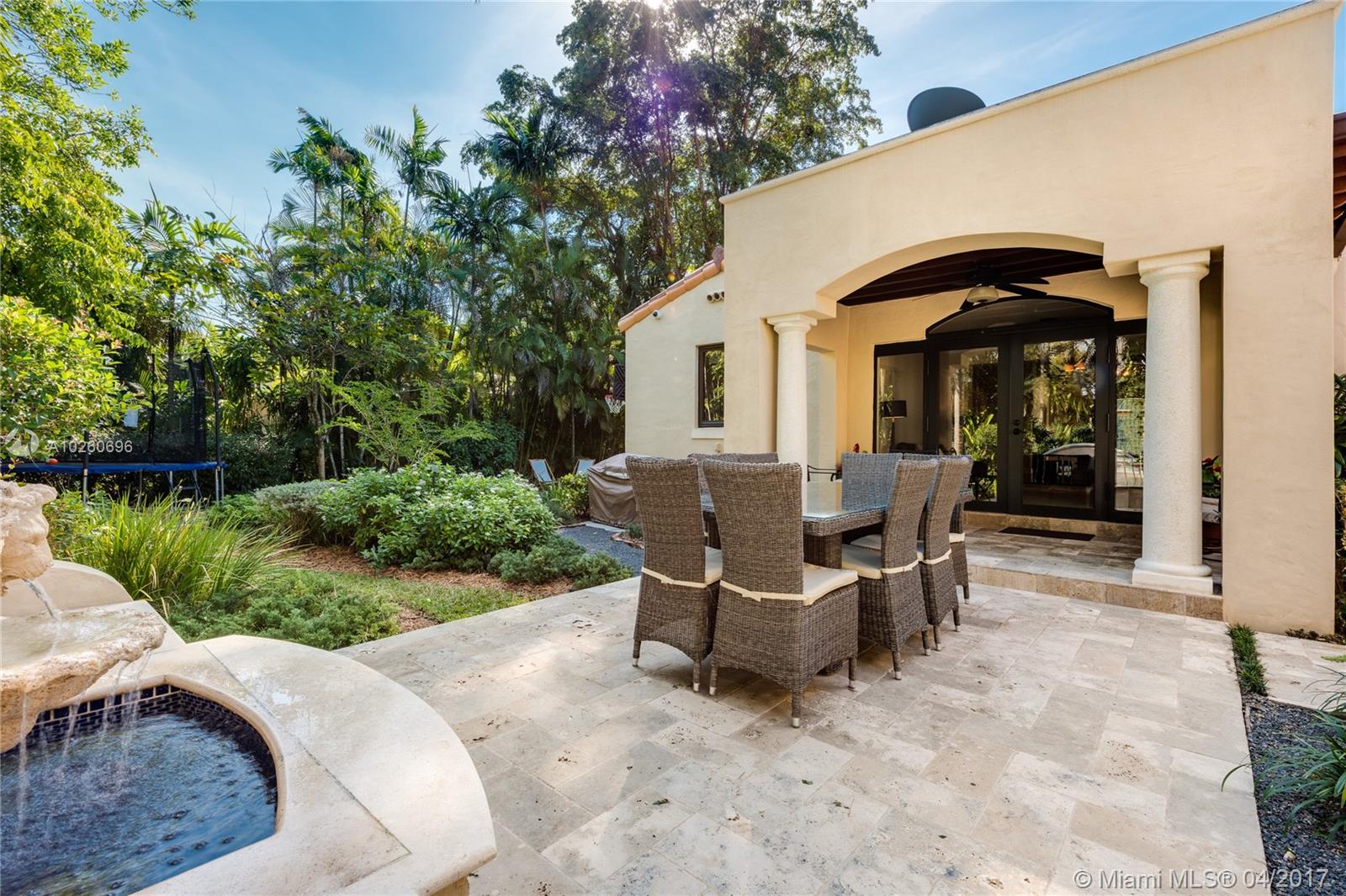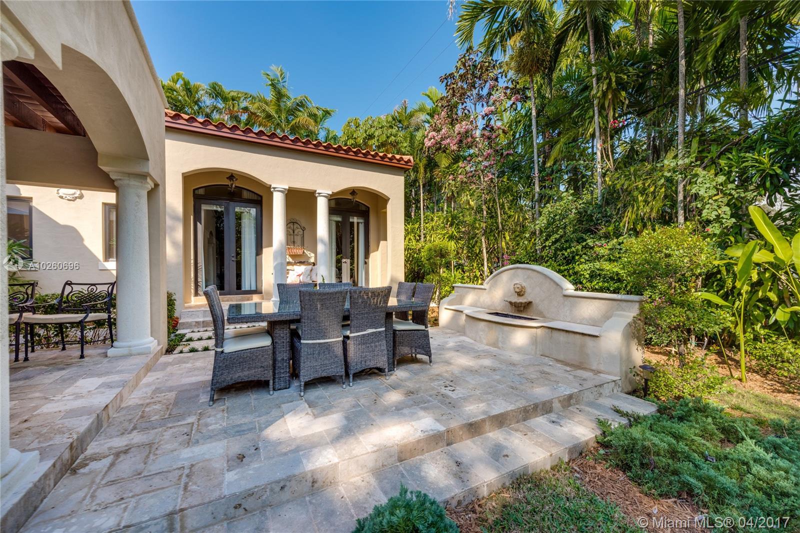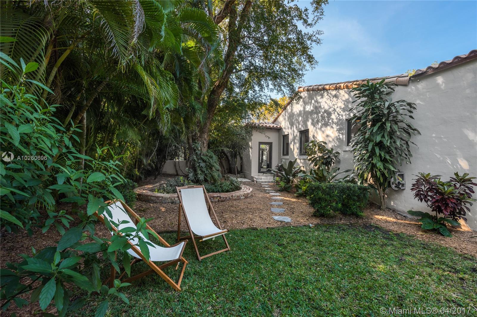 Stunning, 1930's home near the Gables Country Club. Expansive 11, 250' gated lot. Foyer with seating area & access to side garden. LR with cathedral ceiling & carved stone fireplace. Formal DR with Fam Rm beyond that opens to covered patio & lushly landscaped back yard 2 bdrms and hall bath on right. On left is a large new kitchen with breakfast area. Huge master bdrm suite with walk-in closet, plus a luxurious bath. Major updates have been completed including impact windows. FIRM PRICE EXPECTED.