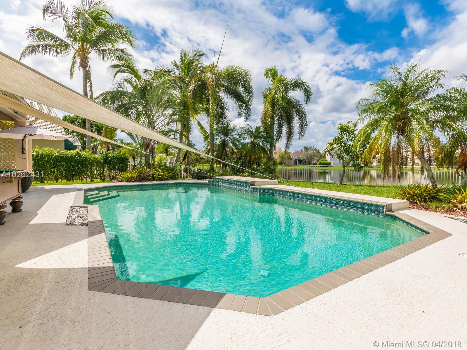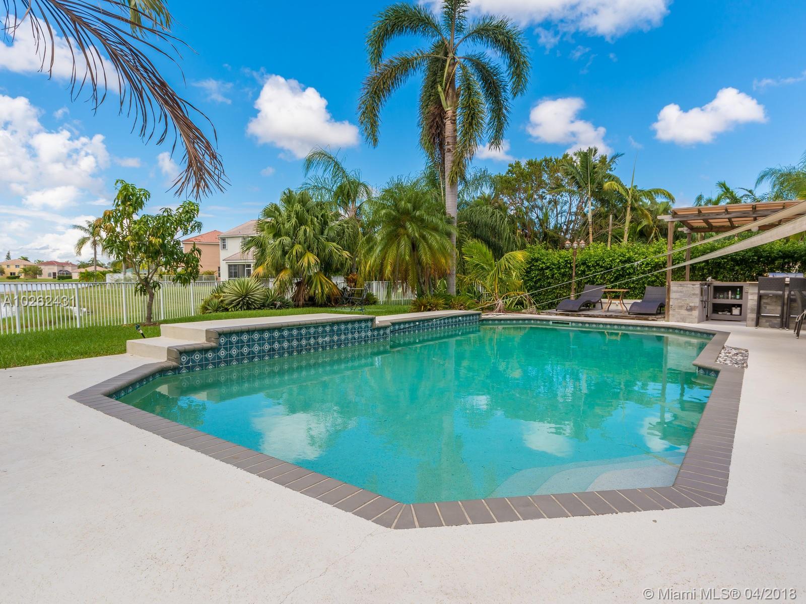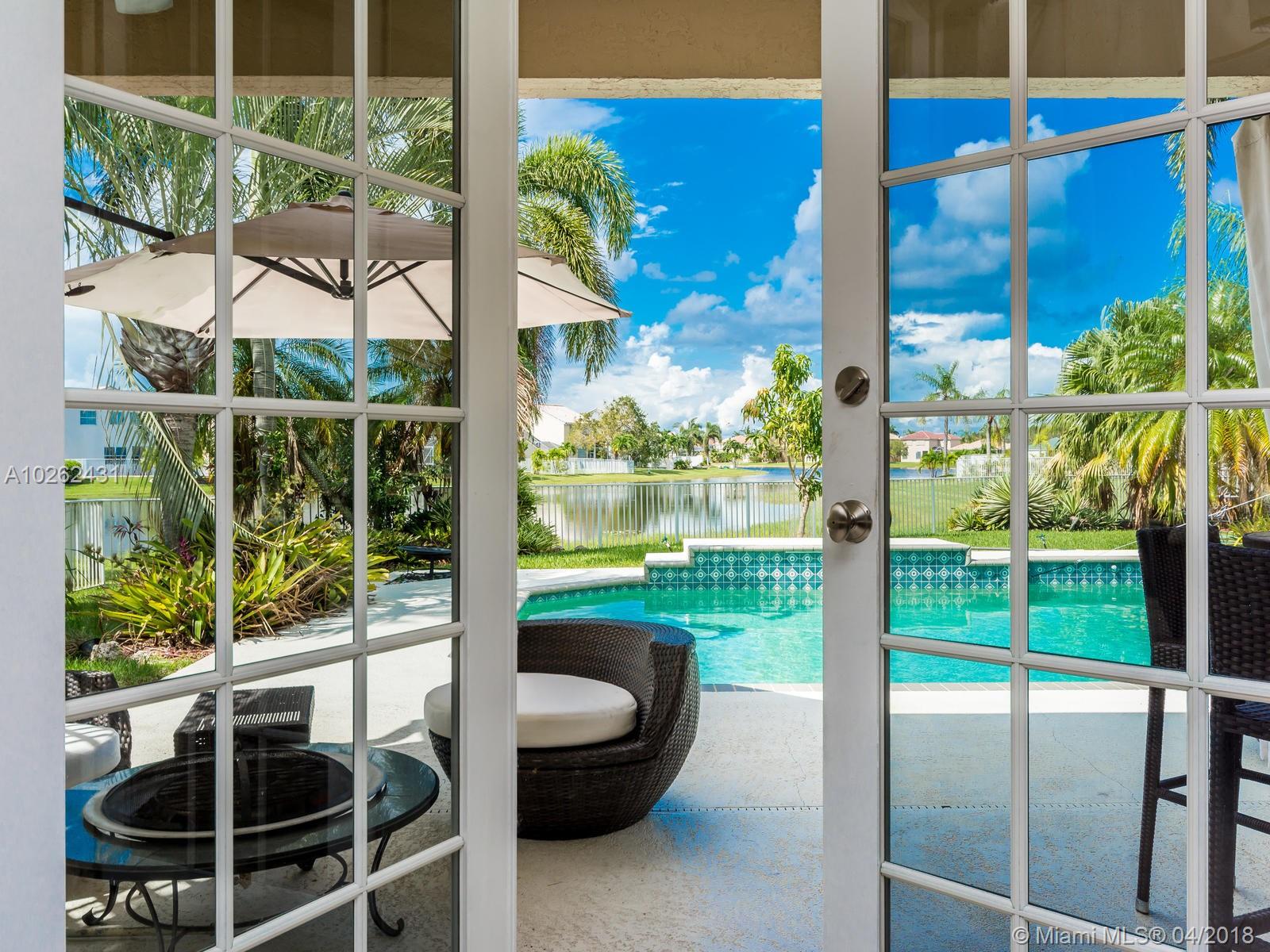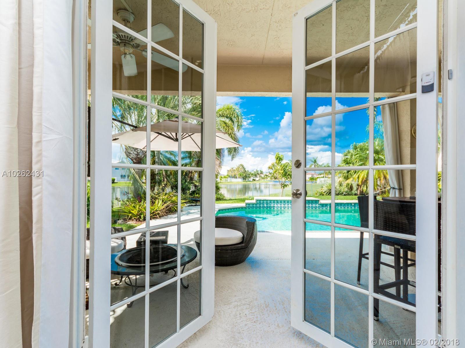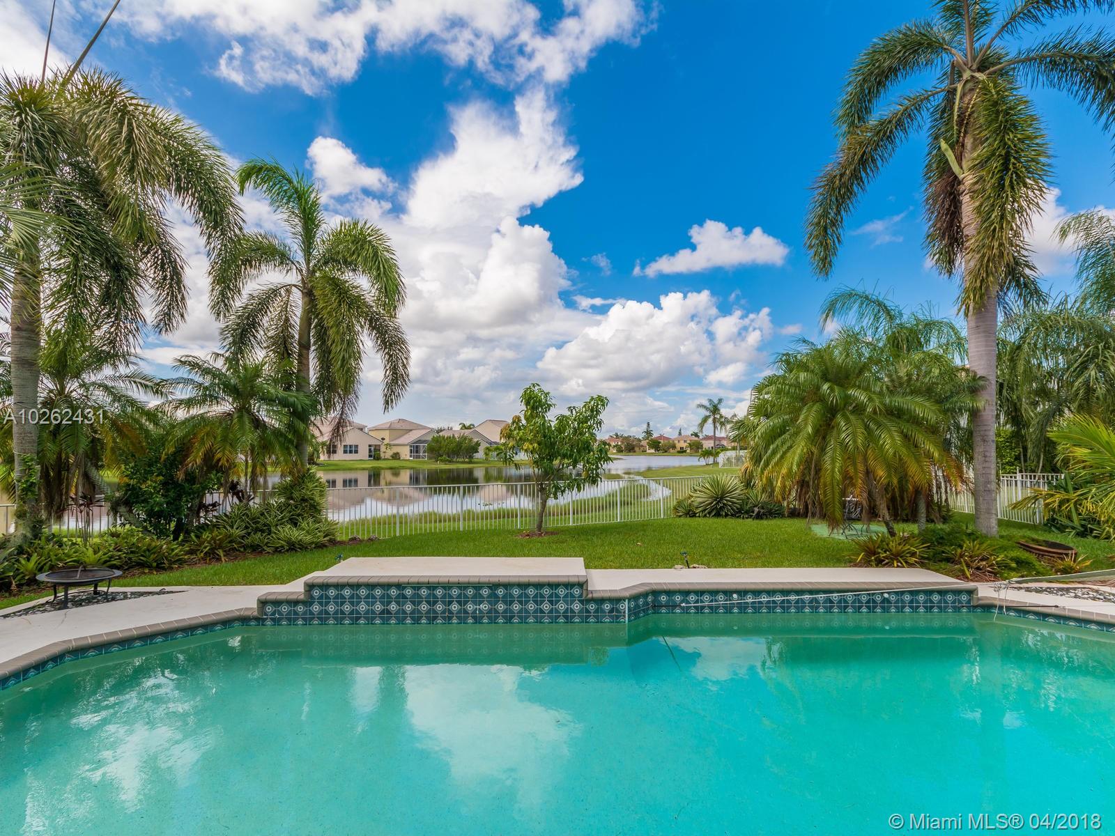 This house is Unique, It is in a Cul de Sac with a very large lot, Lake view. Pool , Lake . New Bathrooms , New Stair Rails. Kitchen.new Painted.New Generation Air condition. Outdoor Kitchen and Barbecue area.out door wood Oven . California Closets . GYM .Double Phone Line . Attic.Alarm System with high security door by door, and window by window detectors, fire , Glass Broke detector by window. Cable wire, Direct Tv wired . Wifi . Crown Molding . Stone wall with fire Place and water fall.French door . Hunter Douglas Window Treatment . Fenced all around pool area . Exterior Lighys . High Impact Windows and Door , Acordeon Shutters and much much more