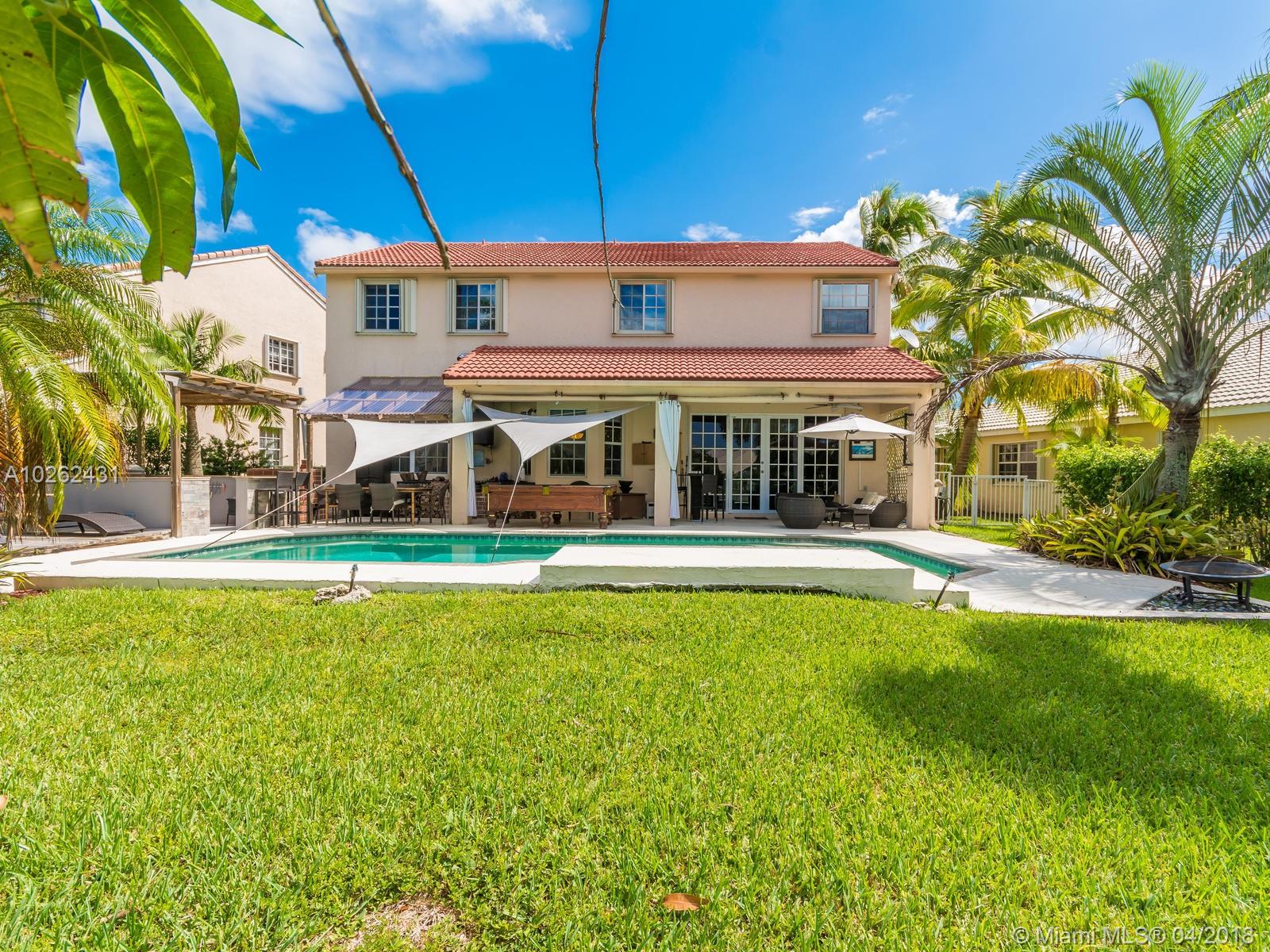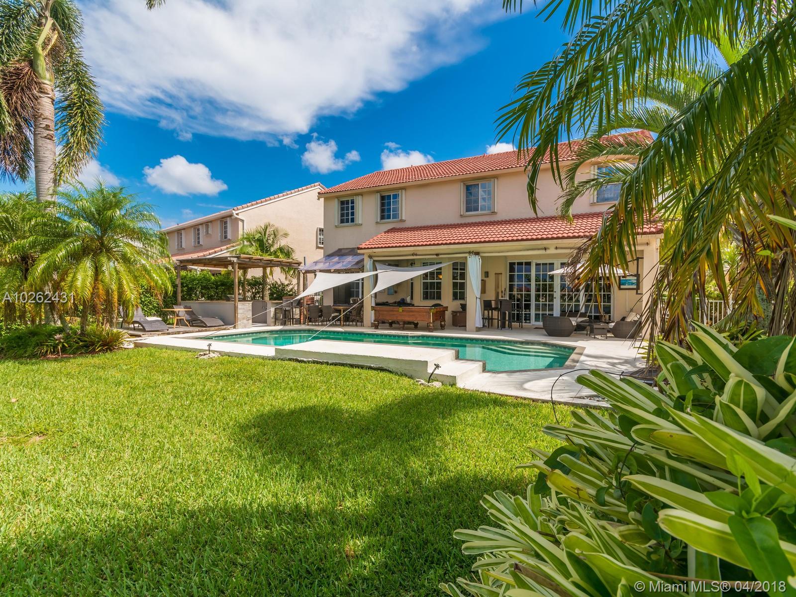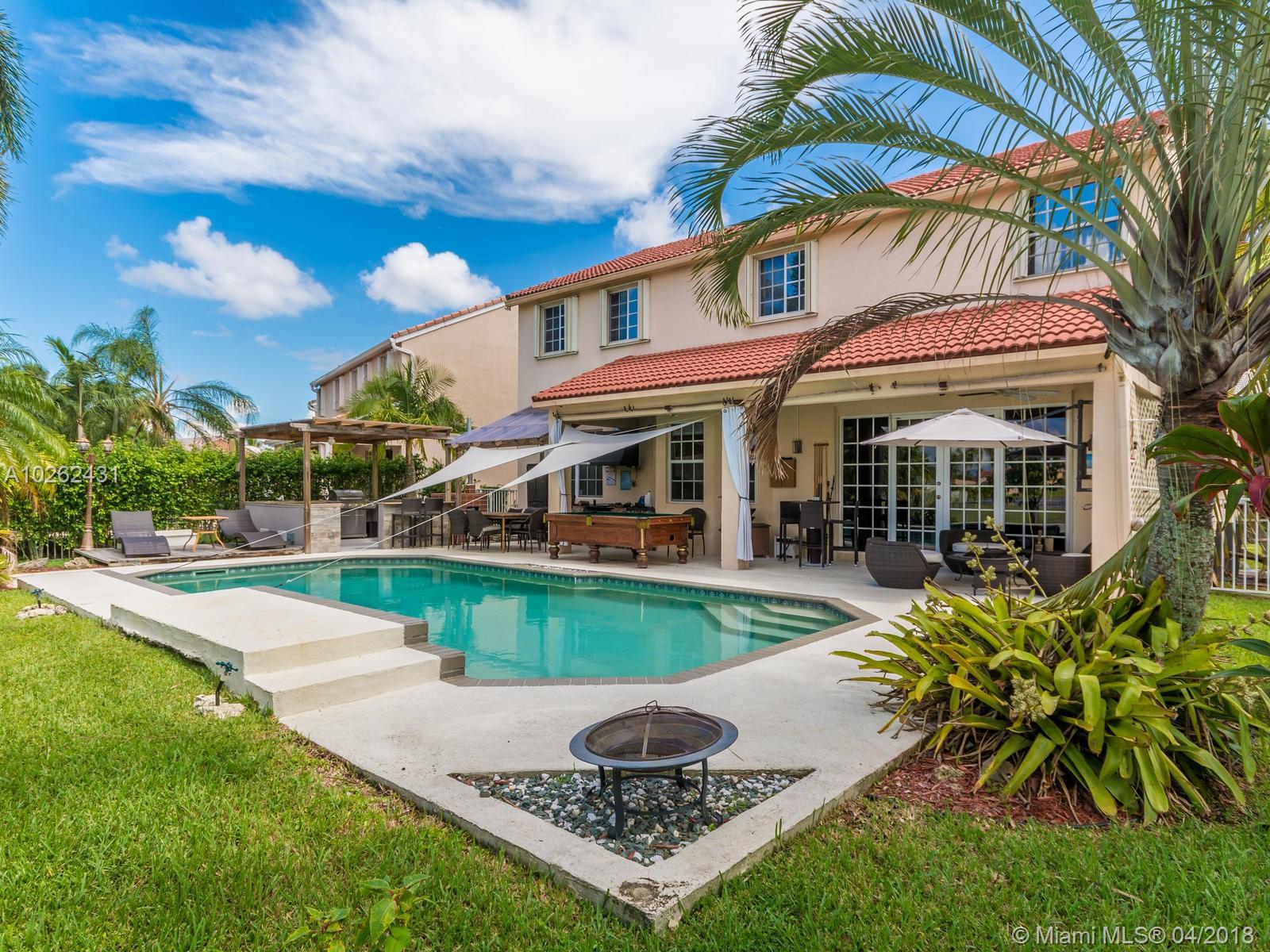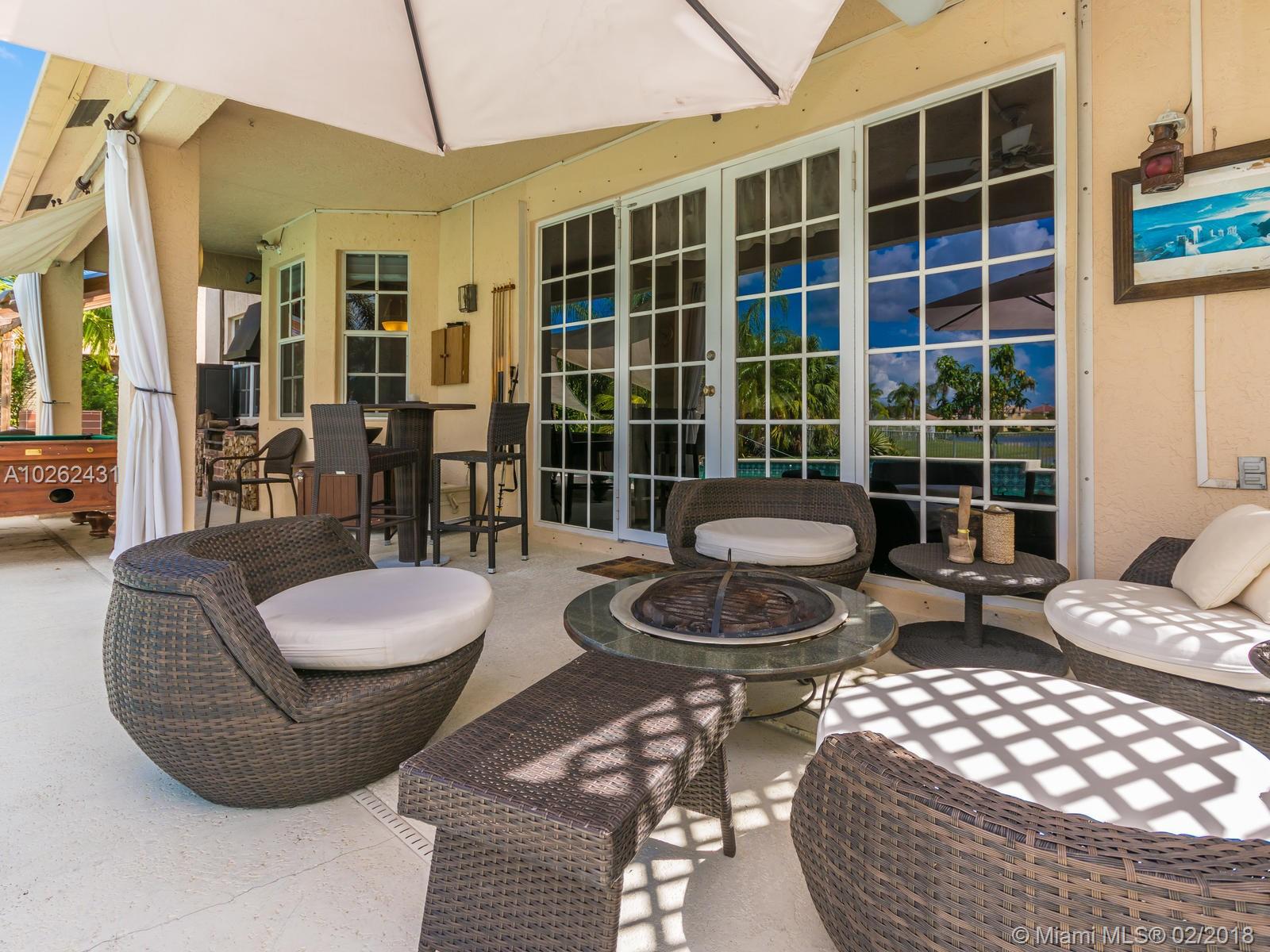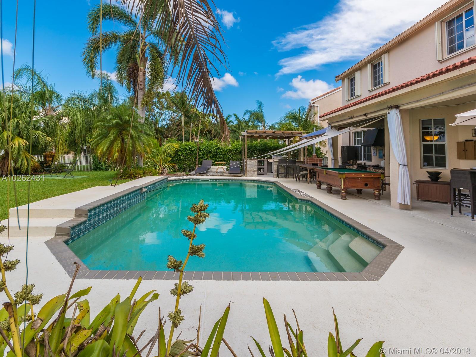 This house is Unique, It is in a Cul de Sac with a very large lot, Lake view. Pool , Lake . New Bathrooms , New Stair Rails. Kitchen.new Painted.New Generation Air condition. Outdoor Kitchen and Barbecue area.out door wood Oven . California Closets . GYM .Double Phone Line . Attic.Alarm System with high security door by door, and window by window detectors, fire , Glass Broke detector by window. Cable wire, Direct Tv wired . Wifi . Crown Molding . Stone wall with fire Place and water fall.French door . Hunter Douglas Window Treatment . Fenced all around pool area . Exterior Lighys . High Impact Windows and Door , Acordeon Shutters and much much more