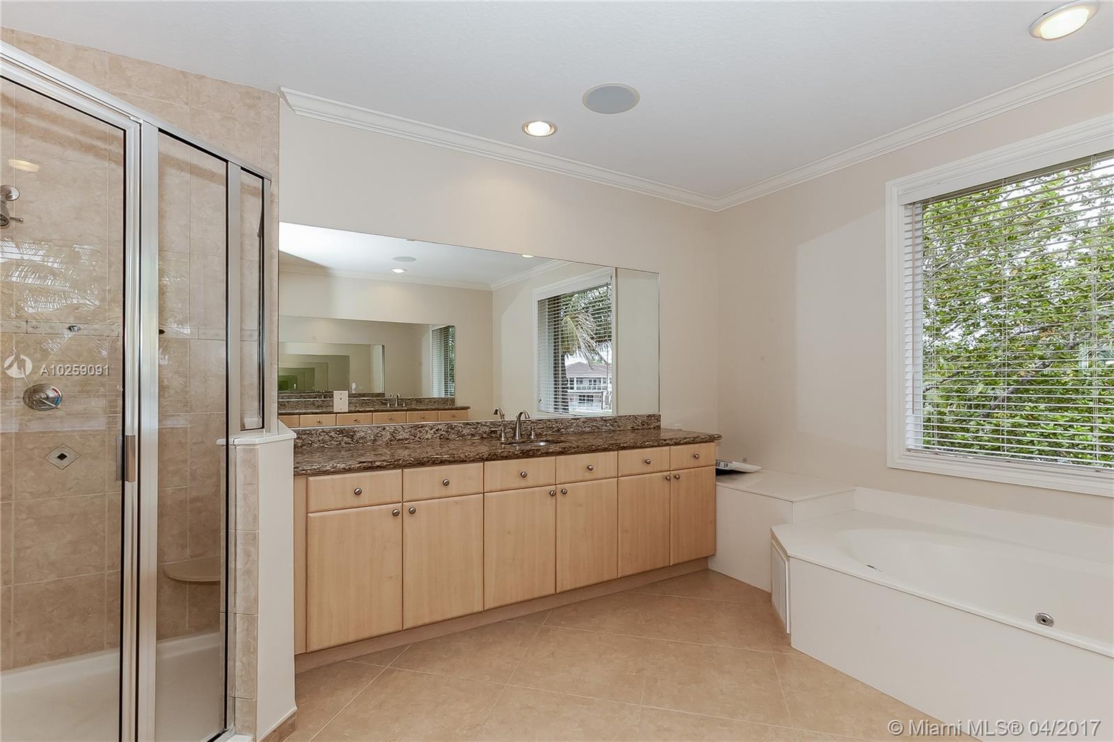 Stunning home of seven bedroom plus office offers amazing water views which surround the one half acre cul-de-sac lot. The grand entry with volume ceilings and elegant custom staircase welcomes you home! Luxurious master bedroom with sitting area features a 32 ft balcony so you can enjoy the breathtaking views from your private suite. Spacious covered patio, open pool and generous fenced yard adds to your outdoor experience. Attached guest house is a 1/1, perfect for extended family, additional office or gym. Circular driveway leads to tiled and air conditioned 3 car garage. This house has it All!