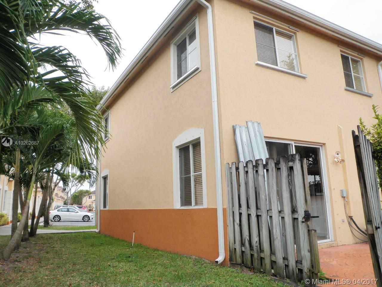 THIS ONE IS A MUST SEE! VERY WELL KEPT 4/3 TOWNHOUSE (END UNIT) WITH LOTS OF NATURAL LIGHT. READY TO MOVE IN HOME FEATURES TILES 1ST FLOOR AND CARPET UPSTAIRS. LARGE OPEN PATIO FOR ENTERTAINING. NO NEIGHBORS BEHIND UNIT. OPEN GREEN SPACE WITH JOGGING/WALKING TRAIL. THE PROPERTY IS IN EXCELLENT CONDITION AND MOVE IN READY. FRESHLY PAINTED AND HURRICANE SHUTTERS. CENTRALLY LOCATED NEAR MIAMI LAKES, MAIN STREET, I-75, PALMETTO EXPRESSWAY AND TURNPIKE. GREAT INVESTMENT OPPORTUNITY.