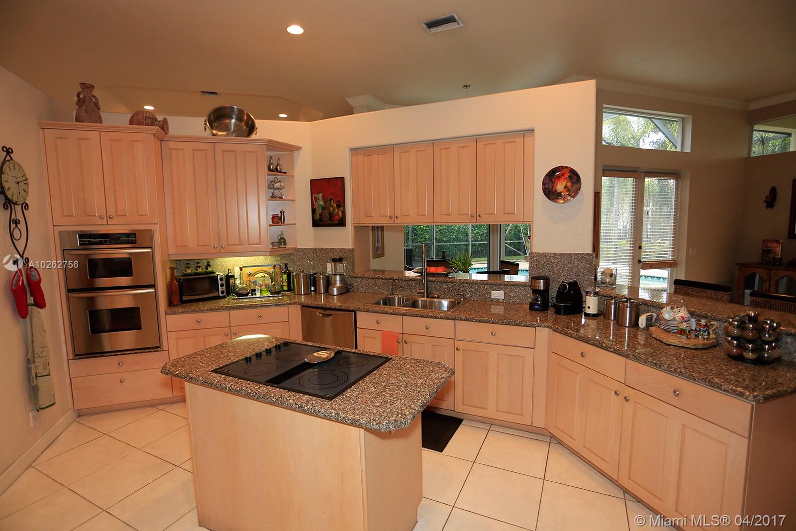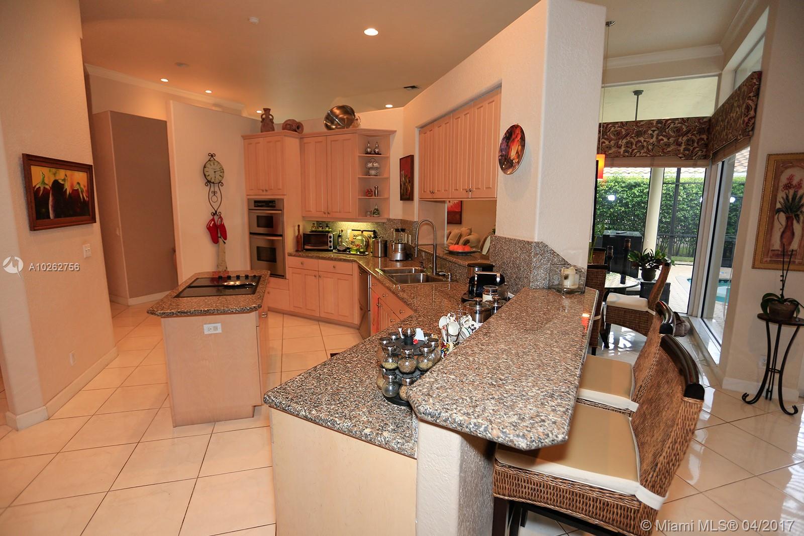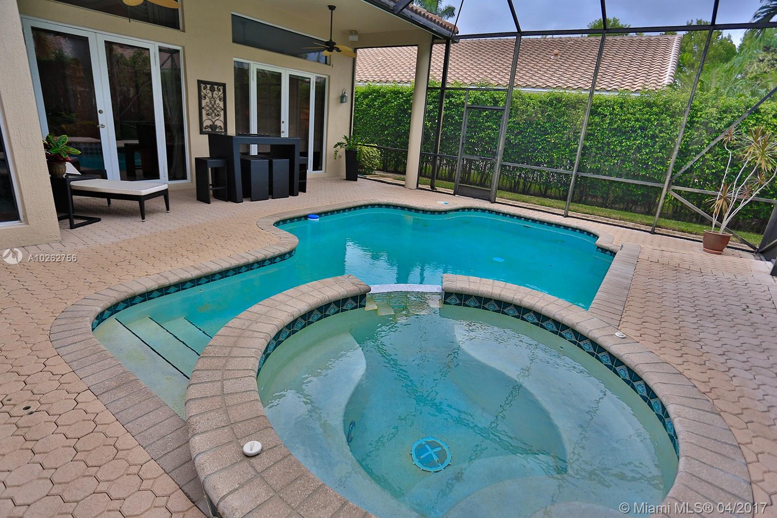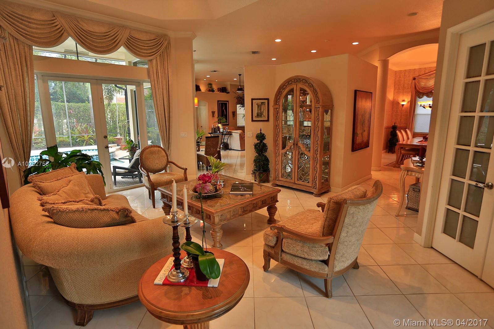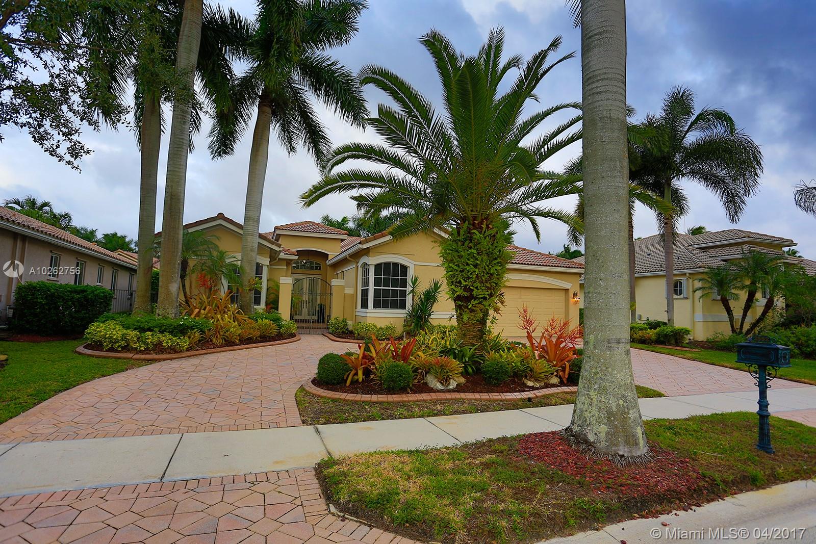 Elegant spacious rare 4 Bed/3.5 Bath estate home w/huge circular driveway in prestigious gated Weston Hills CC featuring formal living & dining rooms w/volume & tray ceilings + huge family room, kitchen & breakfast area great for entertaining! Upgraded 42" wood cabinets, granite, SS appliances, double dishwasher, wall oven, oversized master suite w/dressing area, custom-made walk-in double closets & upgraded marble master bath & upgraded baths. Huge screened-in pavered pool area. 1st time on the market!