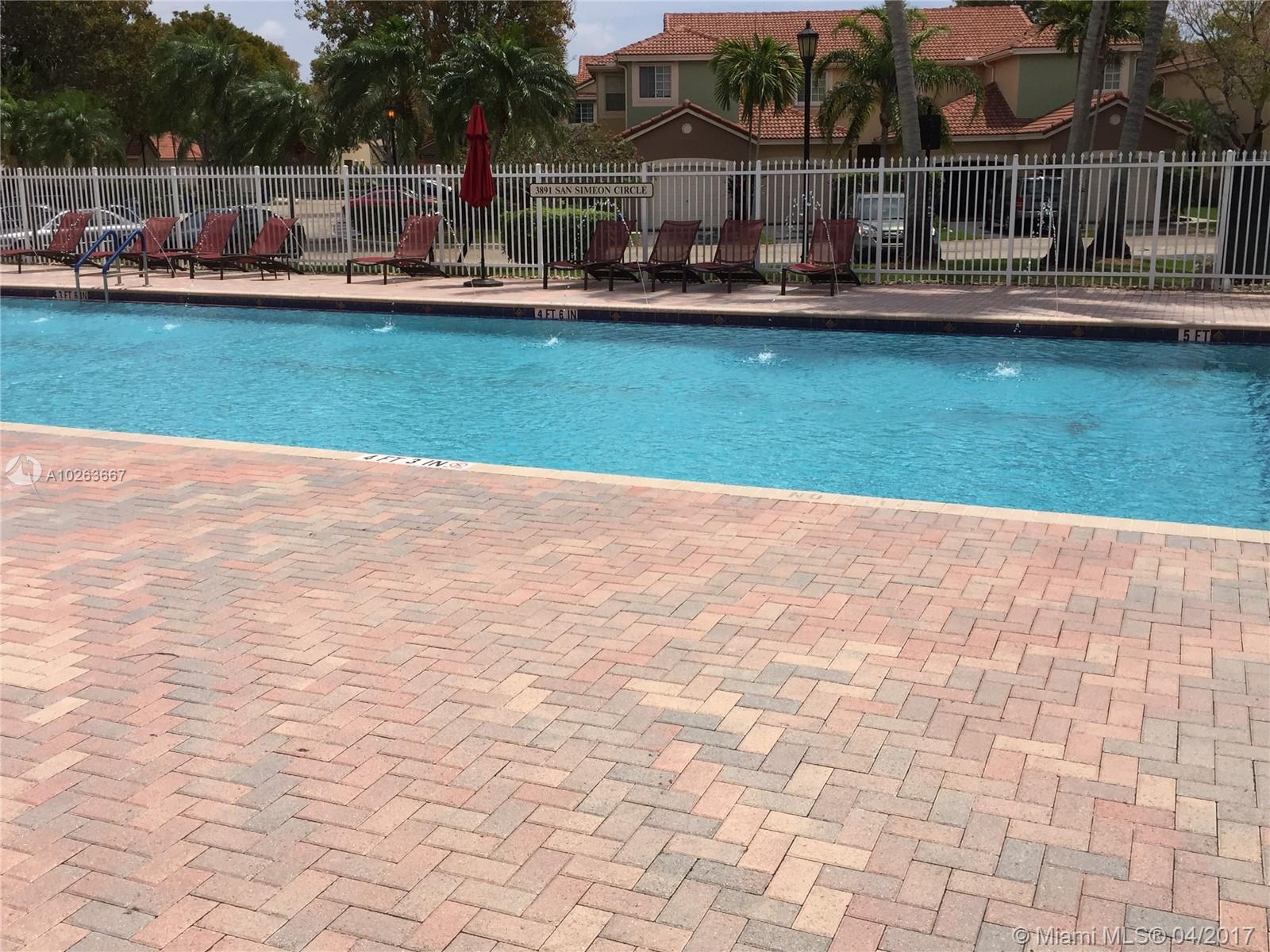 Beautiful 3/2.5 townhouse in prestigious Village of San Simeon. Open first floor plan adjoined by a screened-in patio overlooking the scenic lake. Dine-in kitchen with breakfast counter. Convenient 1st floor half bath. Large master suite on 2nd floor overlooking the patio and lake. Bright and airy bedrooms. Attached 1-car garage. Easy access to community pool and playground. Excellent A+ rated schools. Close to restaurants, shopping, parks, highways. A family friendly Weston community with the rare opportunity for a water-view unit. Seller will contribute $5,000 towards buyer's expenses.