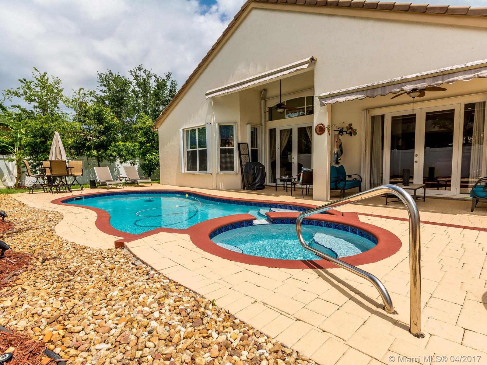 WOW!! 4 bed, 3 bath, 2 car garage corner lot pool home in very desirable gated community Sunset Lakes Miramar (Monaco). Freshly painted exterior and interior (incl pool deck), auto cleaning heated salt water filtration 30x12 pool with jacuzzi (new pump, valves, etc), sprinkler system, 2010 A/C, 2016 tankless water heater, LED lighting throughout, fruit trees, top of the line Samsung appliances in this large kitchen, PVC Fence, landscape lighting, alarm system with glass break and carbon monox. detectors, accordion shutters, upgraded french doors to patio, multi-zone speaker system inside/outside, new ceiling fans, new brushed nickel light fixtures, upgraded baseboards, window treatments included, dual rain shower heads and enclosed toilet in master bath, all bathrooms upgraded. SPOTLESS!!