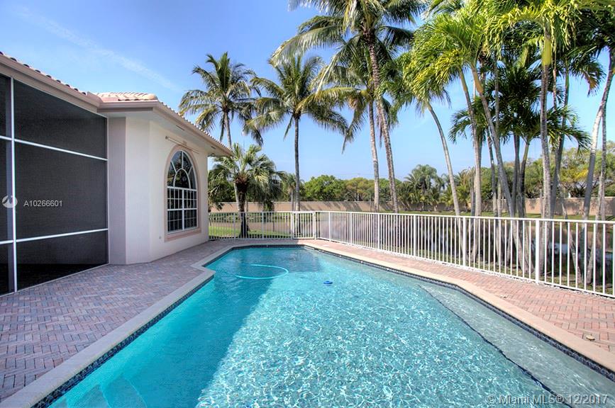 Custom house on 16,000 sq ft pie shaped lot on water, in back of cul-de-sac, located in Plantation Palms, 24 hr guarded community. Split bedroom plan. 10'-13' coffered ceilings. Newly updated kitchen. 3 new A/Cs. 35 yr life modified bitumen underlying concrete tile roof. Hurricane shutters. House qualifies for all wind mitigation credits for large insurance discounts. Located minutes from major highways, shopping centers, Las Olas Blvd, Ft Laud airport and beaches.