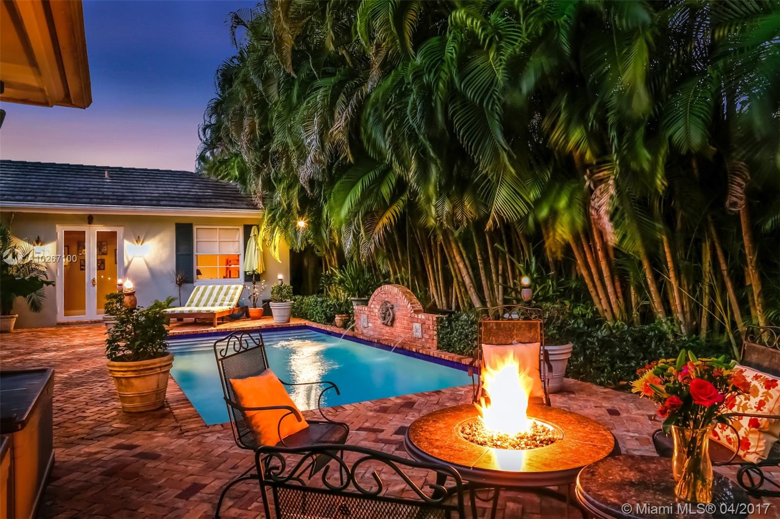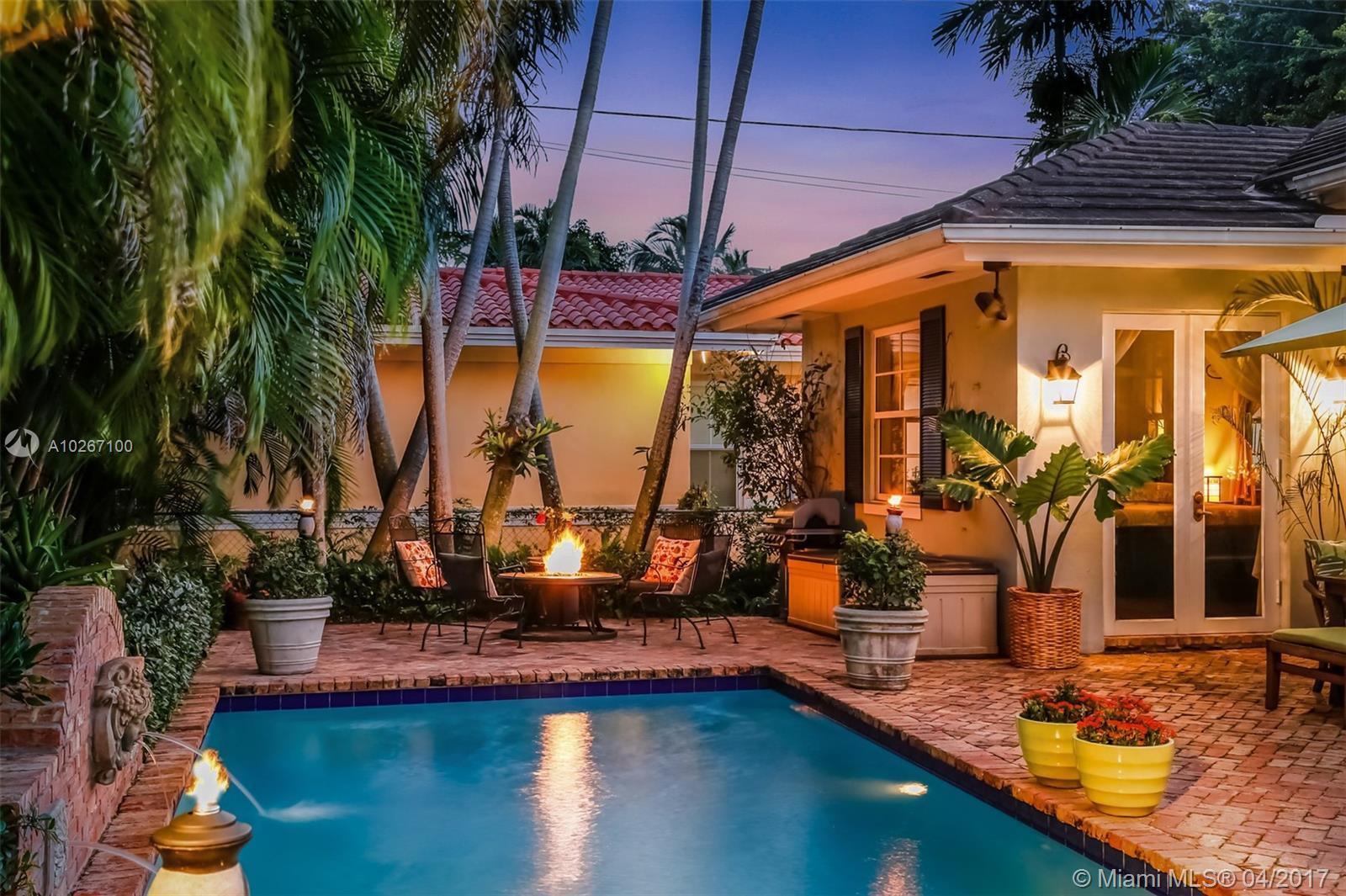 JUST REDESIGNED! Celebrated British-Swiss interior designer (MK Interiors Miami) transforms this home into a luxurious haven where Classic and Modern blend seamlessly. Light and bright spaces with french doors lead onto a beautiful patio with a heated lit pool. Wooden floors, vaulted ceilings, fireplace, plenty of storage space and beautiful built-ins are a feature of this property. The property sits on a large corner lot that is gated/fenced. Minutes from the University of Miami.