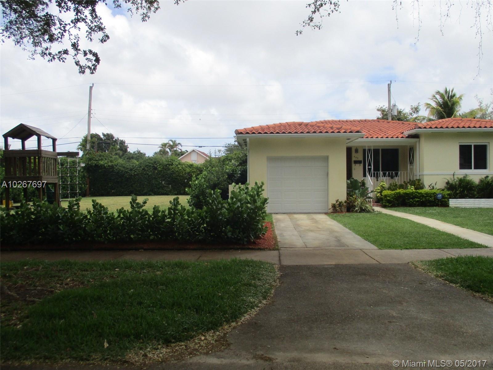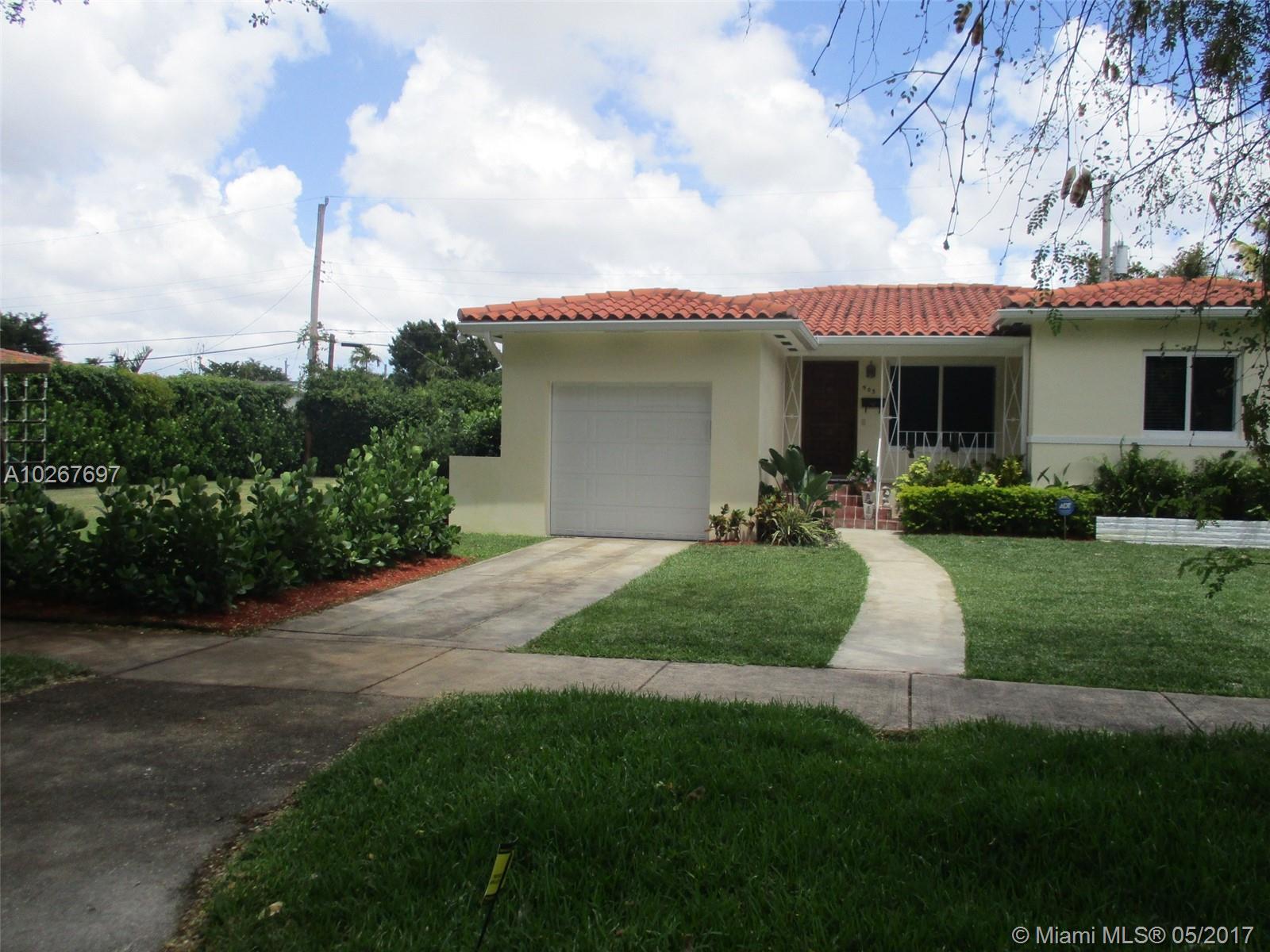 Adorable 3 bedrms split floor plan, 3 baths, 1 car garage w/lots of charm and updates. Art deco arches and original grey Cuban tile in immaculate condition and hardwood floors. New impact windows, kitchen w/granite counter-tops, stainless steel appliances, 2 new completely remodeled baths. Double lot w/unlimited potential, add on to existing house and or add pool. This is a great starter home to grow into. Builder's possibility to build one large home on site. Located on quiet tree lined street.