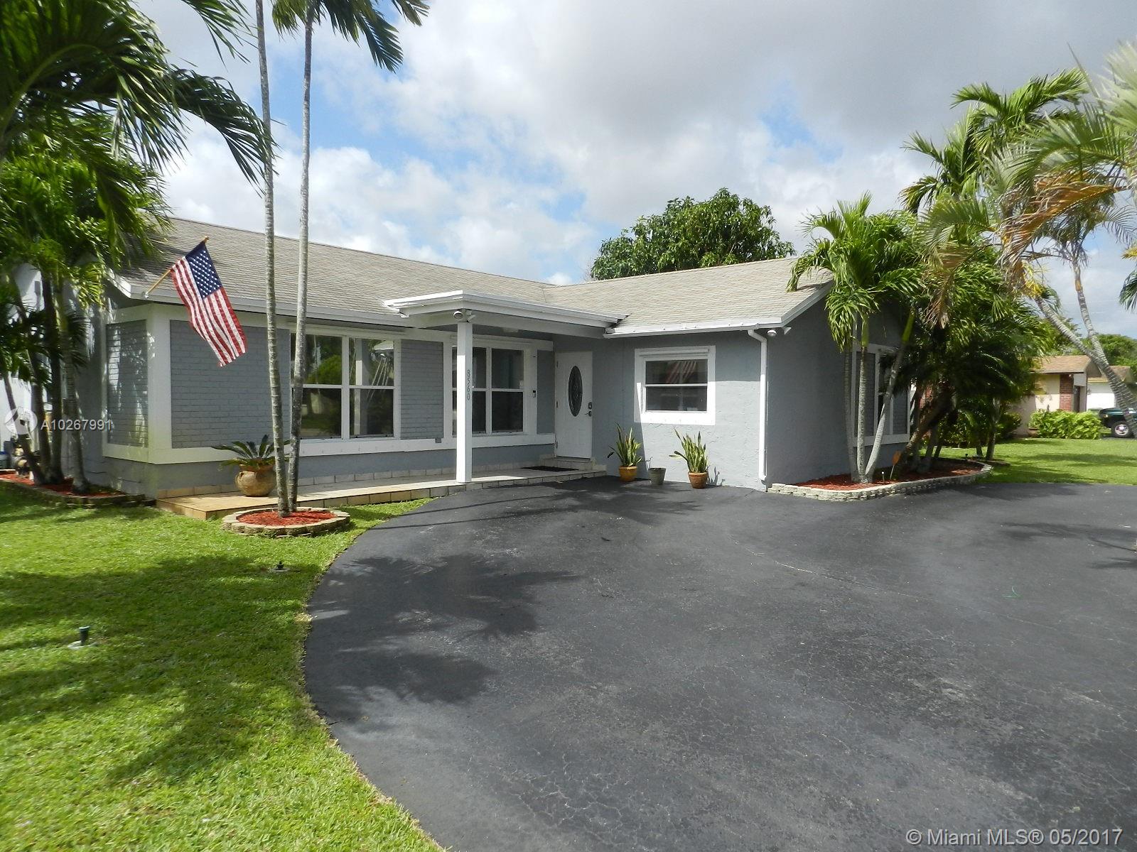Wow! Gorgeously remodeled pool home in the heart of Pembroke Pines & in move-in condition! Stunning kitchen remodel with espresso cabinets, soft close doors and drawers, stainless steel appliances and tons of cabinet/counter space! Both bathrooms upgraded to the max - 2nd bath with cabana door to pool! Real hardwood floors in living/dining room - neutral tile throughout rest of home (no carpeting)! Relax on your covered patio overlooking the inviting pool area! Pool equipped with salt water chlorination system and baby fence! Yard on either side of the home with your own mango tree! Other features include spacious rooms, split floor plan, snack bar, AC replaced 2013, circular driveway, recently painted exterior, 4th bedroom currently used as office but there is a door, closet, and window.