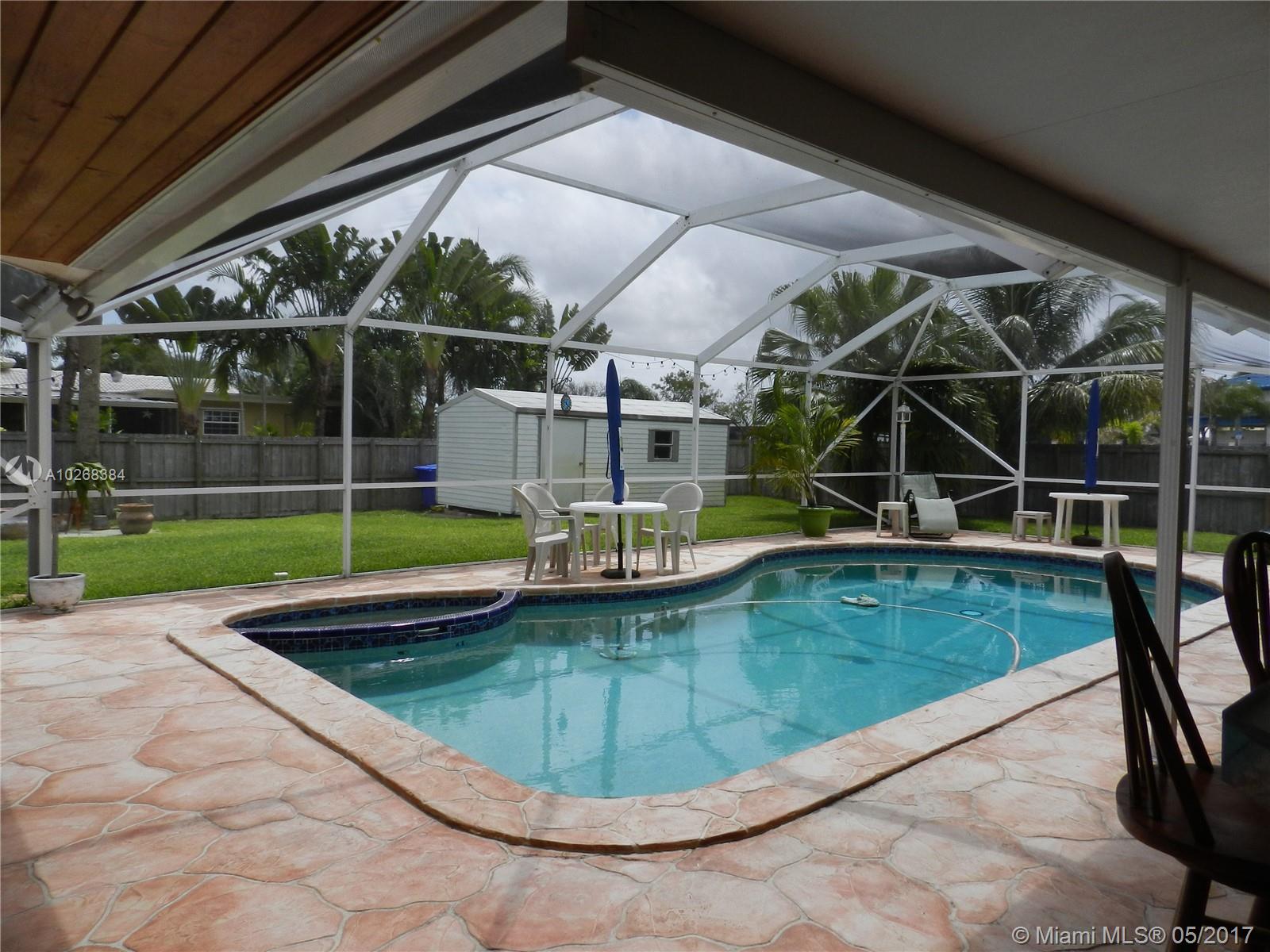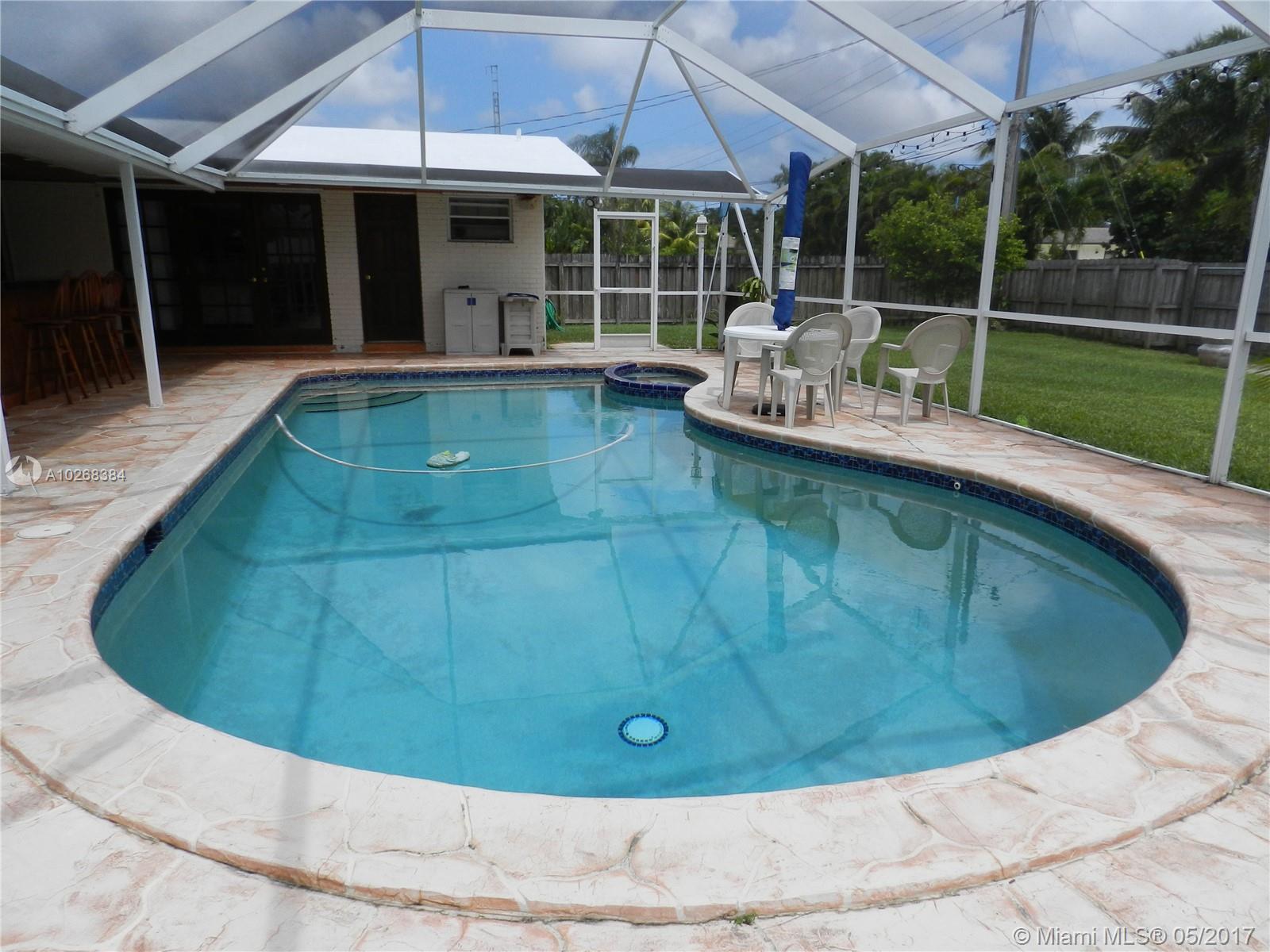 PRICE REDUCTION. Fabulous move-in ready executive home with 2 master suites in Hollywood Hills. 4 bedroom/3bath, 2 car garage; remodeled w/numerous upgrades. French Doors lead out to a mansard screened heated pool, hot tub & entertainment area with wet bar, fridge, stereo system and lighting. Bonus: detached bldg with a/c & electric. Kitchen with undermount lighting, granite countertops, ss appliances, wrap around bar. Built-in lighted china hutch and buffet with slideouts. Built in computer desk area in the dining area. Large fenced corner lot w/ tropical trees; across the street from elementary and high school. Brick paver circular front driveway and side garage driveway. Seller motivated