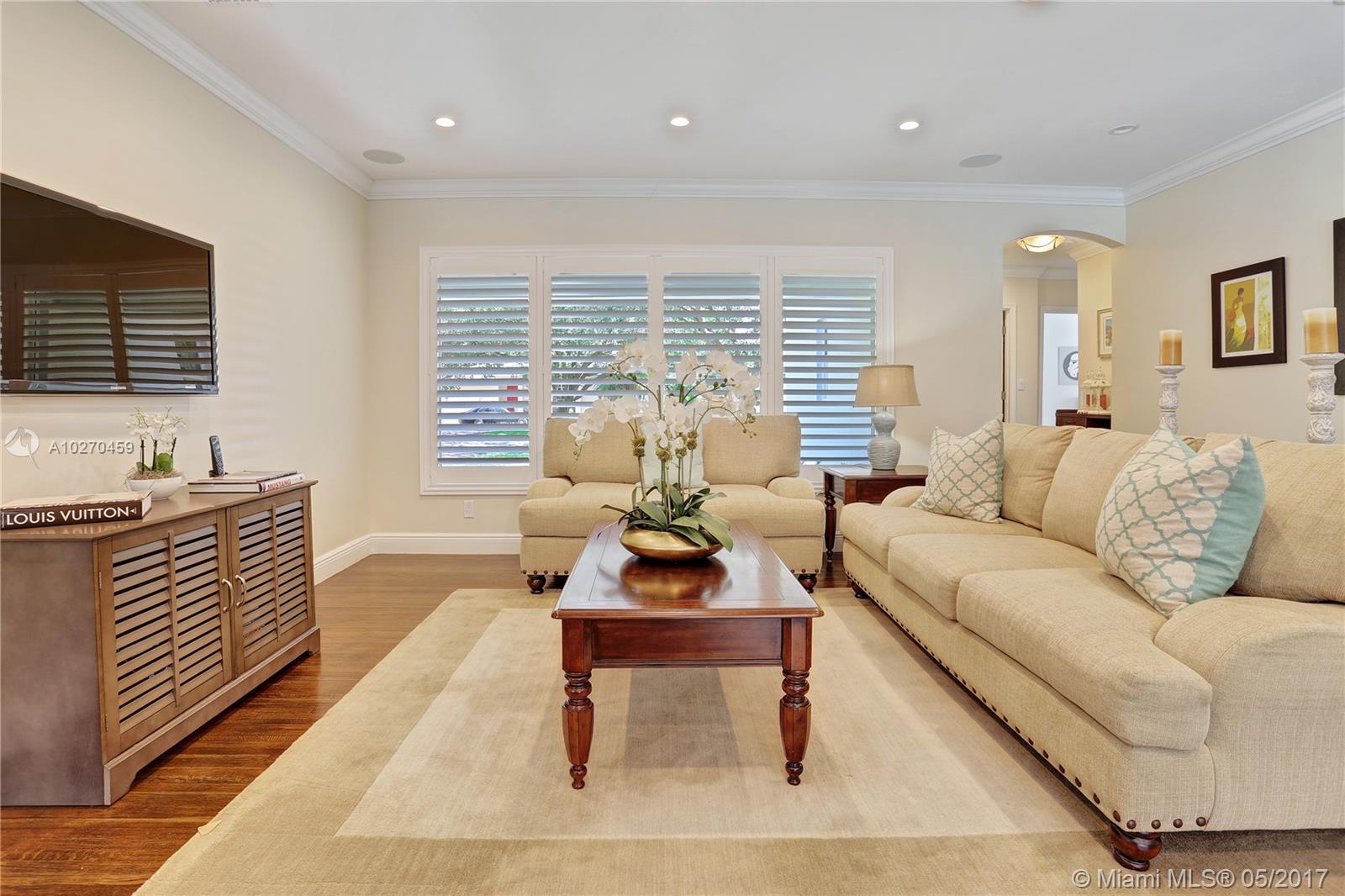 Totally renovated residence in North Gables in pristine condition, everything is New! Impact windows & doors, updated electrical & plumbing, new bathrooms & kitchen w/granite & stainless steel appliances, 2013 central a/c, termite warranty, new tile & hardwood floors, new garage door, pool completely re-done w/wrap around natural stone patio, crown molding, split bedroom plan, french doors! A rare opportunity bring your pickiest buyer but hurry, this one won't last!