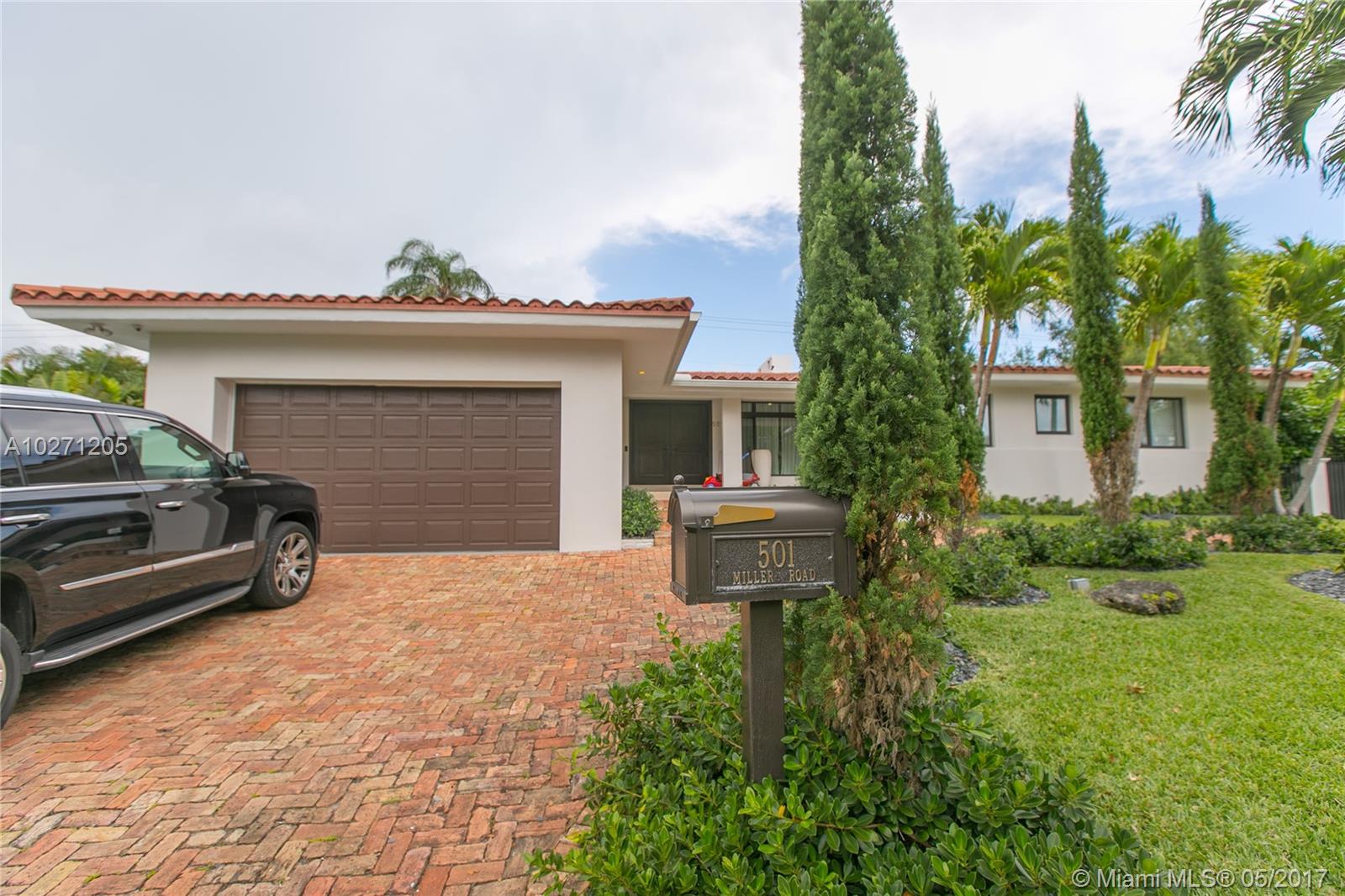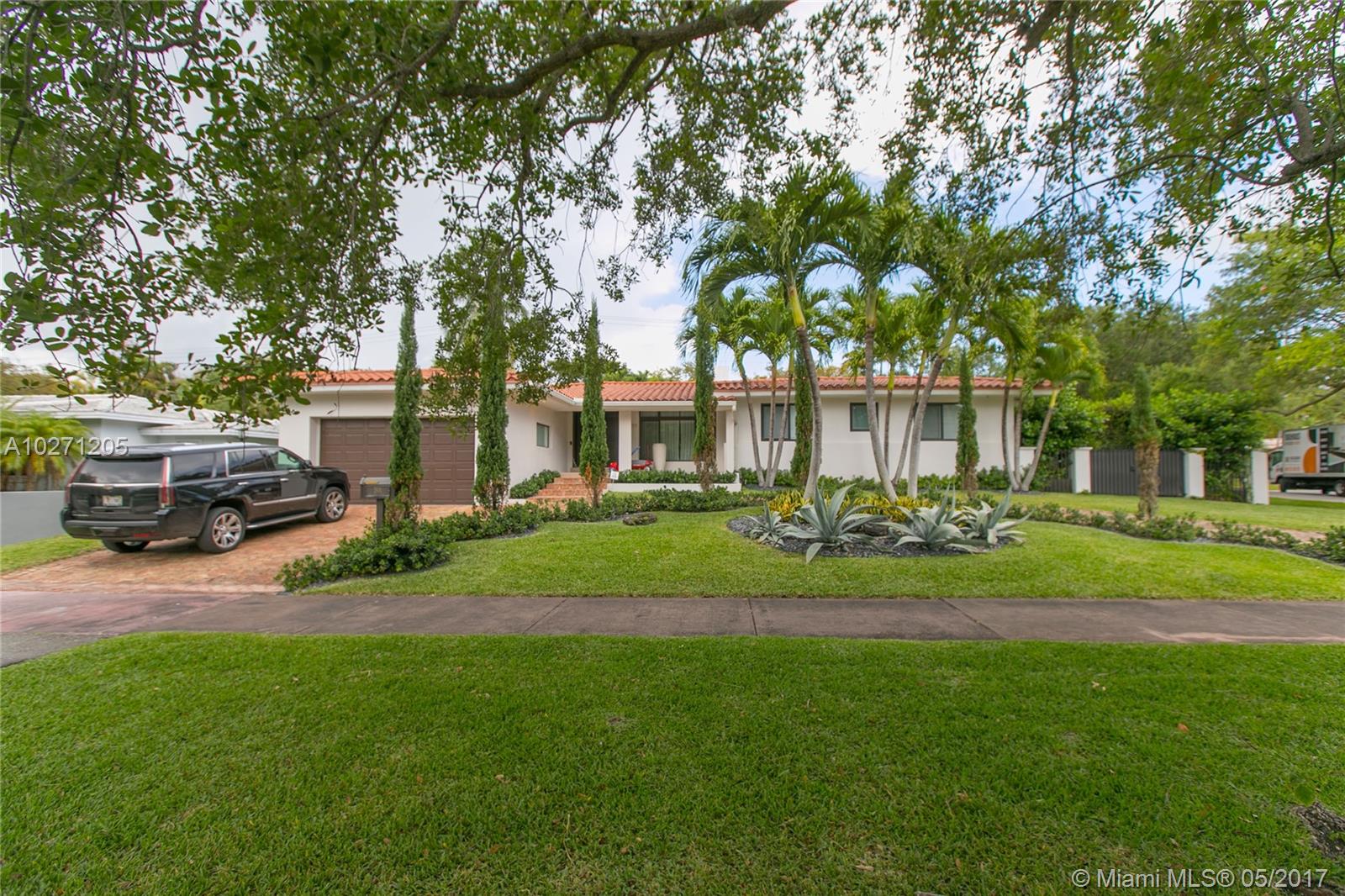 Coral Gables home with amazing curb appeal!!! Recently renovated 3 bedroom and 2 bathroom pool home w/ 2 car garage and designer finishes. The home sits on an 11,000 sq ft double corner lot. The home is over 3,000 square feet under air conditioning. Some of the homes incredible features are: brand new heated swimming pool with waterfall & grey marble/stone decking, new a/c, new impact windows & doors, designer custom window treatments, brand new designer kitchen with new premier stainless steel appliances & built in 150 bottle wine cellar, 13 camera video surveillance system (inside and out), stone walled fireplace, formal laundry room with new cabinetry, beautiful landscaping w/ large private clusia hedges, wood beamed ceilings, newly built closets & new septic tank. HD Video on this home
