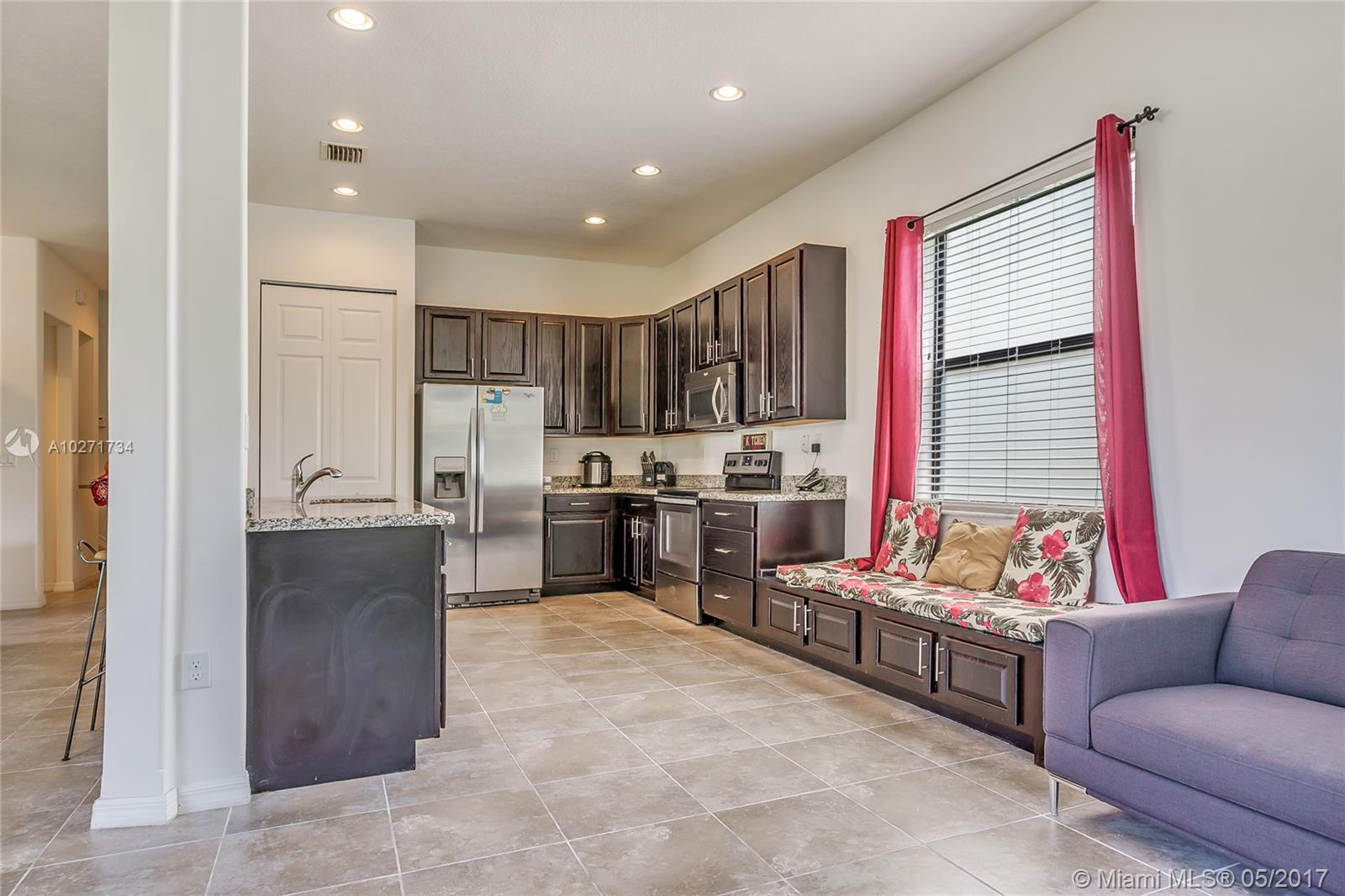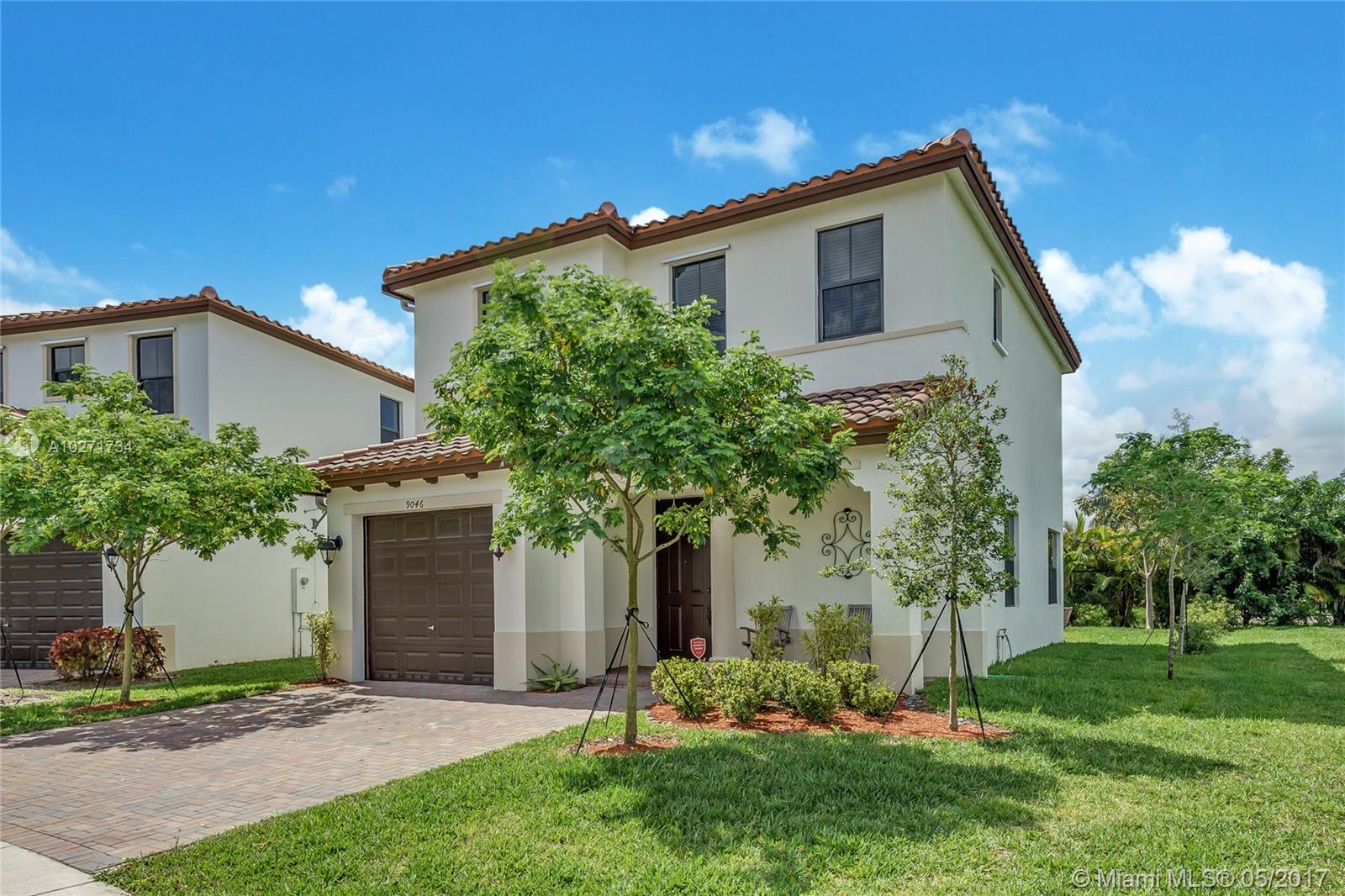 Beautiful 2-story Mediterranean-style home just built in 2015 in a private, gated community on a premium lot w/ a large empty grass area next door & no back neighbors. The house features a spacious, open-concept floorplan w/ tons of upgrades: 10 ft ceilings, lots of windows & natural light, espresso wood cabinetry, granite counters, s/s appliances, center island & cute, built-in sitting area + hardwood stairs, paved driveway, porch & back patio, garage & W/D. Master suite w/ double vanity, his/her's closets & large walk-in shower. Fantastic location w/ easy access to main roads (I95, Turnpike, Ives Dairy) & close to schools, shopping & dining. Gated community includes a pool/cabana, play area & 24h security all w/ a very low HOA fee! Tremendous value for a new owner or investment property.