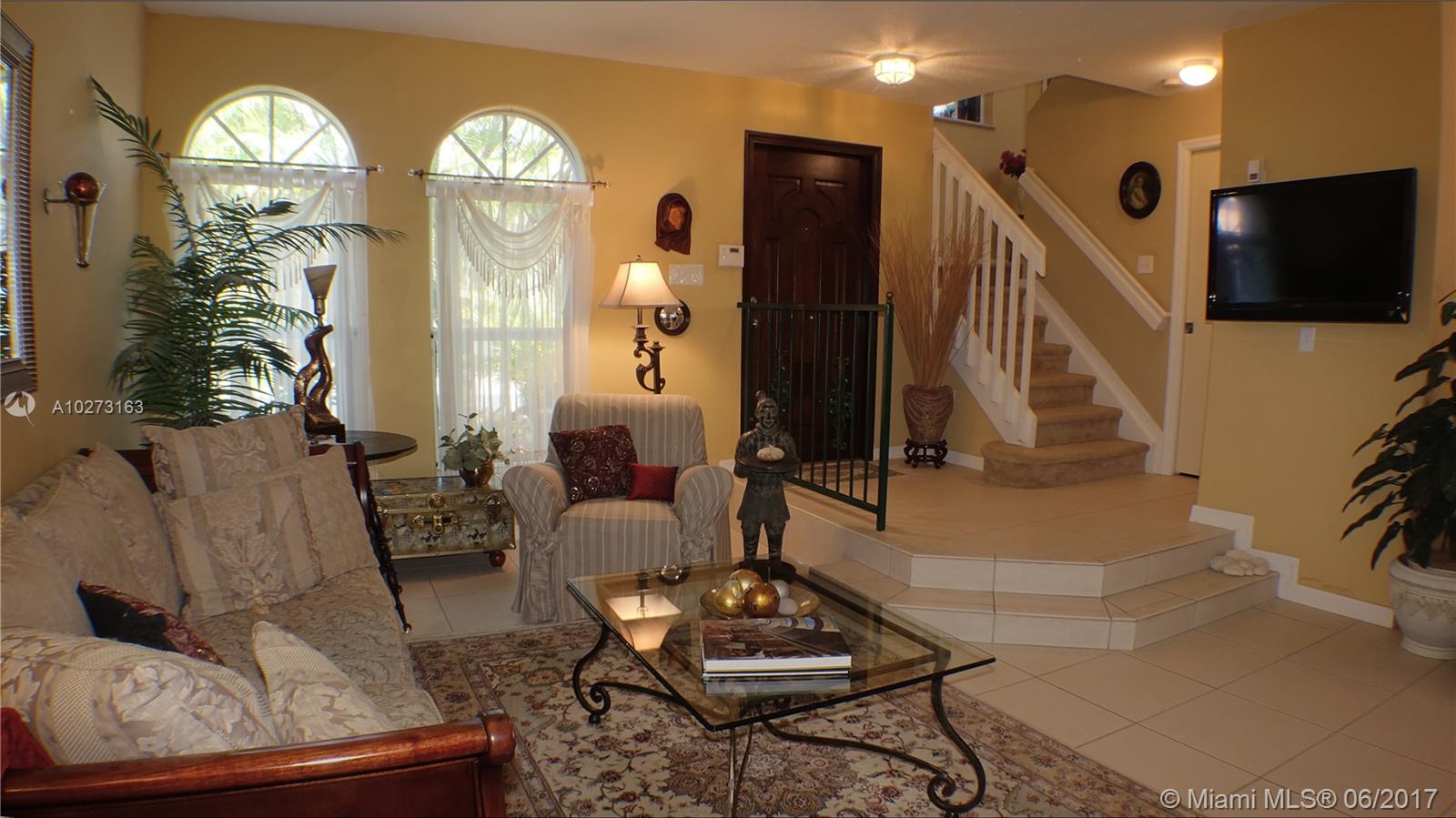 Beautiful 2-story home located at Piazza Vecchia. 3 bedrooms 2 1/2 bathrooms. Very low maintenance which also includes Internet, Basic cable and alarm monitoring. High ceilings, 2-car garage plus 2 additional parking spaces and hurricane shutters on all windows. Quiet Oasis in the middle of Doral. Excellent location close to major highways, Dolphin and International Malls and great schools.