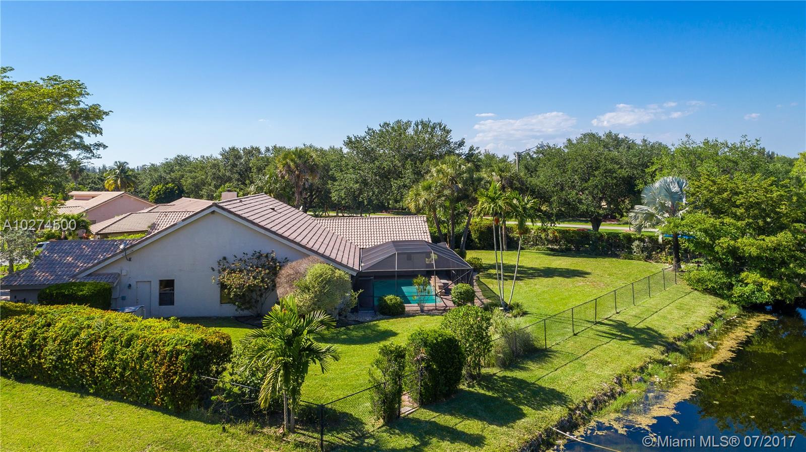 This is the ONE! Looking for someone to make this house a home, great for entertaining family and/or friends. Located in Pine Ridge, Coral Springs, on over 1/2 waterfront lot, this home is the envy of the neighborhood. This 4 bedroom 3-1/2 bathroom home, has open kitchen with counter seating, spacious & bright family room with fireplace, overlooking screened pool with fountain, summer kitchen, private fenced yard for the nature lover. Formal dining room, formal living room, and tropical atrium. A must see to truly appreciate. Walk to schools, shops, movies, and more.