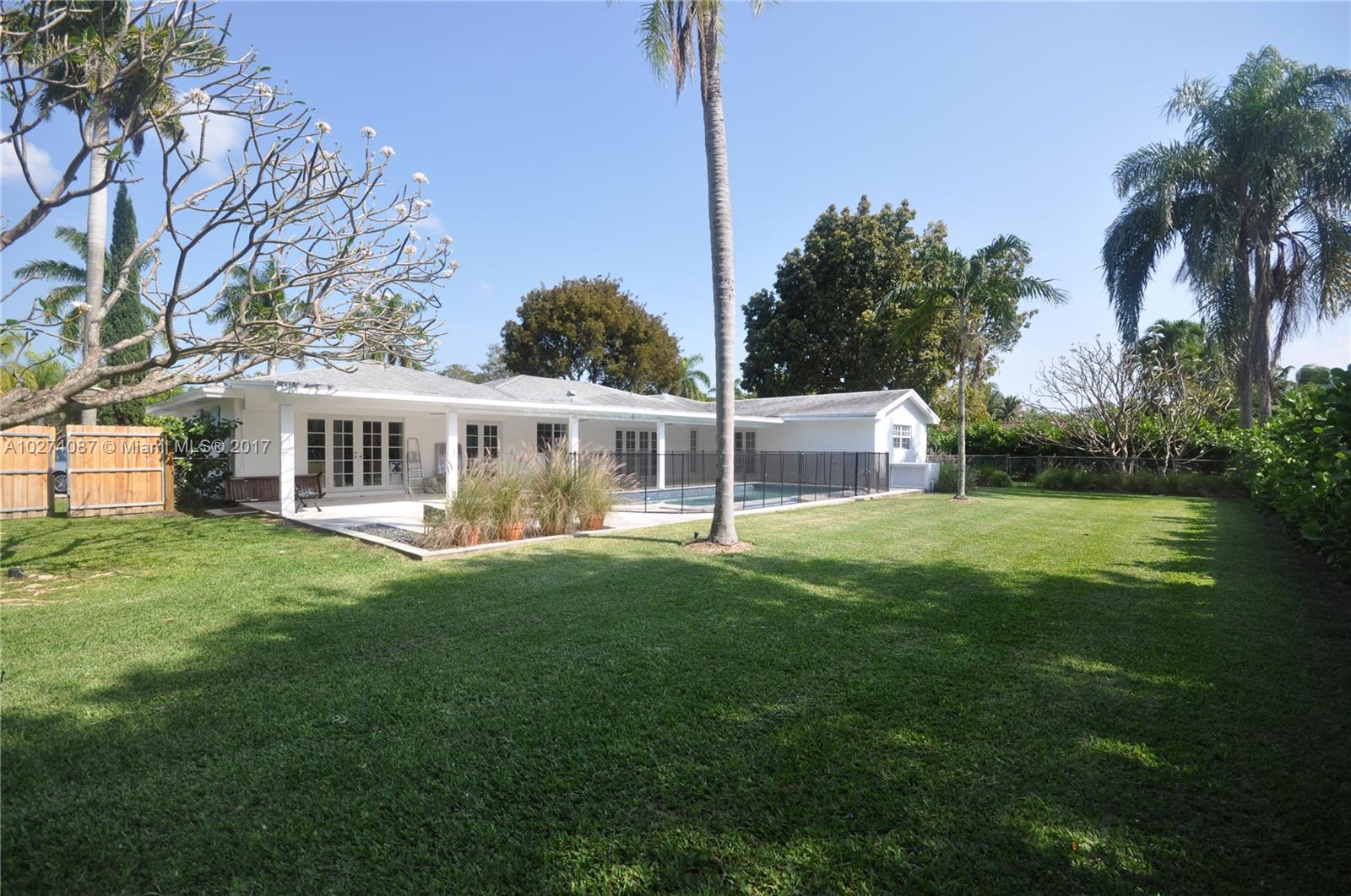 Pristine Pinecrest Elementary home. Full renovated 4/2.5 classic ranch with expanded master bedroom and nice floor plan with large living spaces. All bedrooms on one side, family room next to the kitchen. Spacious and pretty pool-patio-backyard area ideal for kids. Marble and wood floors, white kitchen w/SS appliances, impact glass throughout, 2-car garage & more.