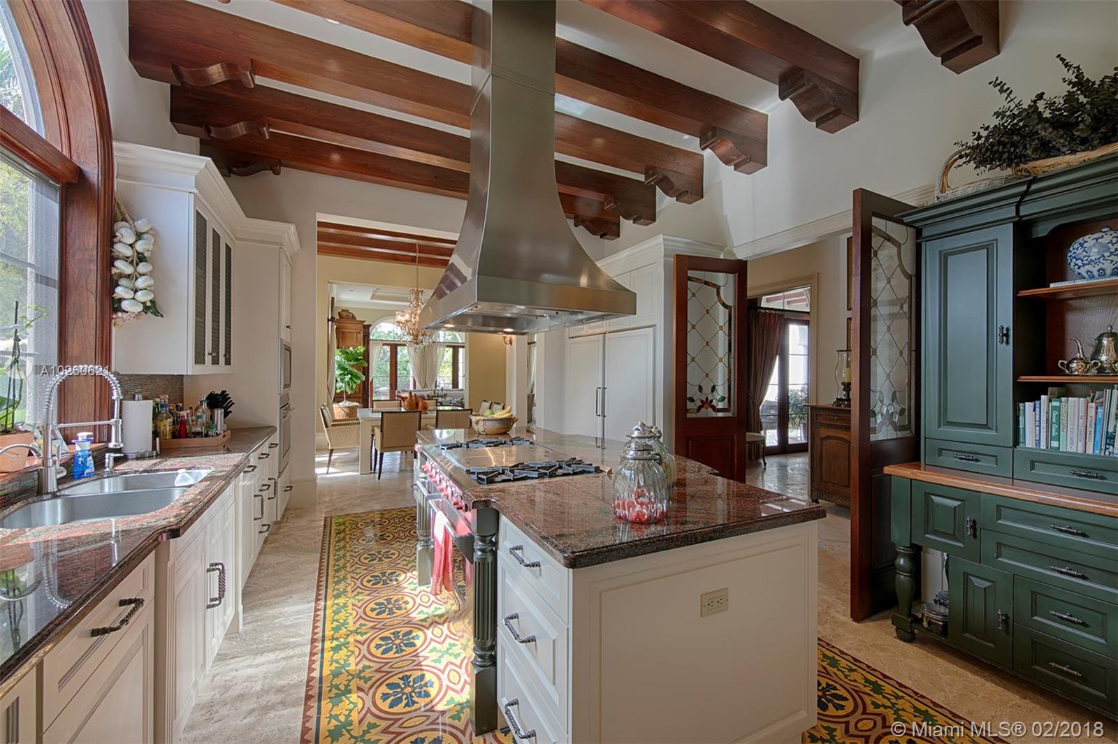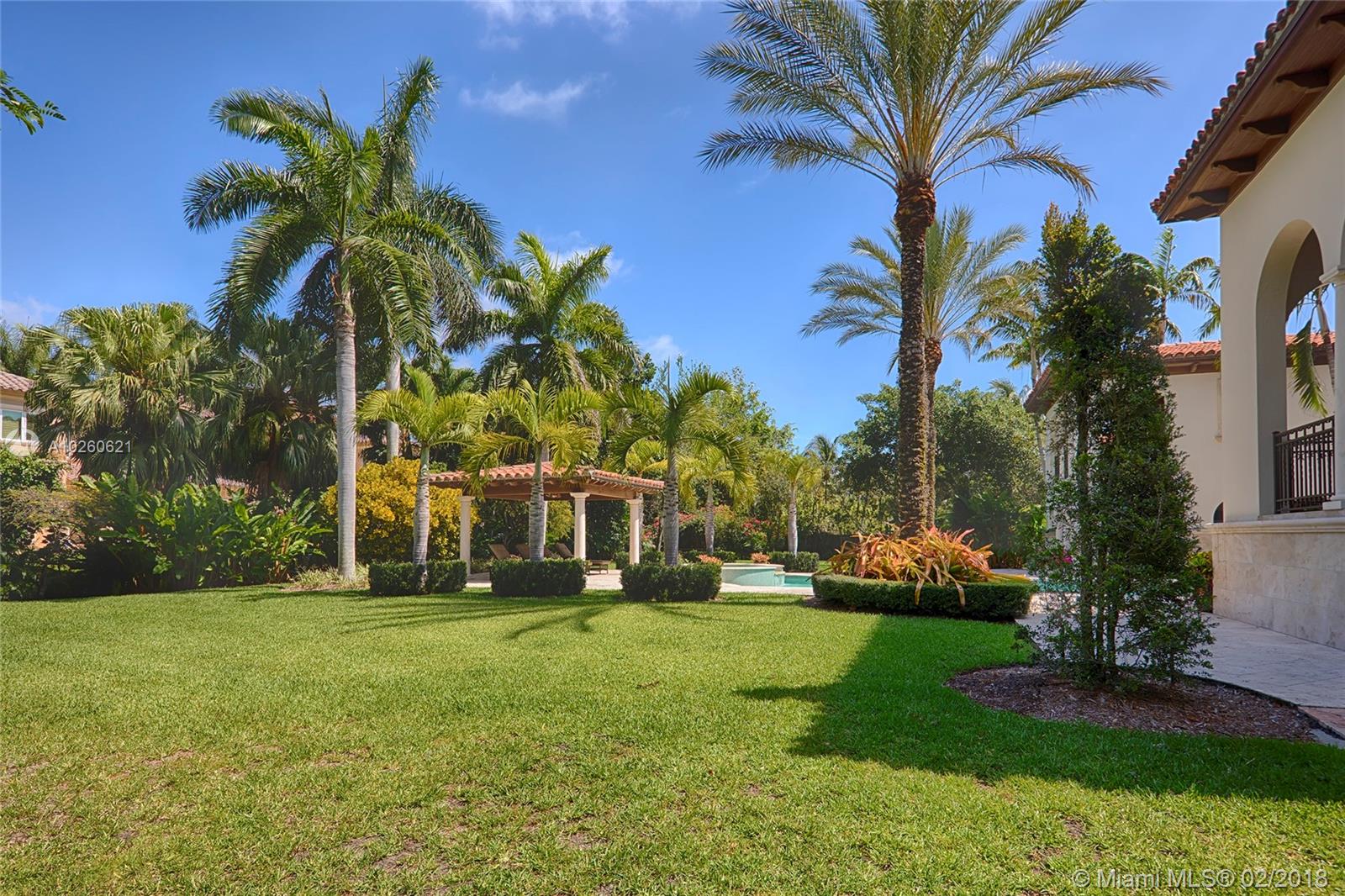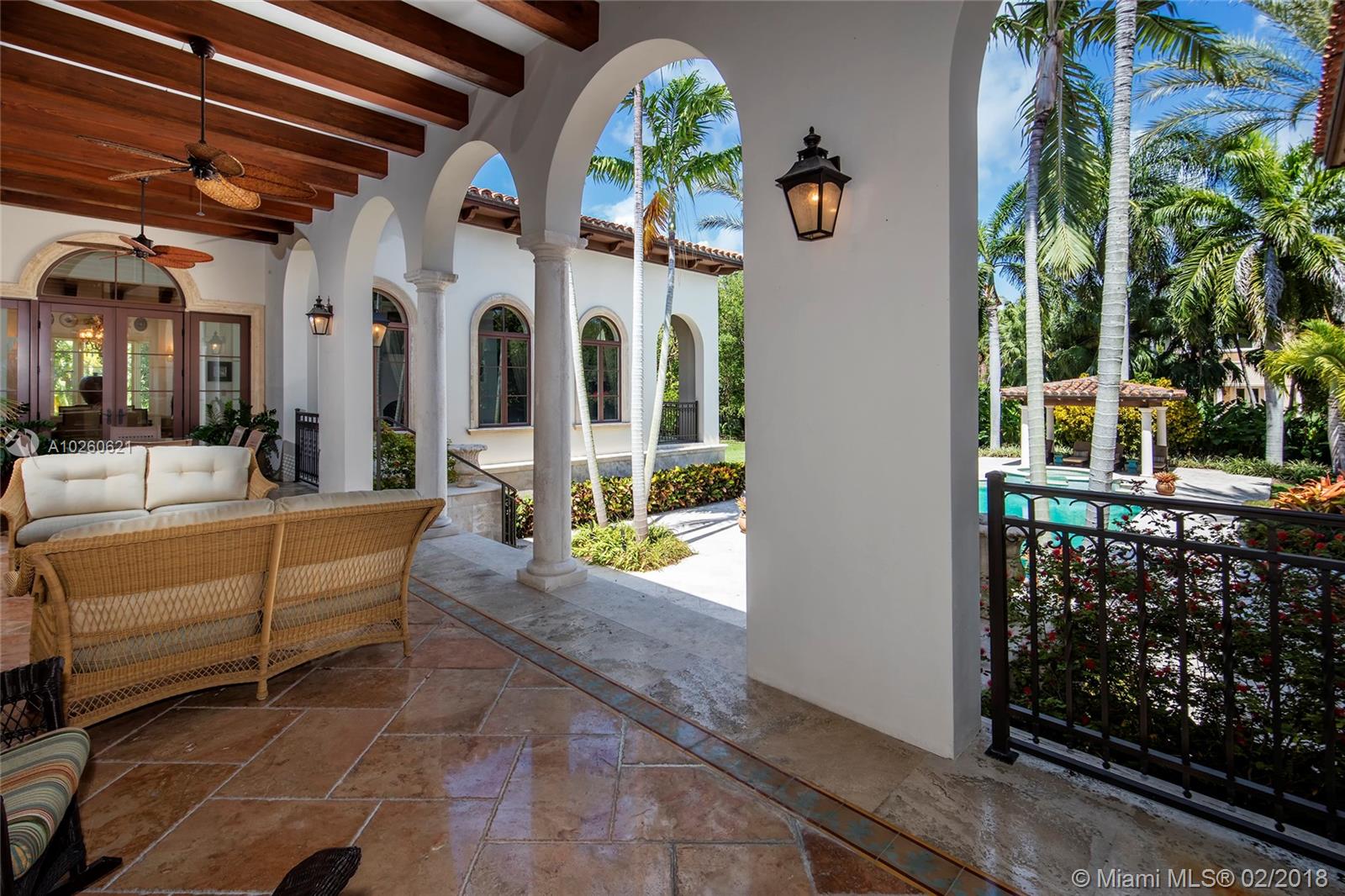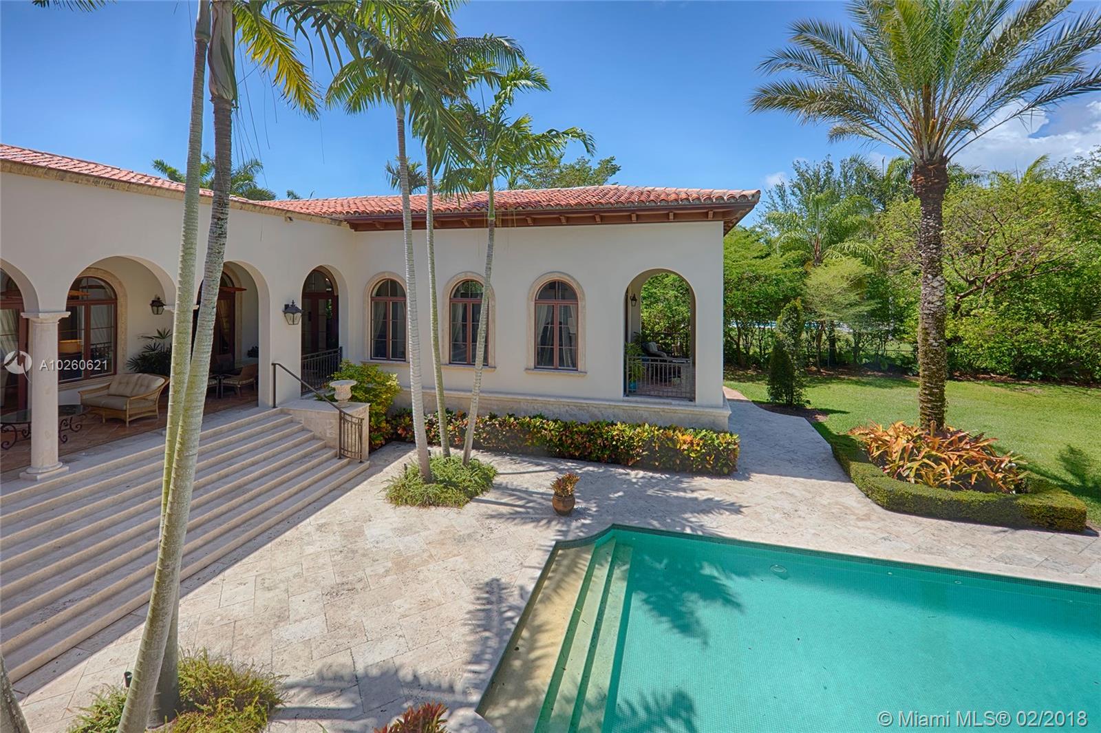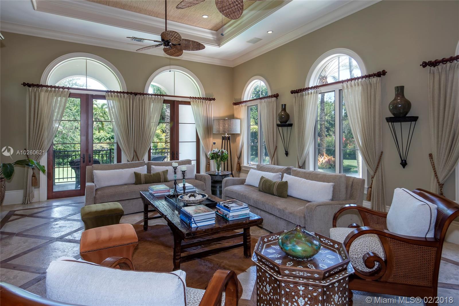 Stunning Mediterranean gem designed by Ramon Pacheco on gated beautifully landscaped 36,750 sf lot. Circular driveway,grand front entrance w/arched mahogany doors.Foyer,formal living & dining rm have high ceilings. Elegant custom finishes throughout:mahogany millwork, Roatan wood drs,built-ins,marble & wood flrs.The spacious kitchen has Sub Zero/Wolf appliances, large island,walk-in pantry. Breakfast area opens to family rm overlooking garden,pool area & covered terrace. Large sitting rm opening to master suite on a split level w/2 generous walk-ins, elegant new bathroom & private covered terr.Bedrooms wing has 3 addl en-suites.The pool deck & large yard feature a covered summer kitchen,built-in bar,full cabana bath.Separate staff quarters.SqFt is ADJ area as per owner.