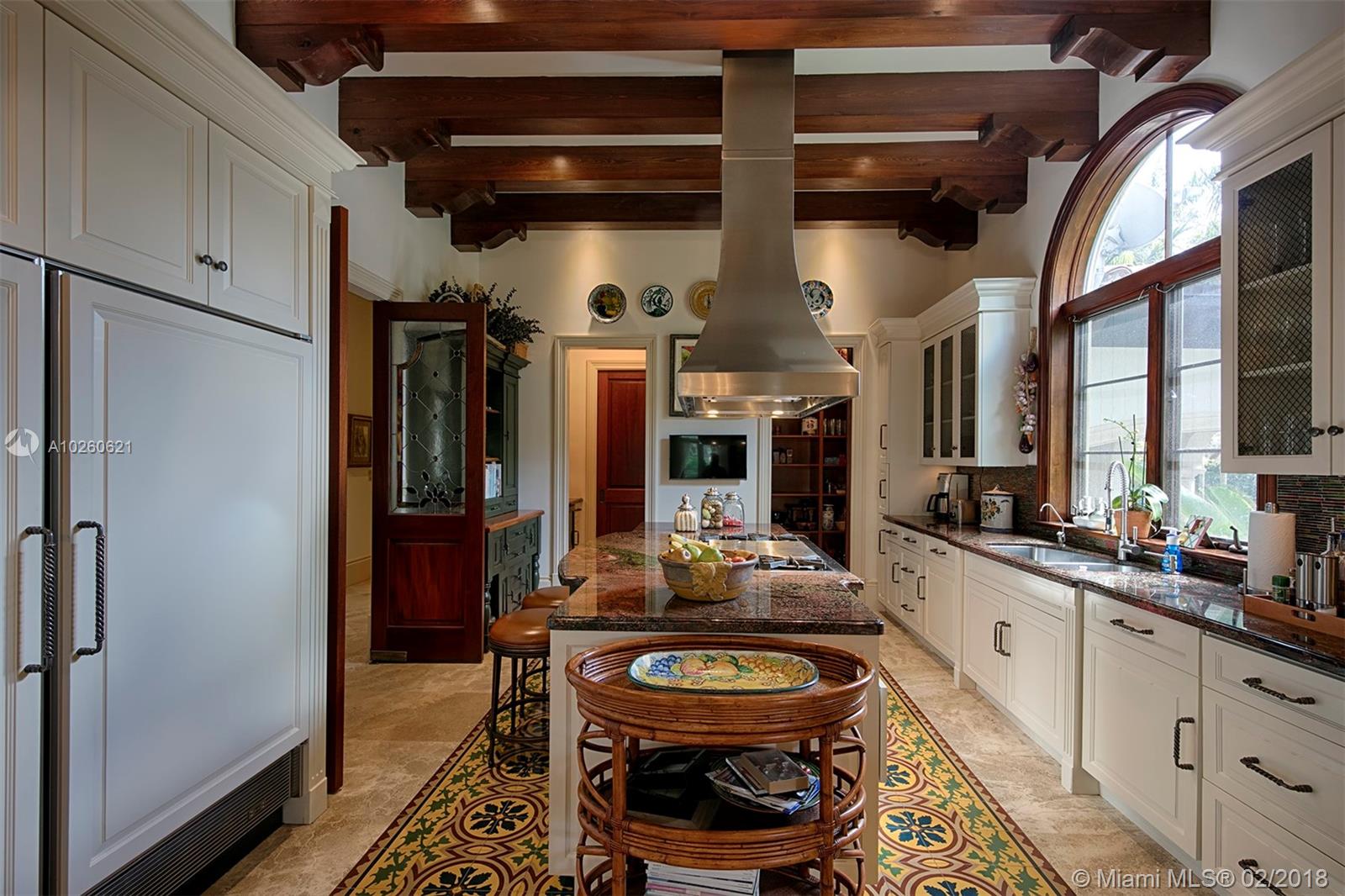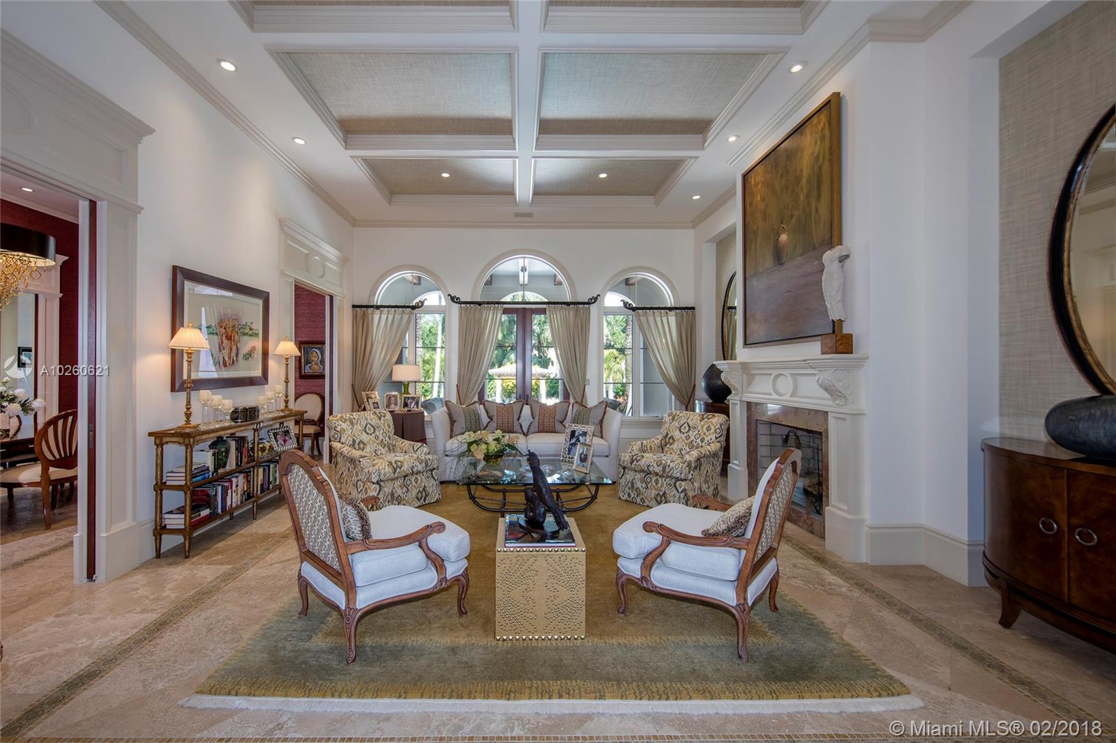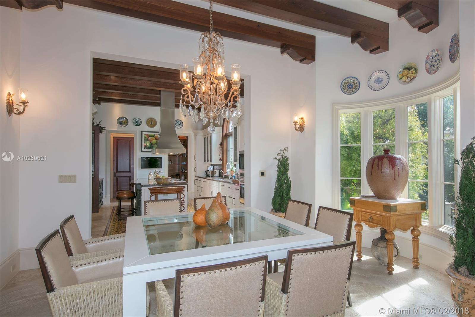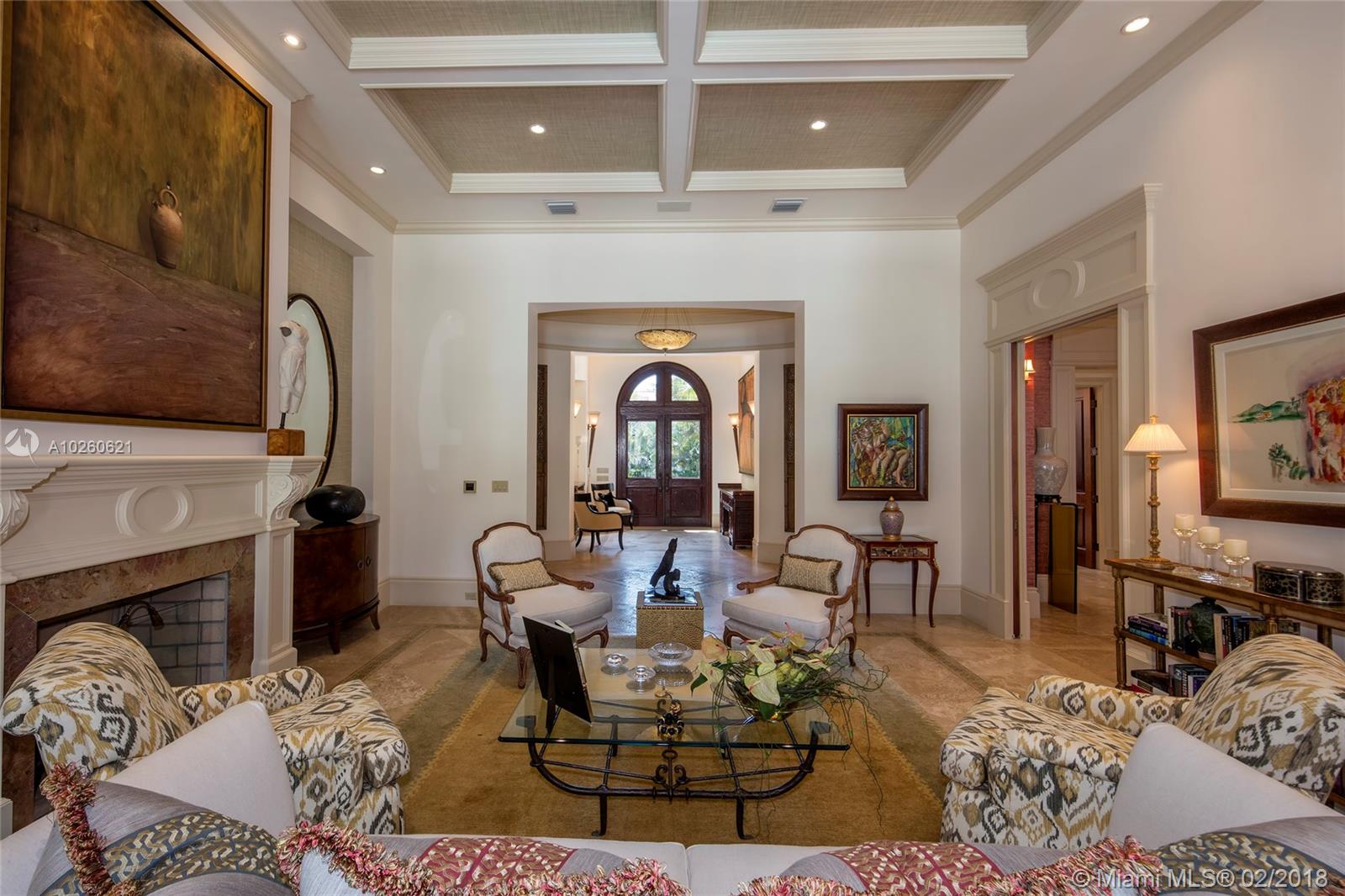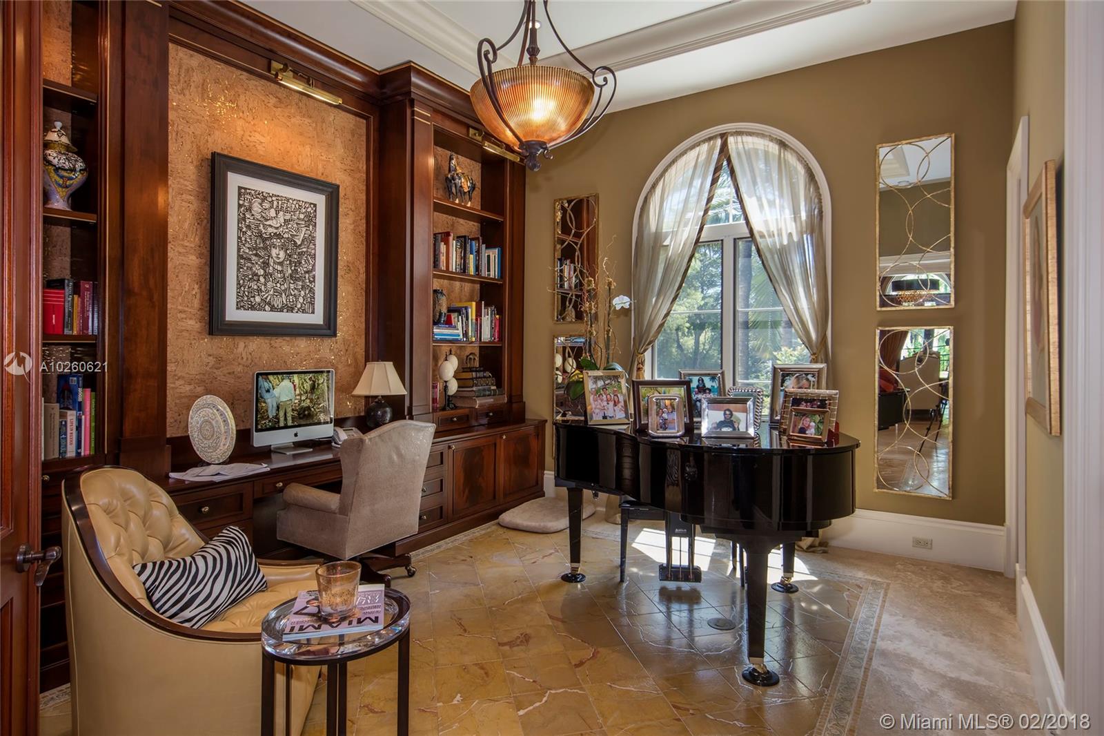 Stunning Mediterranean gem designed by Ramon Pacheco on gated beautifully landscaped 36,750 sf lot. Circular driveway,grand front entrance w/arched mahogany doors.Foyer,formal living & dining rm have high ceilings. Elegant custom finishes throughout:mahogany millwork, Roatan wood drs,built-ins,marble & wood flrs.The spacious kitchen has Sub Zero/Wolf appliances, large island,walk-in pantry. Breakfast area opens to family rm overlooking garden,pool area & covered terrace. Large sitting rm opening to master suite on a split level w/2 generous walk-ins, elegant new bathroom & private covered terr.Bedrooms wing has 3 addl en-suites.The pool deck & large yard feature a covered summer kitchen,built-in bar,full cabana bath.Separate staff quarters.SqFt is ADJ area as per owner.