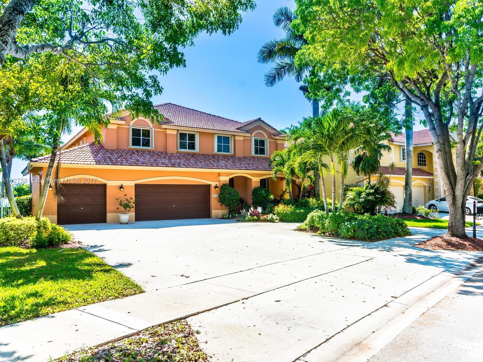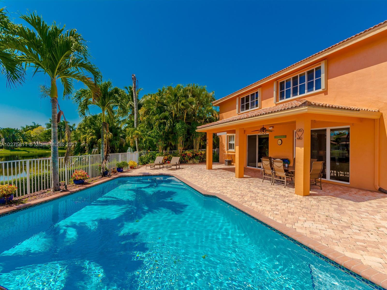 Fabulous Glendale model in sought after Heron Ridges features 5 BR plus office, 3 BA and 3CG on private, lakefront lot. This beautifully maintained home offers a spacious & functional floor plan, updated chef’s kitchen, tile throughout 1st floor living areas and Brazilian cherry hardwood in bedrooms and stairs. Wonderful pool and patio area with great lake views; perfect for entertaining! Accordion shutters, security system and oversized circular driveway that fits over 8 vehicles. Enjoy everything the city of Weston offers including A rated schools and library within walking distance, parks, fine restaurants all with easy access to highways and shopping, A Must See!