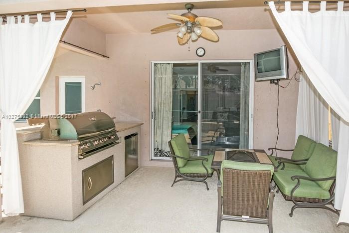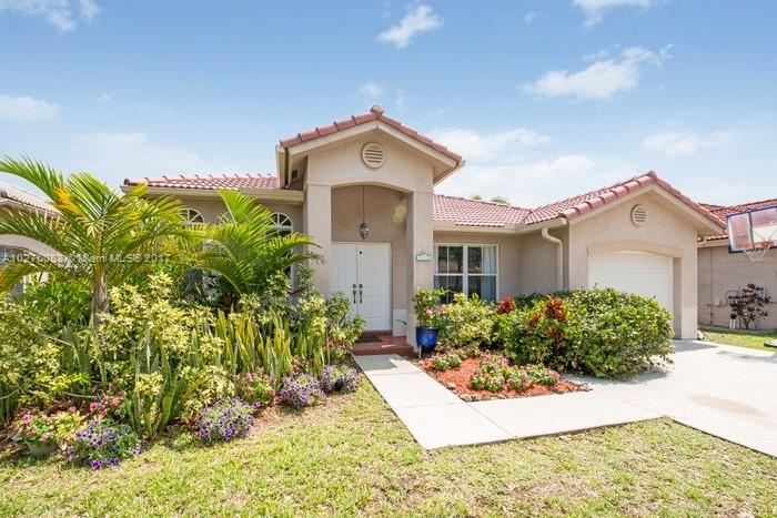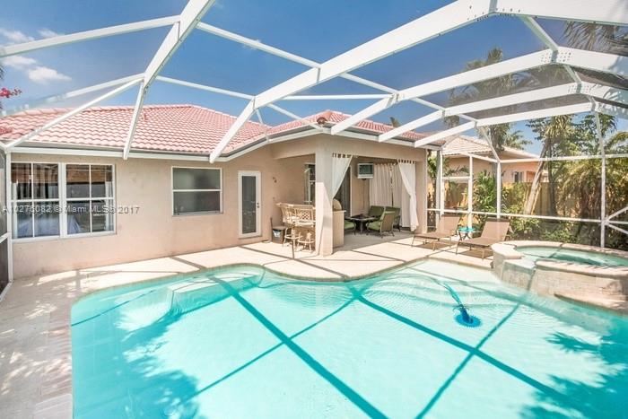 Beautiful 3/2/1 w/pool home in 24 hour manned guard gated community of Poinciana Parc. The stunning pool and waterfall spa are both heated salt water in upgraded larger backyard. Gorgeous lushly landscaped backyard is both fully fenced for privacy and screened in and features a covered patio, an outdoor kitchen perfect for entertaining and even an outdoor shower. Most of the household appliances are high end Bosch stainless steel. Large master bedroom has 2 closets, one is a walk in. Hurricane shutters are included. Excellent Davie schools. Located minutes from Sawgrass Mall shopping, major highways and airport.