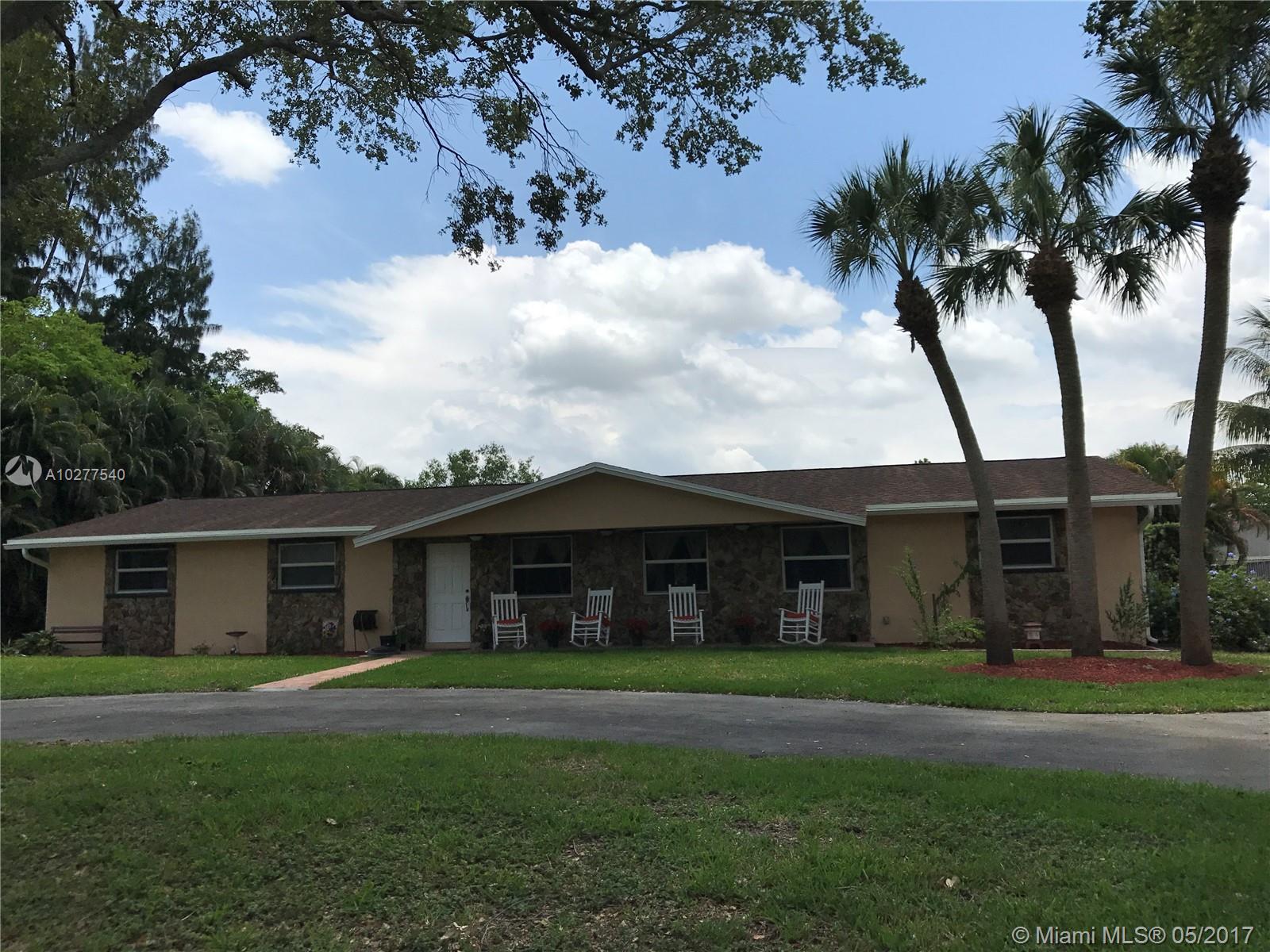 Beautiful Davie Ranch Home, remodeled throughout, modern kitchen, appliances, spacious bedrooms and a huge master with his and hers closets and sitting area. Large covered terrace can be easily enclosed and is pre-plumbed to add an outdoor kitchen. Large circular driveway with gated entrances. Huge detached ~1,000 sq ft garage. Property is almost 1 acre, all fenced, very private and no neighbors to the rear. Hurricane impact windows/doors garage & house. Centrally located close to Weston/schools/shopping.