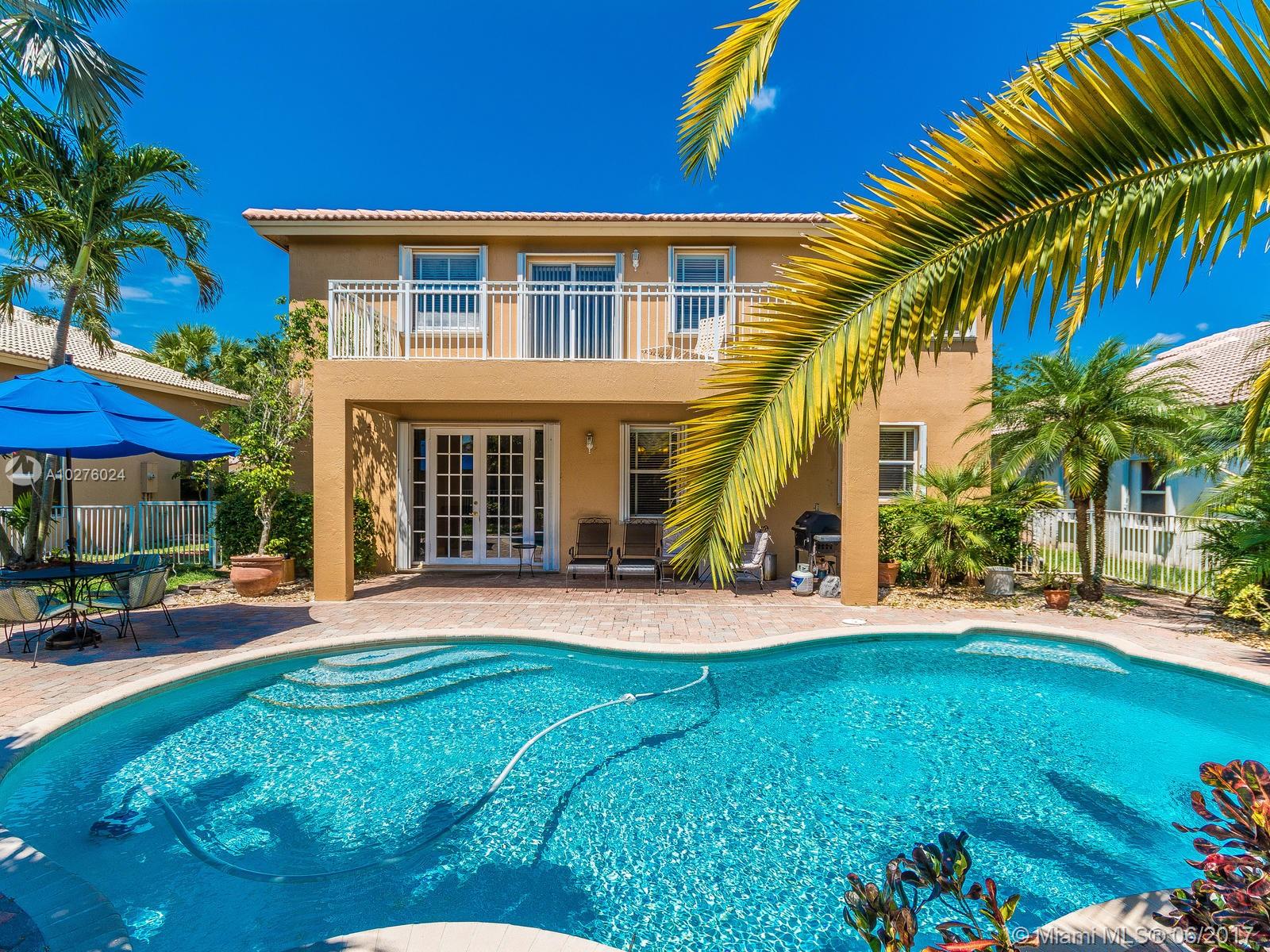 Tropical Oasis Pool Home - over 2,900 sq/ft -Resort community -Designer harwood floors, crown molding, granite counters, upgraded 42 inch cabinets, upgraded stainless steel appliances, upgraded a/c unit (inside and out), surround sound speakers, rod iron railing staircase, recessed lights thru-out, french doors off family rm to pool area. Covered patio with full size tiled balcony off master suite. (Master features large sitting rm-Builder offered as 5th bdrm). Excellent walk-in closets. Spacious 3 car garage. HOA includes (water/sprinklers syst. & maintenance, grass cutting, alarm monitoring, guard gated entry, 5 STAR Hyatt-Like Resort clubhouse - 3 pools, 4 tennis, racquet court, aerobics and fitness center, beach volleyball, soccer and full size basketball. Basic cable is also included)
