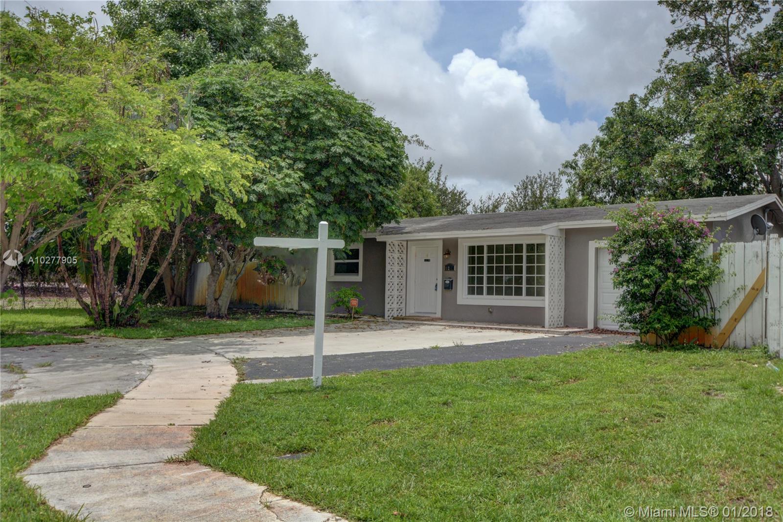 Amazing opportunity in Hollywood! This beautifully renovated 3/2 Single-Family Home is located at the end of a cul-de-sac on a great street in the Driftwood Plaza subdivision. Huge impact window and French doors open to beautiful back porch with numerous fruit trees (mango and avocado). Fenced-in yard, Gas appliances and brand new impact windows with high-efficiency AC unit, keeping power bill very low. Stunning porcelain floors throughout the property. new Sprinkler System installed, new Septic Tank installed, upgraded electrical system, 1-car garage. Perfect for a family and easy to show! Centrally located, minutes from Memorial Hospital, Hard Rock Hotel & Casino, Fort Lauderdale International Airport, BB&T Center, Sawgrass Mills Shopping center, and the Beaches.