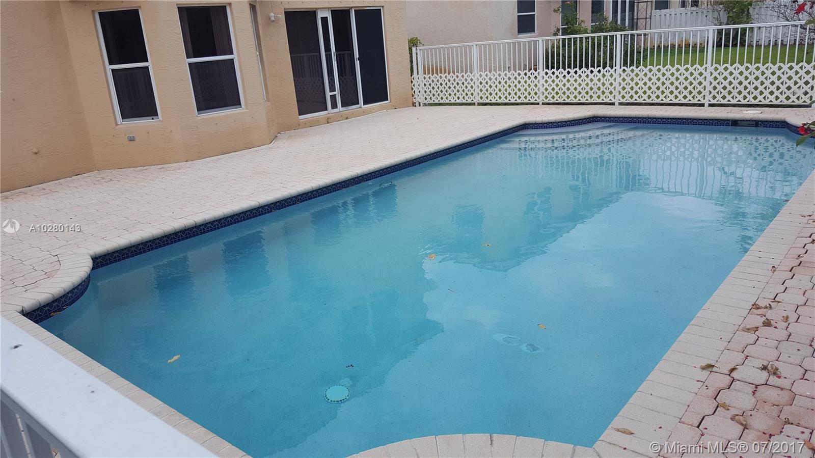 NICE TWO STORY HOME 5 BEDROOMS 3 FULL BATHROOMS, ONE BEDROOM AND FULL BATHROOM IN FIRST FLOOR, FENCED IN PRIVATE POOL, LARGE FAMILY ROOM, BIG KITCHEN GRANITE COUNTER TOP IN KITCHEN, HIGH CEILINGS, CHECK OUT THE HUGE MASTERBEDROOM AND MASTERBATHROOM WITH ROMAN TUB, THERE IS A LARGE DEN ON SECOND FLOOR INDEPENDENT THAT CAN BE USE AS A PLAY ROOM OR STUDIO, SECURED COMMUNITY WITH 24 HOURS GUARD AT GATE, VERY QUIET AND RESIDENTIAL AREA, ALL OFFERS MUST BE PRESENTED IN A FARBAR ASIS CONTRACT WITH PROOF OF FUNDS AND OR APPROVAL LETTER WITH DU FINDINGS SOLD AS-IS
