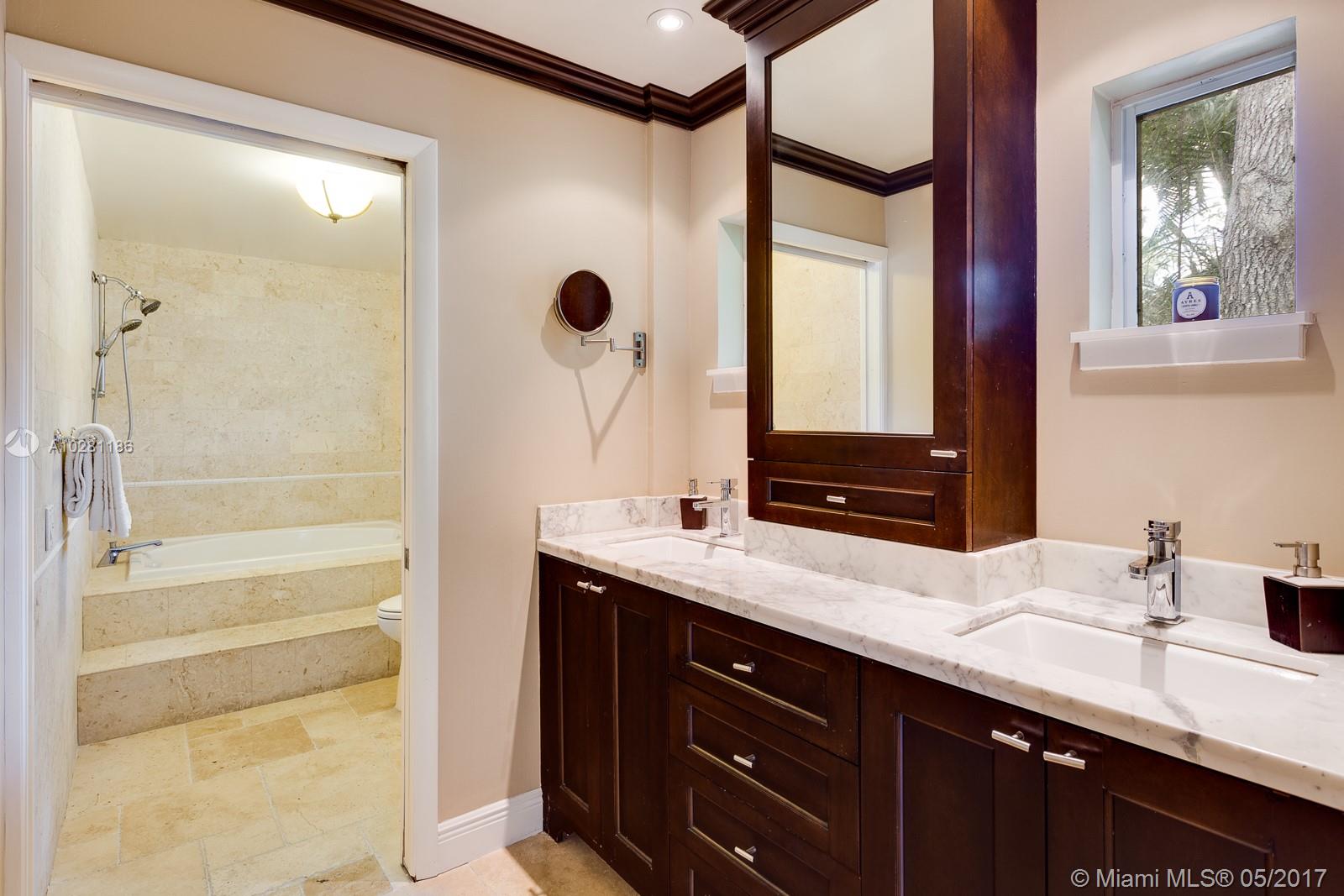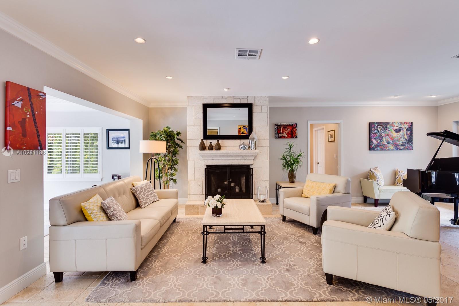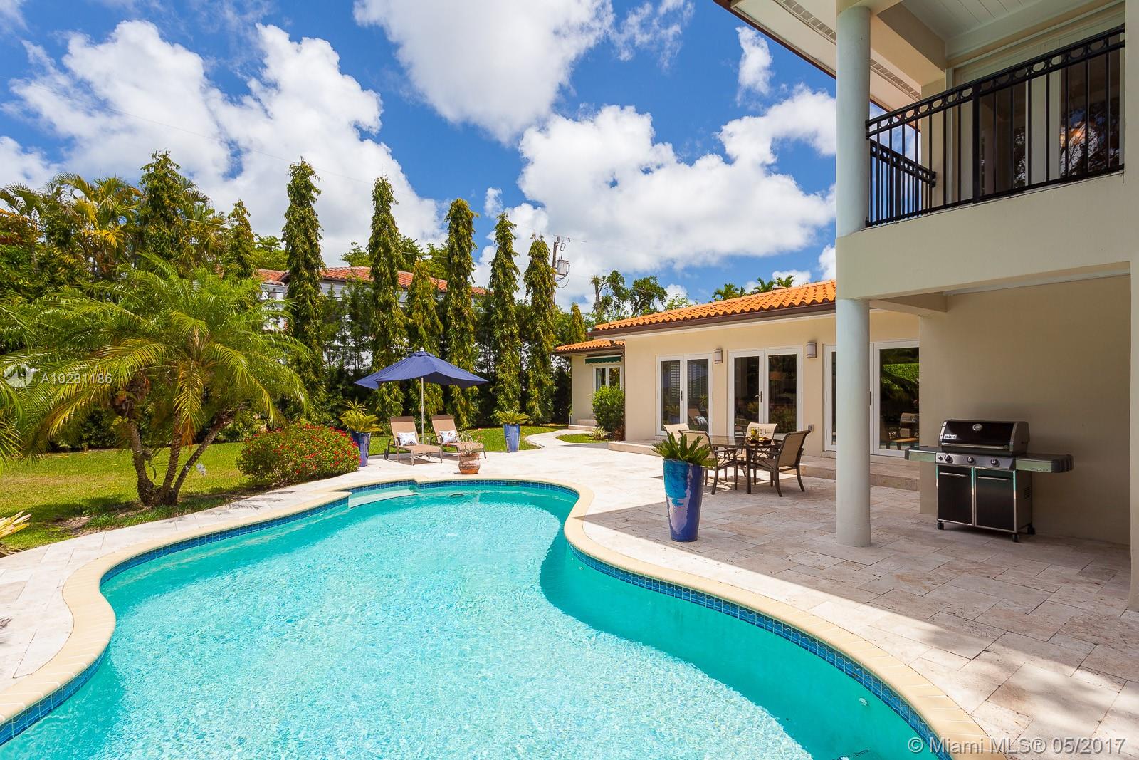 Live in Coral Gables famed Platinum Triangle! This gorgeous, updated 6-bedroom home (Master + 1BD ensuite upstairs & 4 BD/3BA down), features a stunning eat-in kitchen w/ butlers pantry, living dining & family rooms that open to an inviting pool & garden (13,747 sq ft lot), built-ins, ample closets, laundry room, stone & hardwood floors & impact glass & shutters. Truly a treasure, this home will be the center for many happy gatherings with family & friends. A Very Special home.