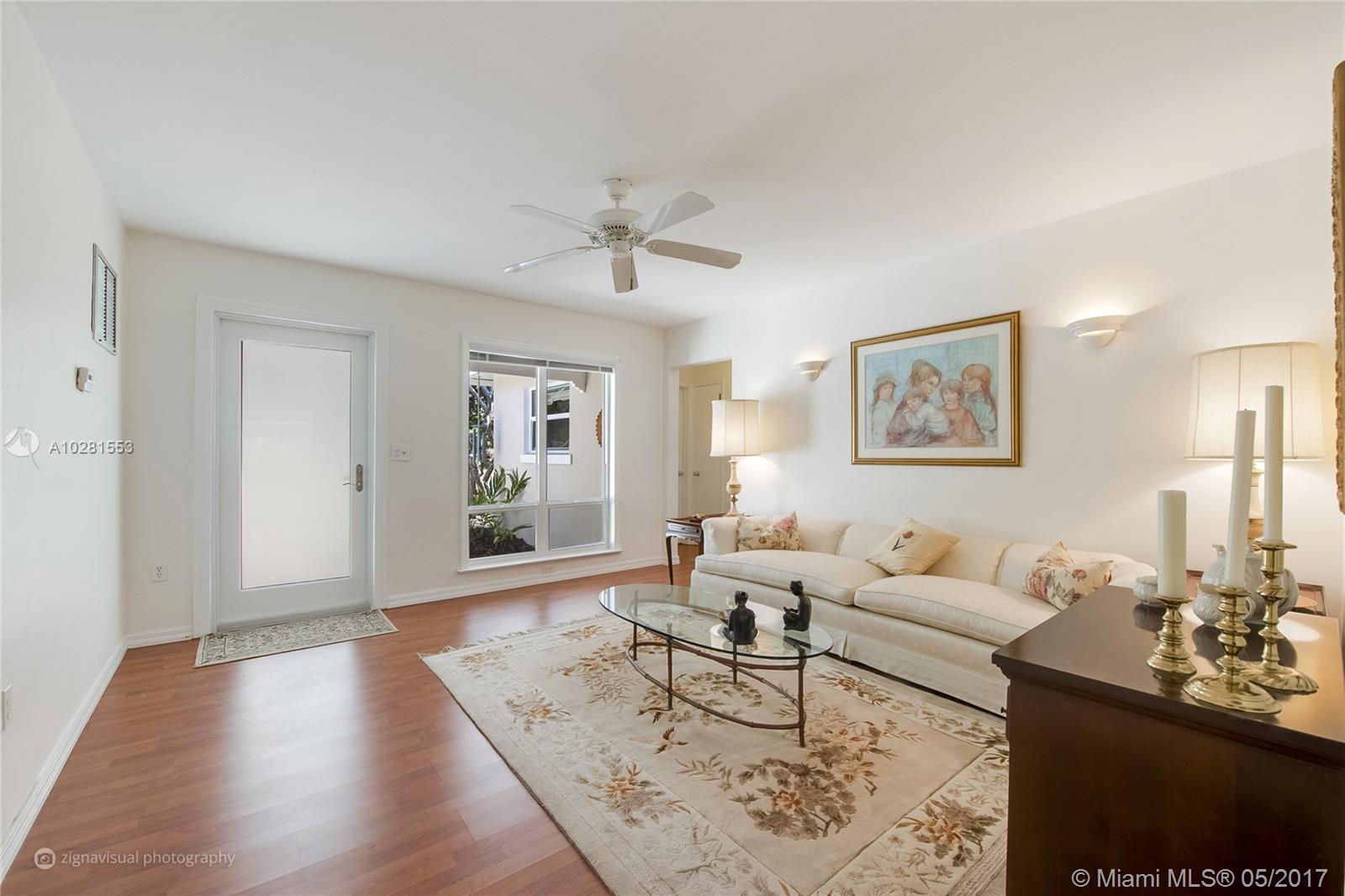 Light & bright, pristine home on elevated lot with brick driveway and backyard brick patio surrounded by privacy hedge and fence. New 2011 impact windows & doors. Kitchen 11x11 open to 18x13 family room & dining area. New 2014 central A/C. Painted inside 2017 & outside in 2014. Master has 3 closets. Laminate wood floors in kitchen, living & family rooms. Limited access to quiet street only 1 block long. Walk to Merrick Park, 1 mile to UM & Doctor’s Hospital and 1 mile to Miracle Mile.