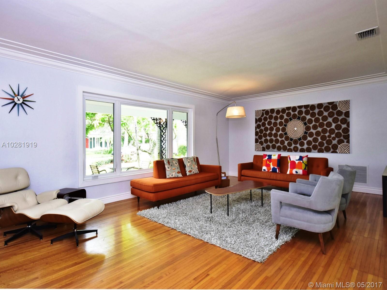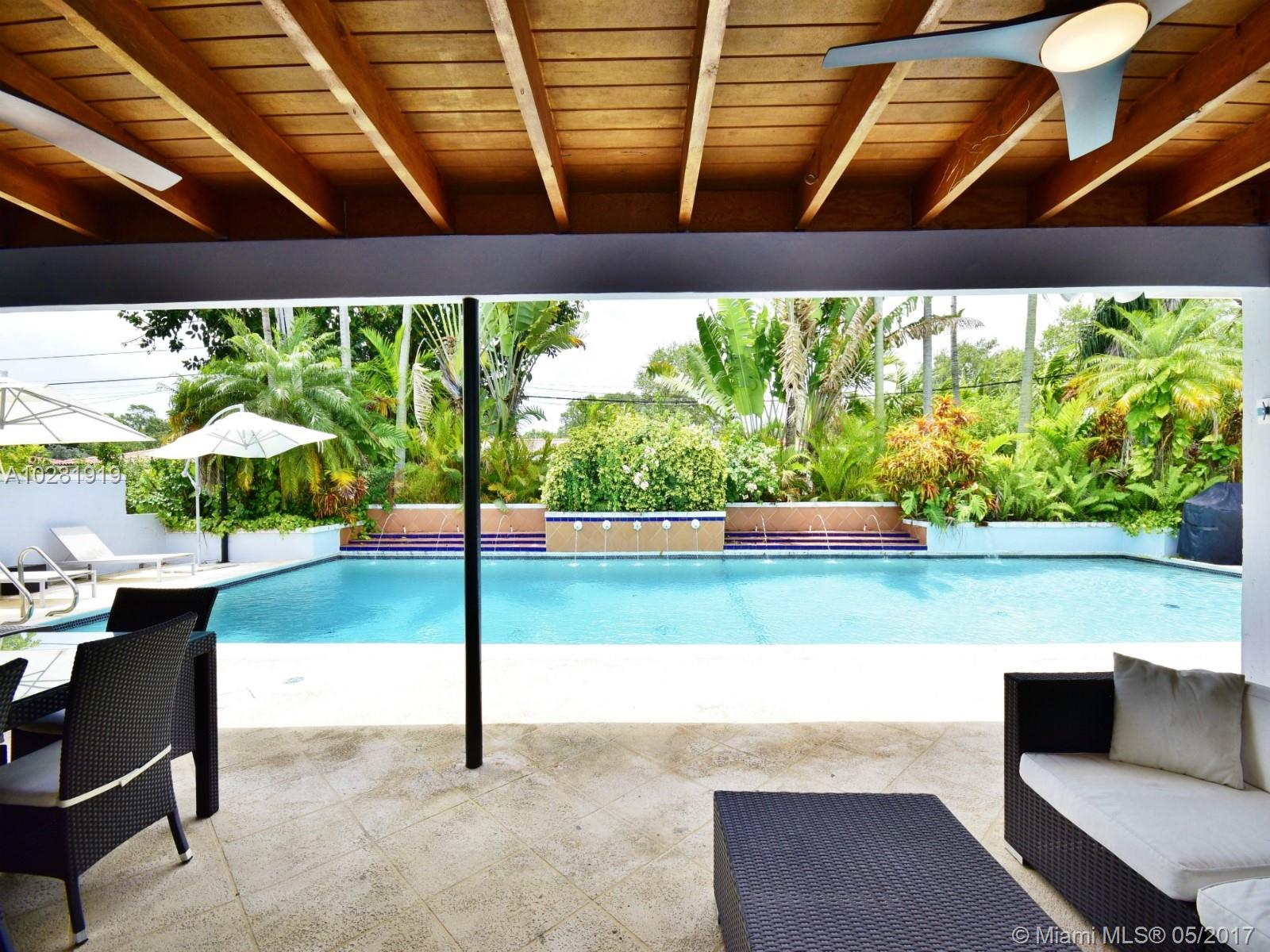 EXQUISITE & FABULOUS 1950'S MIMO STYLE RANCH on a 15,350 SF lot in Miami Shores. THIS SPACIOUS 4,200+ SQFT MIDCENTURY MODERN MASTERPIECE has been beautifully remodeled & features: 5 BD/4.5 BA, high ceilings, wood & terrazzo floors, impact windows & 2 car garage. Gorgeous light filled open living spaces, huge & open eat-it kitchen w/ new appliances, new roof & more! Enjoy the homes private & expansive outdoor living areas,covered patio & magnificent resort style pool surrounded by tropical landscaping.