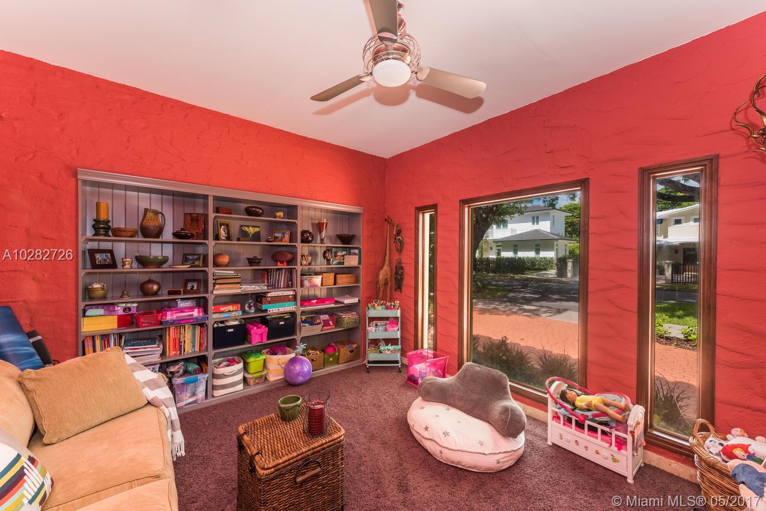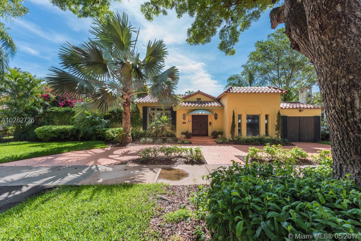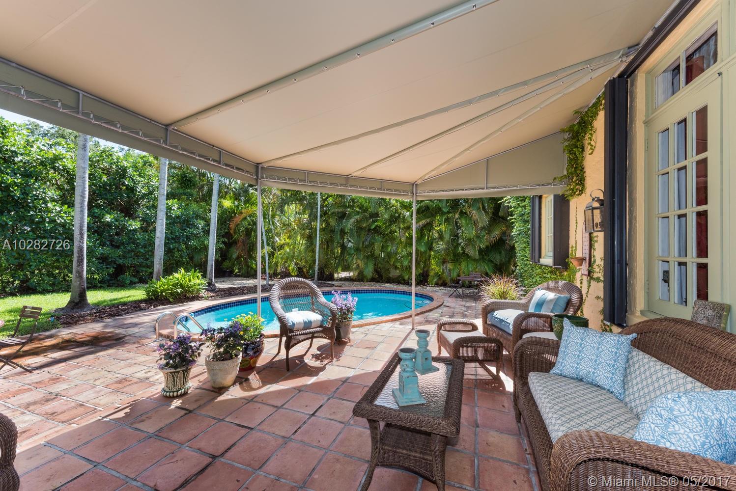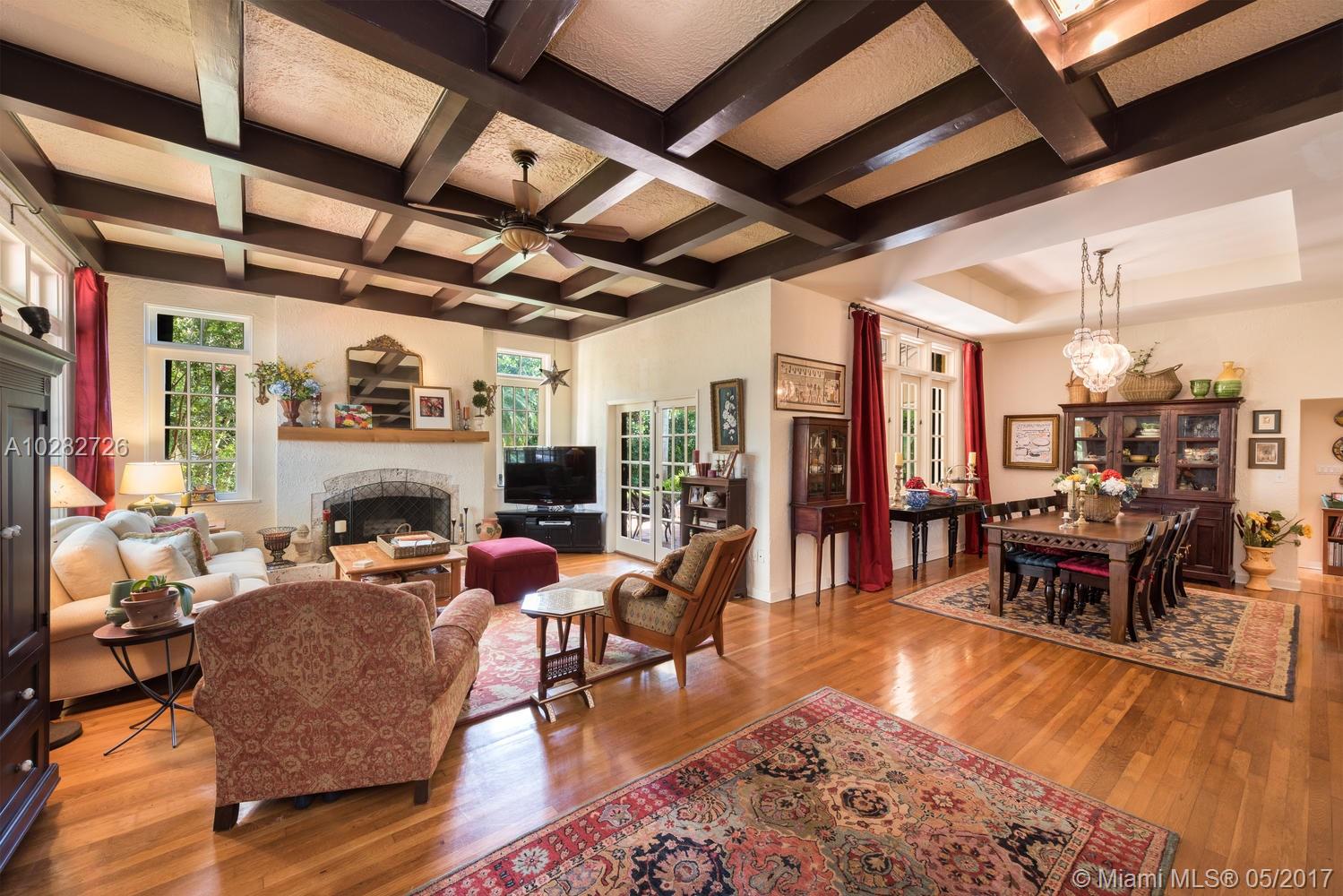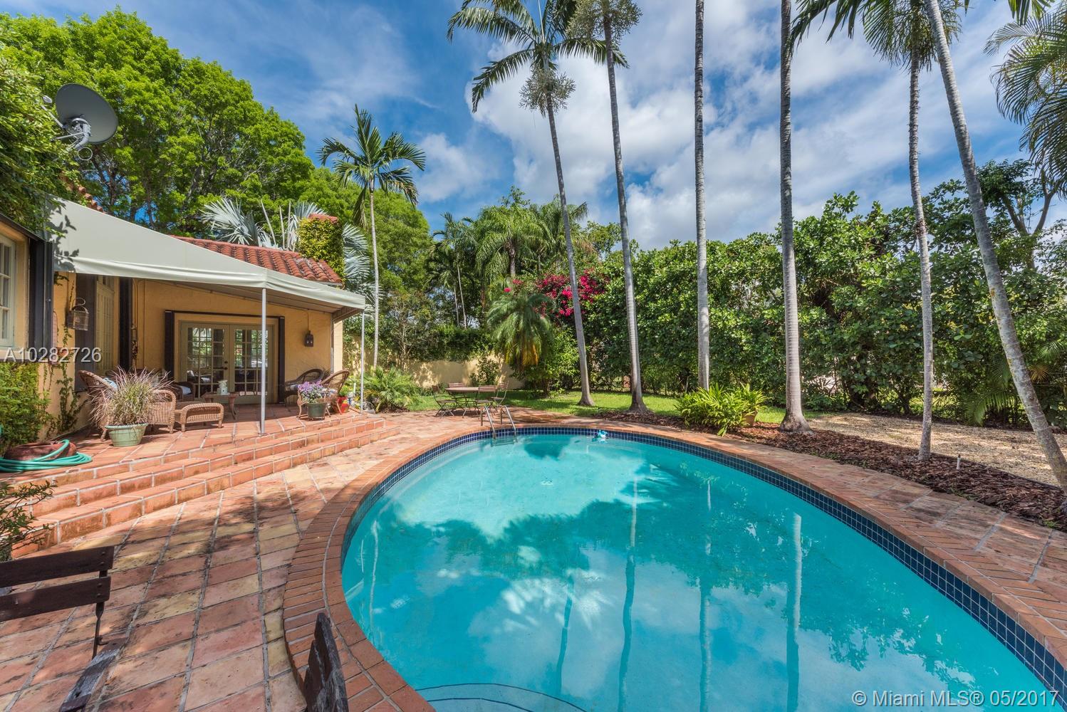 Delightful Old Spanish pool home ideally located just a stone's throw from Cocoplum Circle on a coveted, tree-lined, South Gables street. Fabulous great room with volume ceilings opens up to large dining area and looks out to beautiful pool and patio. Unique double lot provides for an ample yard and lots of room to entertain. Spacious master suite with a private patio & large closets. Beautifully remodeled bath & kitchen, large family room/den & stunning original windows provide lots of natural light.