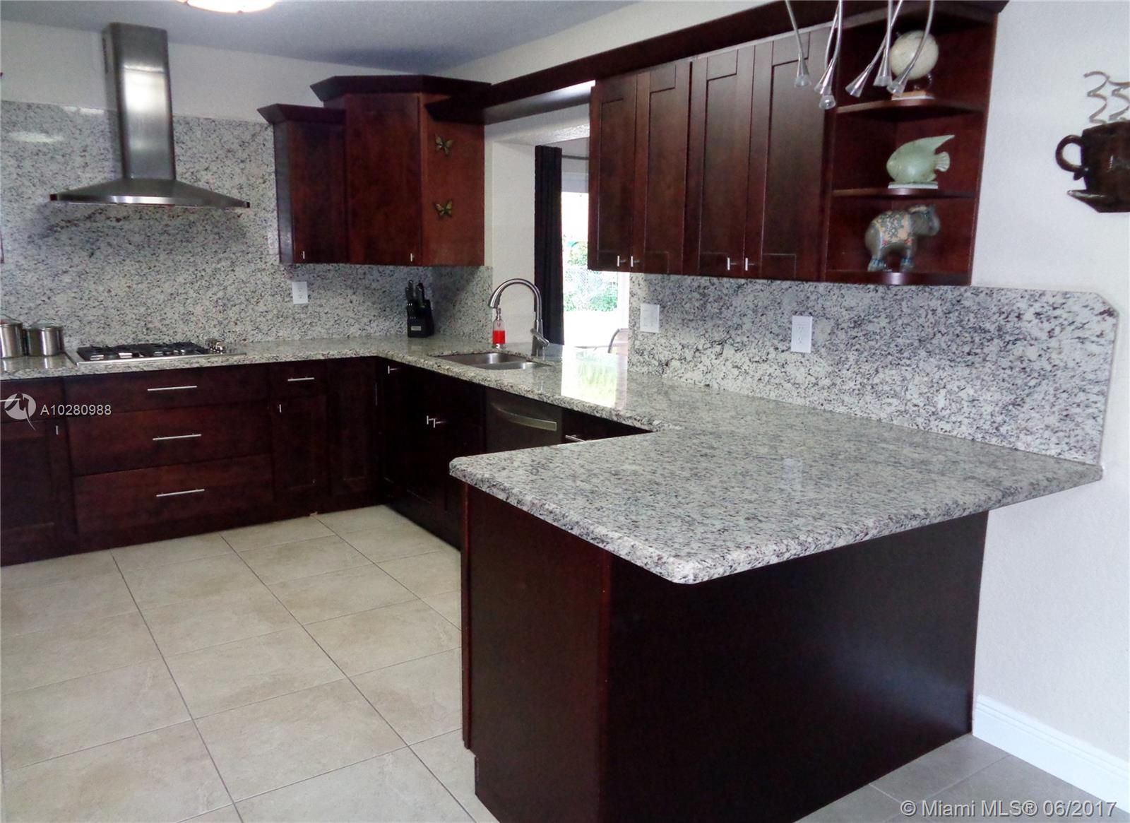 Completely remodeled 4/2-WATER-POOL-1.5 CAR GAR-New redesigned kitchen cabinetry, granite counter tops, SS appliances. Cabana & Master bathrooms feature 24X12 tile, matching vanities/granite tops, new doors, baseboards, hardware etc. One of the largest lots in Pembroke Lakes (15K+ SQ-FT). Very Private large landscaped yard is peaceful & features, custom fire pit, fruit trees, extended paved pool patio decking, fence pool area with new diamond brite, tile, pump, roofed open patio with beautiful columns. New impact rated sliding glass door, front door & garage door. Sculpture shingle roof. Updated windows, New tank less water heater, New AC, Great quiet street and family oriented neighborhood centrally located, excellent school district, close to Parks, Malls, Hospital, Highways & much more.