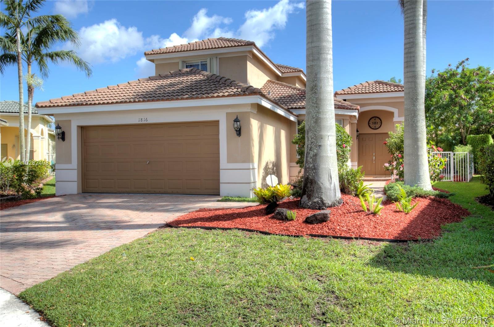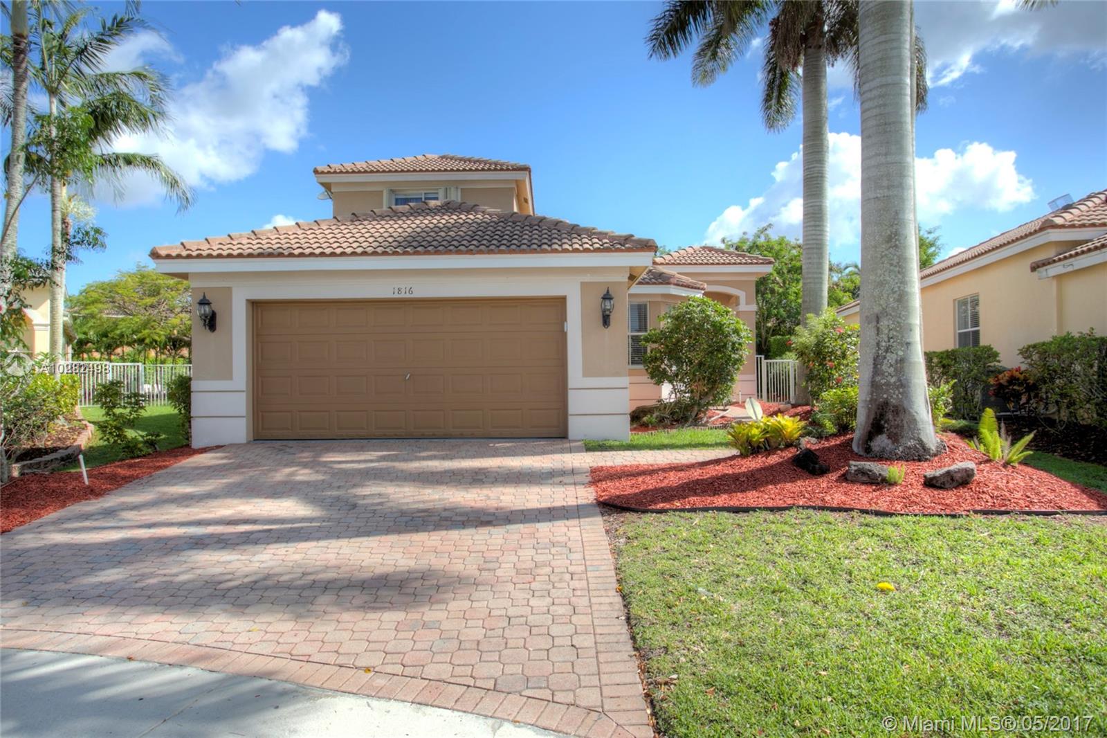 Located on a premium cul-de-sac lot, this light and airy arbor series model features an exceptional open floor plan with 2 master ensuites. 3 bedrm 2 full baths on the 1st floor, 1 oversized private master bedroom on the 2nd floor. Access the extended brick paved screened in patio through the French doors to enjoy a quiet breakfast or a glass of wine. This completely fenced yard is great for children and pets. Hurricane shutters on the 2nd floor and hurricane panels on the 1st floor. Great privacy hedges and shrubbery. 24h guard gated community. Resort style amenities include heated community pool, water slide, clubhouse, on-site management office, hockey/soccer fields, putting range & playground entertain all ages year round. Zoned for Gator Run Elem, Falcon Cove Middle, Cypress Bay High.