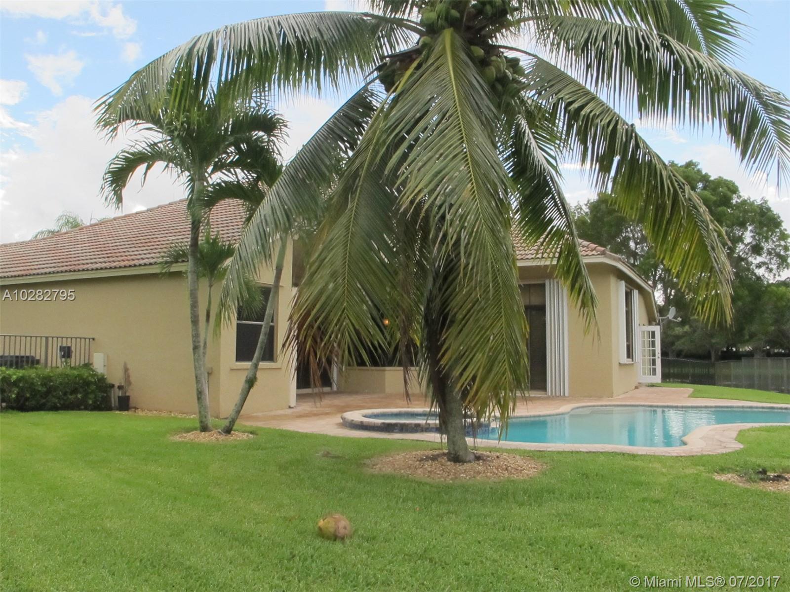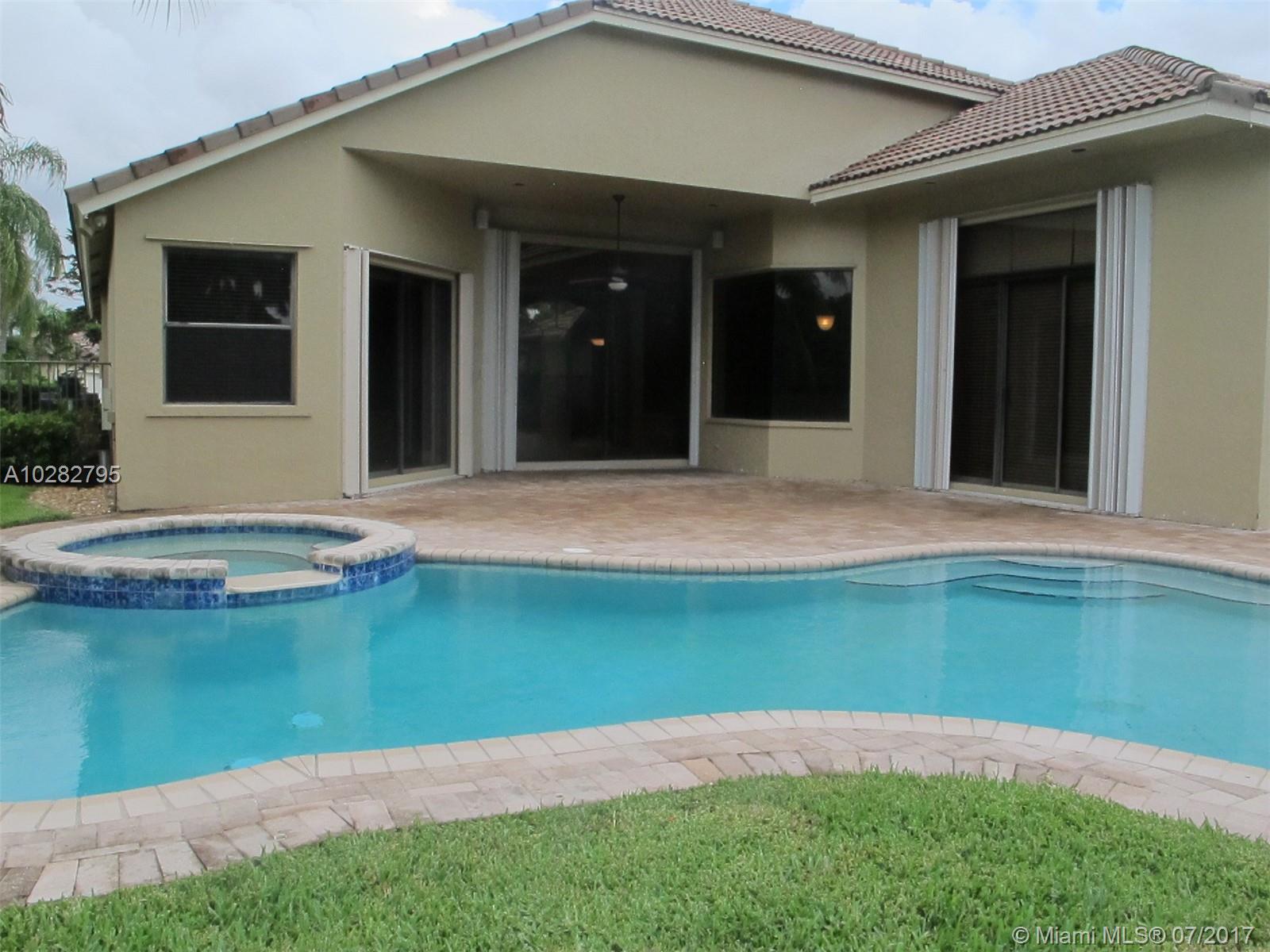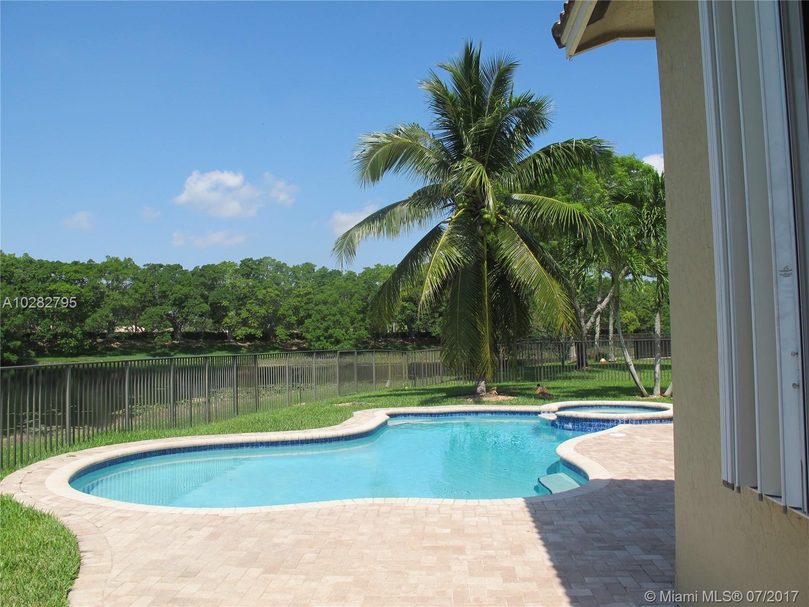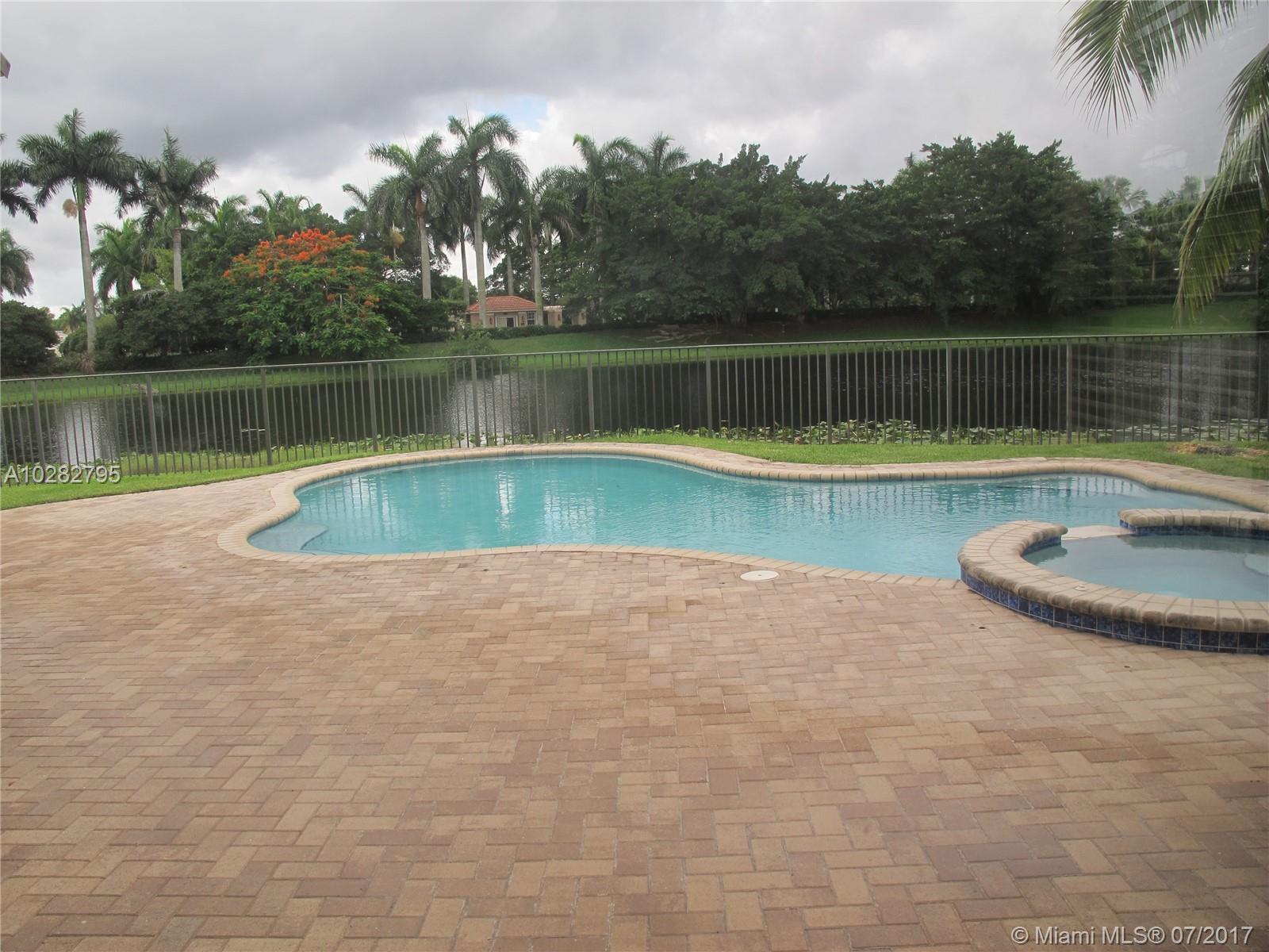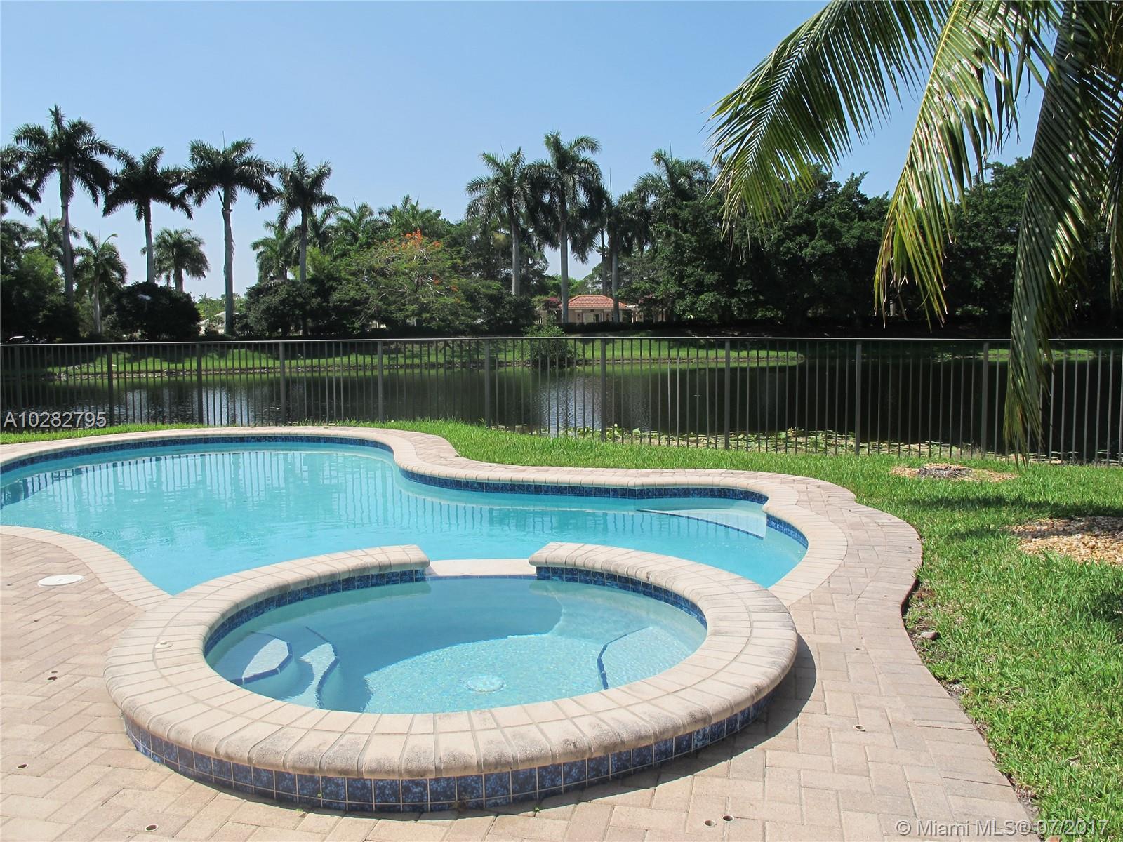 5/3 one-story lakefront home on cul-de-sac with 15' volume ceilings & crown molding throughout. Jacuzzi tub & stand-up shower in master bath. 5th bedroom can be used as an office/den. Walk-in closets, Kitchen has granite countertops with breakfast bar, stainless steel appliances, 32" cabinets, cooktop and self-cleaning wall oven. Backyard is fenced with pool, brick pavers, and overlooks the lake. Tropical landscaping. Close to A+ schools and shopping center including Publix & CVS. A MUST SEE! Also listed for Rent. Owner is very motivated to sell.