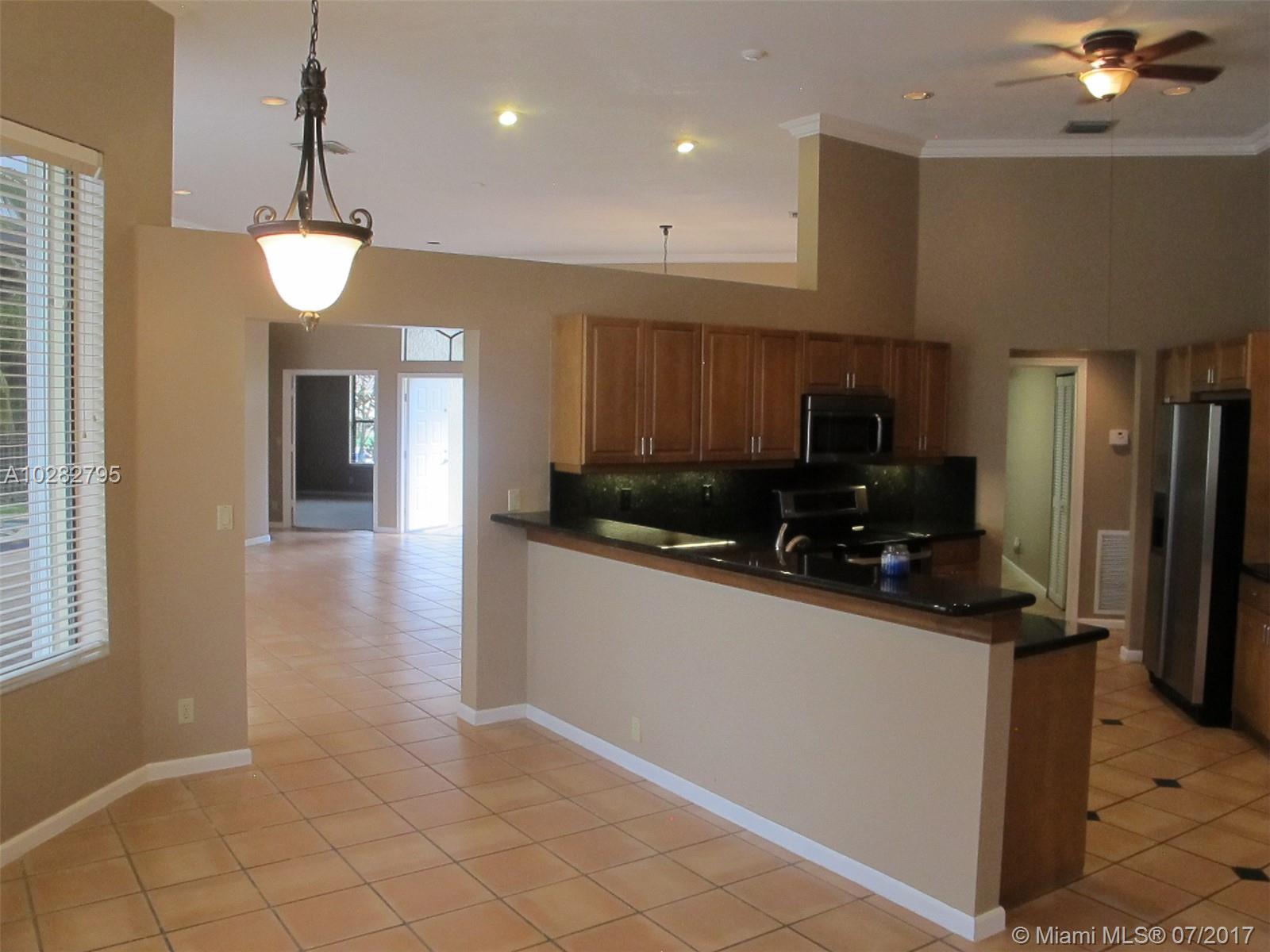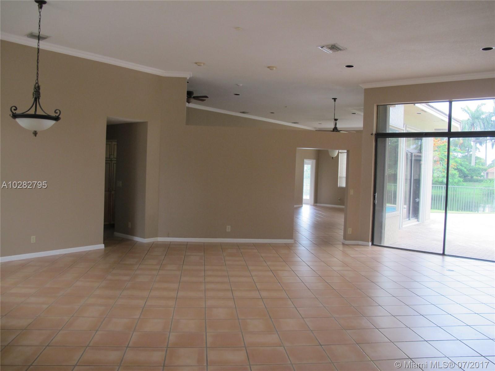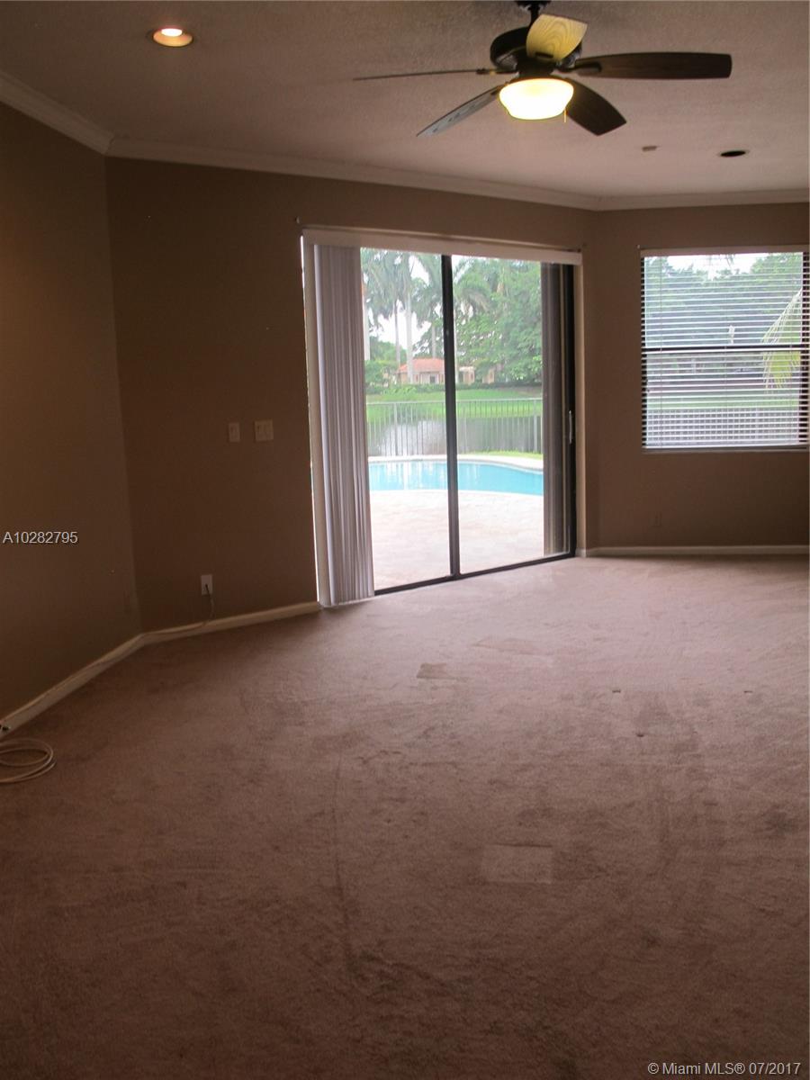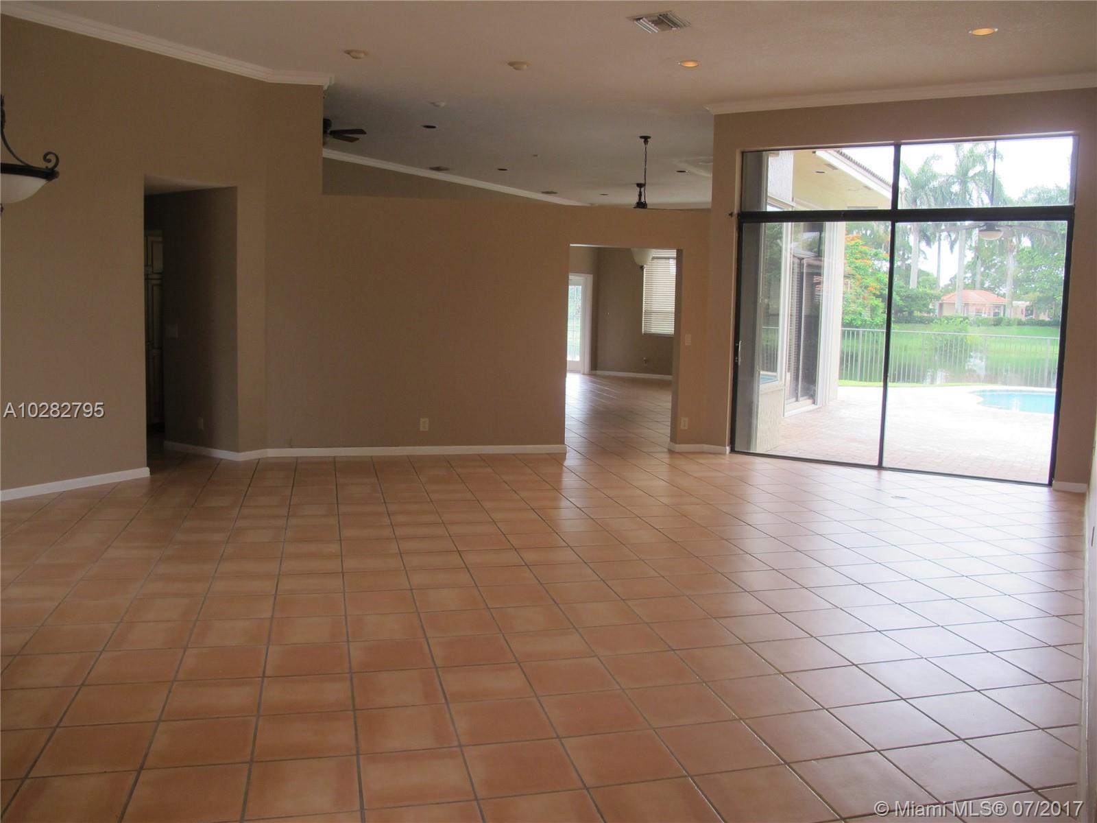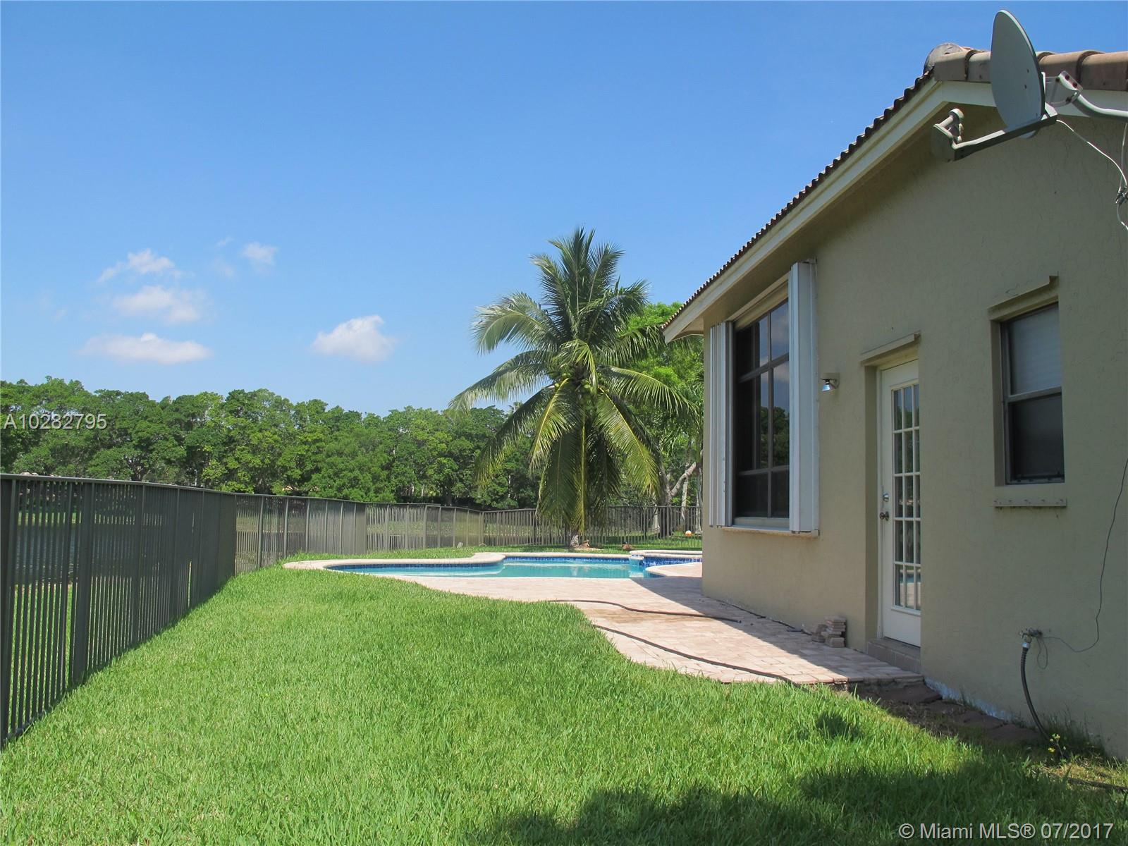 5/3 one-story lakefront home on cul-de-sac with 15' volume ceilings & crown molding throughout. Jacuzzi tub & stand-up shower in master bath. 5th bedroom can be used as an office/den. Walk-in closets, Kitchen has granite countertops with breakfast bar, stainless steel appliances, 32" cabinets, cooktop and self-cleaning wall oven. Backyard is fenced with pool, brick pavers, and overlooks the lake. Tropical landscaping. Close to A+ schools and shopping center including Publix & CVS. A MUST SEE! Also listed for Rent. Owner is very motivated to sell.