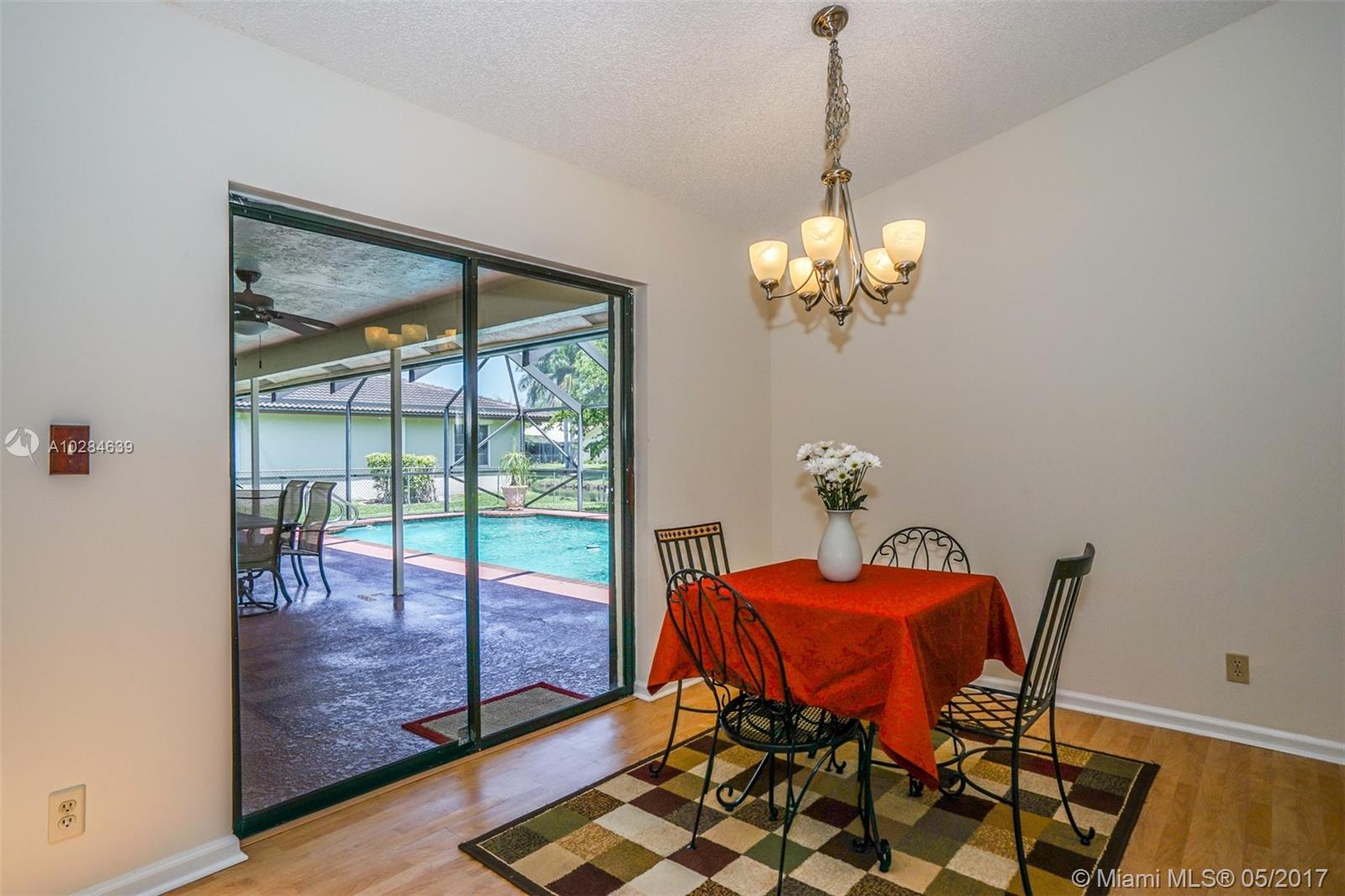 SPEND THE HOT SUMMER DAYS RELAXING IN THE COOL BLUE SPARKLING POOL WATERS INSIDE THE LARGE SCREEN IN PORCH WHICH OVERLOOKS A TRANQUIL WATERWAY. YOU WILL LOVE TO ENTERTAIN IN THE LARGE OPEN AND UPDATED KITCHEN WHICH ALLOWS FOR INDOOR/OUTDOOR LIVING. YOU WILL FALL IN LOVE WITH HOW LIGHT AND BRIGHT THE HOME IS. THE SPLIT FLOOR PLAN COUPLED WITH THIS HOME BEING LOCATED ON AN OVERSIZED CORNER LOT IN ONE OF THE BEST SCHOOL DISTRICTS IN CORAL SPRINGS MAKES THIS HOME IDEAL FOR A GROWING FAMILY. THE DRIVEWAY IS LARGE ENOUGH FOR AT LEAST SIX CARS. ROOF (2006), A/C (2007), ACCORDION SHUTTERS (2007), HOT WATER HEATER (2015). CLOSE TO FABULOUS RESTAURANTS, SHOPPING, AND MAJOR HIGHWAYS! MUST SEE!
